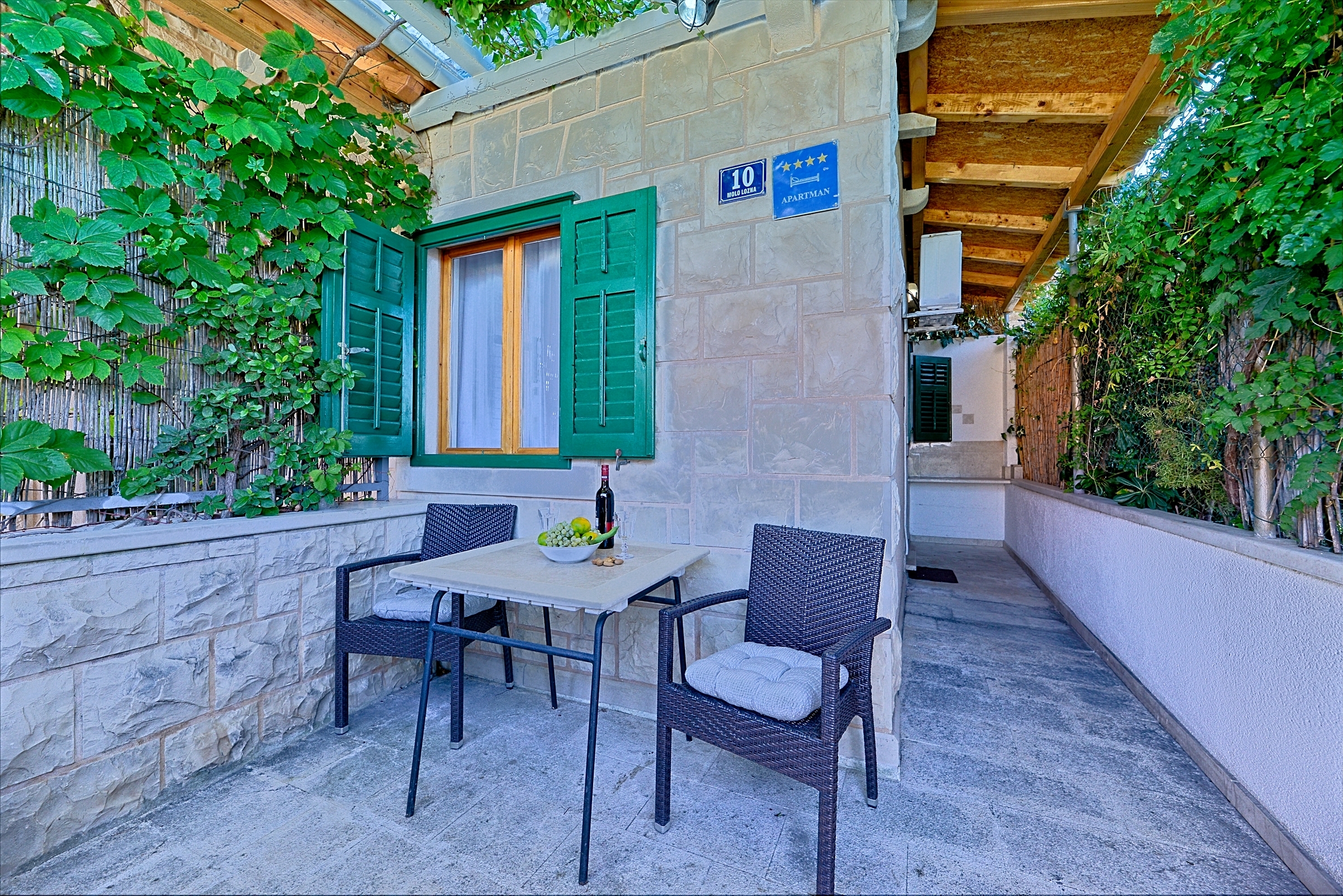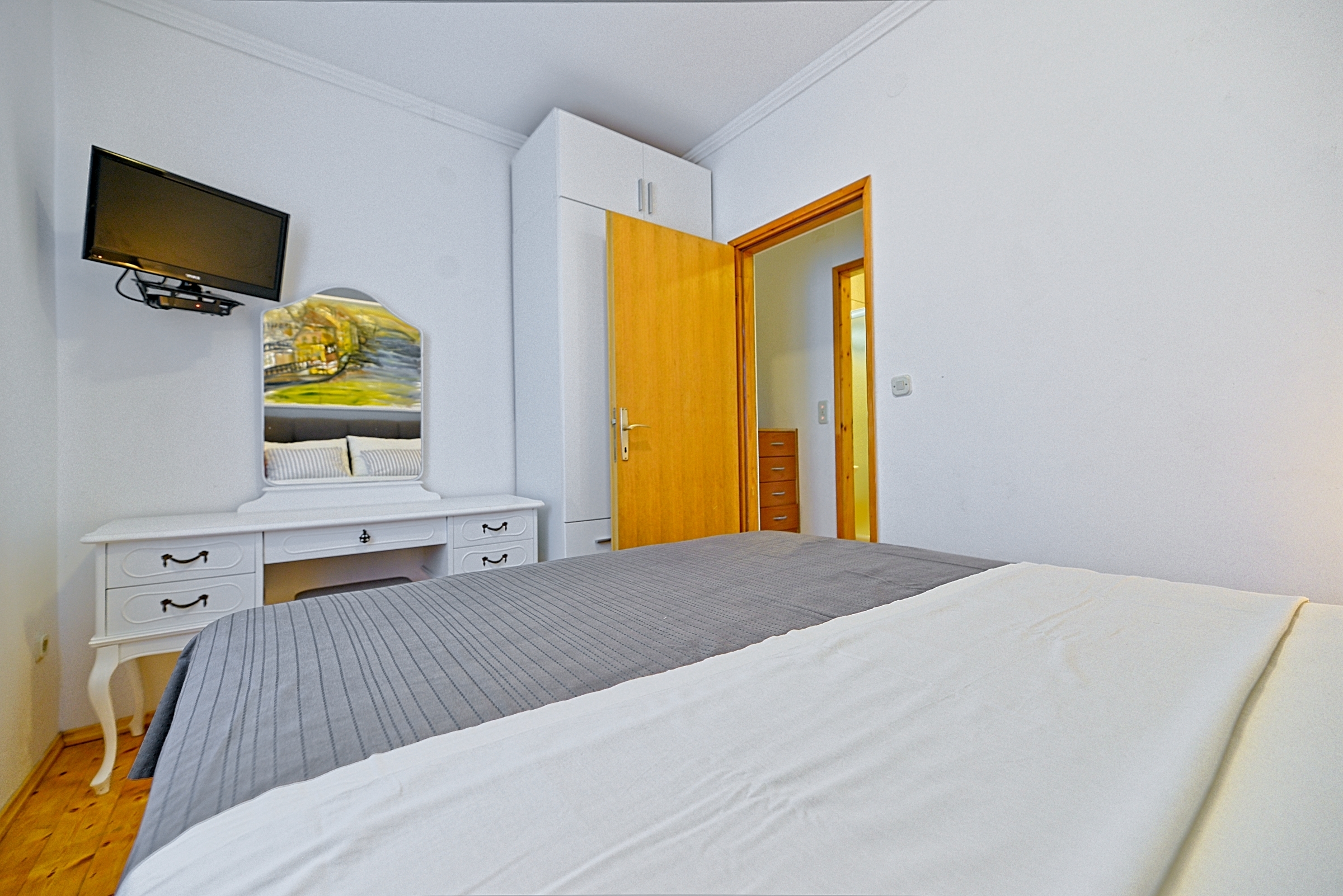 Apartment can accommodate 2 guests. Beds are situated in 1 sleeping rooms, within 17m2. Guests can use a private terrace to enjoy the warm summer evenings. The apartment offers the sea view. Food can be prepared using barbecue which is shared with other guests too. This accommodation unit welcomes pets at an additional charge. INCLUDED IN THE PRICE: tourist tax, final cleaning, air-conditioning, parking, internet, baby cot, iron, ironing board, hairdryer, portable barbecue. OBLIGATORY ADDITIONAL COSTS: short stay fee (surcharge depending on a number of booked nights: 30% - 1, 20% - 2, 10% - 3). OPTIONAL ADDITIONAL COSTS: laundry (€5.00 washing), pets (€7.00 per night). The availability of additional services for your chosen dates of stay, as well as their prices (if none are listed) must be checked ahead of time. Any additional services not shown in the price calculation are payable directly to the property owner and only if used by the visitor. Discounts to the base price: free day 14=13 (for reservations of 14 or more days you get one free day for the stay until 31122026).