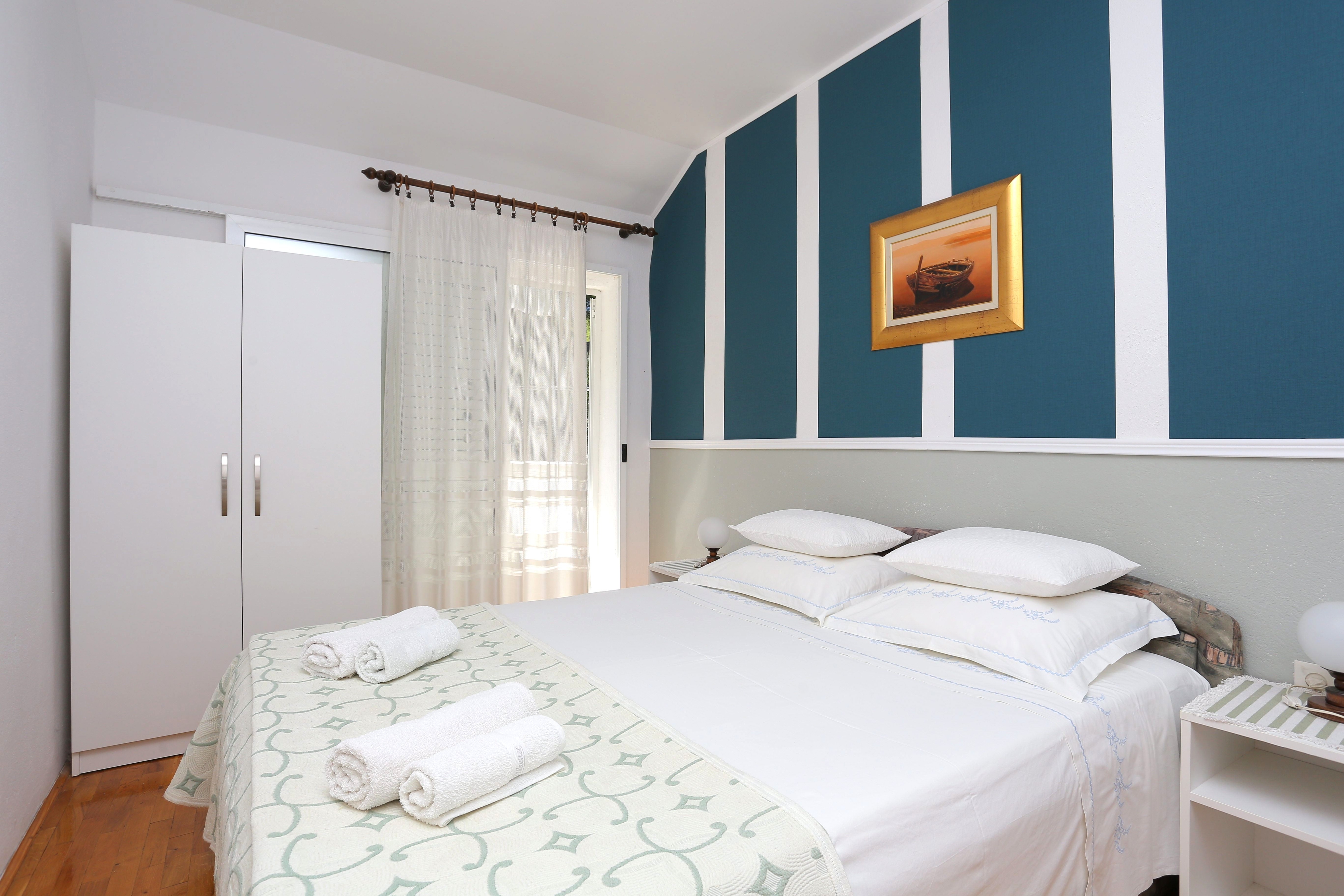 House 7274 in the town of Slatine, Čiovo - Central Dalmatia contains accommodation units of type Apartment (2) and is 20 m away from the sea. The nearest beach to this accommodation is a concrete slabs beach. The house is categorized as "Facilities near a beach". As the house is dividedseveral accommodation units, other guests will most likely be present during your stay. The hosts will be in the house during your holiday. The house owner is under no obligation to accept additional persons and pets that were not stated in the reservation request and it is necessary to report them in advance.AMENITIES Courtyard (150m2, Sitting area), Parking lot (Number of parking spaces: 2, Distance from the house: In the courtyard), Barbecue: shared, WiFi Internet, Hairdryer, Iron, Sunshade LOCATION AND ACCESS The property is located by the main road Main road between the property and the beach The property is located by the beach Number of stairs from the property to the beach: 16 Car access possible: Yes The facility is situated in relatively quiet surroundings The facility is partly surrounded by vegetation DISTANCES Sea: 20 m Beach: 20 m Center: 5.5 km Shop: 500 m Urgent medical care: 13 km Pharmacy: 1.1 km Exchange office: 1.6 km ATMBank machine: 550 m Tourist info: 1.6 km Airport: 9.5 km Gas station: 5.5 km Farmers market: 6.5 km