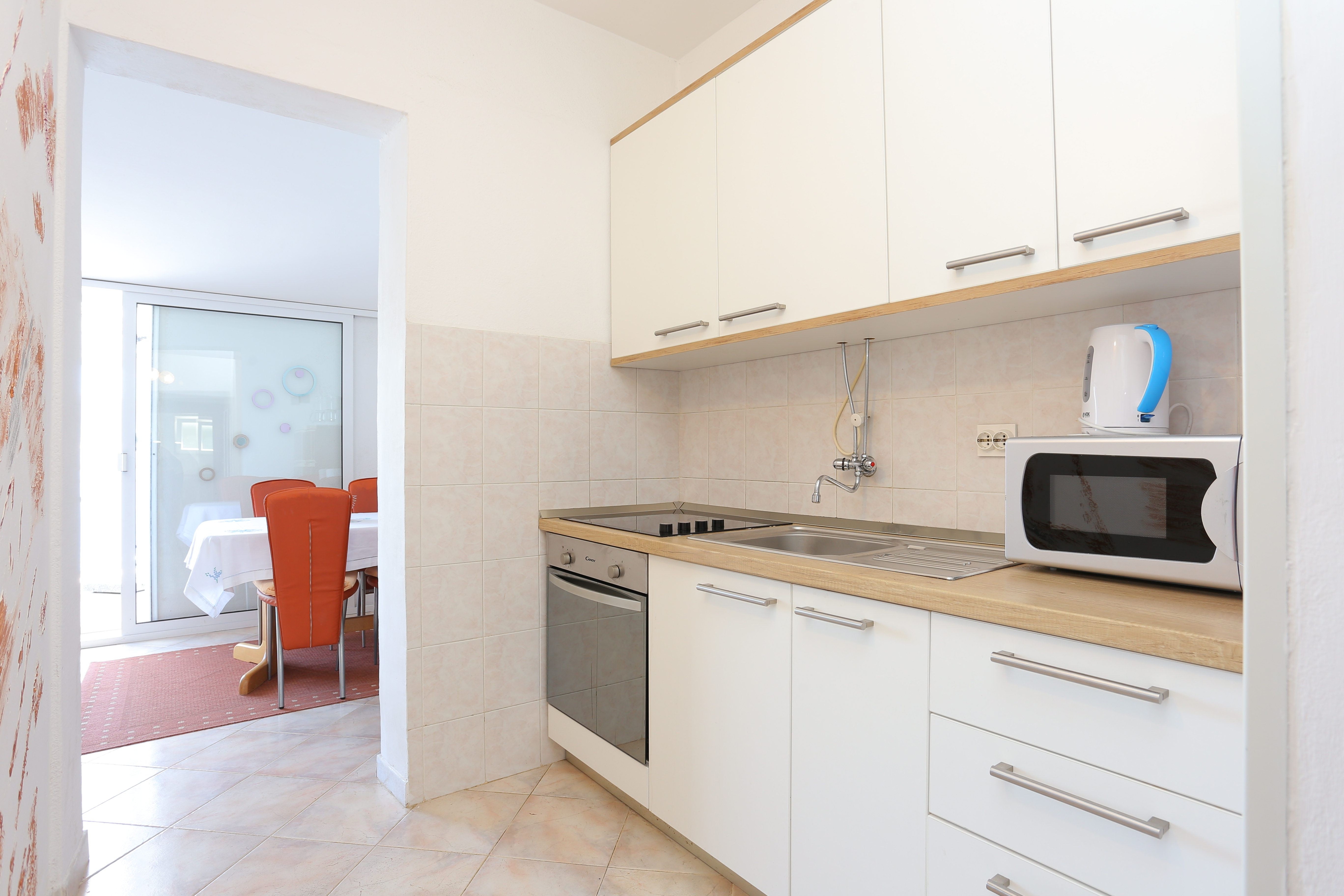 Apartment can accommodate 4 guests. Beds are situated in 2 sleeping rooms, within 44m2. Guests can use a private terrace to enjoy the warm summer evenings. The apartment offers the sea view. Food can be prepared using barbecue which is shared with other guests too. INCLUDED IN THE PRICE: tourist tax, final cleaning, air-conditioning, parking, internet, iron, hairdryer, sunshade. OBLIGATORY ADDITIONAL COSTS: short stay fee (surcharge depending on a number of booked nights: 30% - 1, 20% - 2, 10% - 3). The availability of additional services for your chosen dates of stay, as well as their prices (if none are listed) must be checked ahead of time. Any additional services not shown in the price calculation are payable directly to the property owner and only if used by the visitor. Discounts to the base price: free day 14=13 (for reservations of 14 or more days you get one free day for the stay until 31122026).