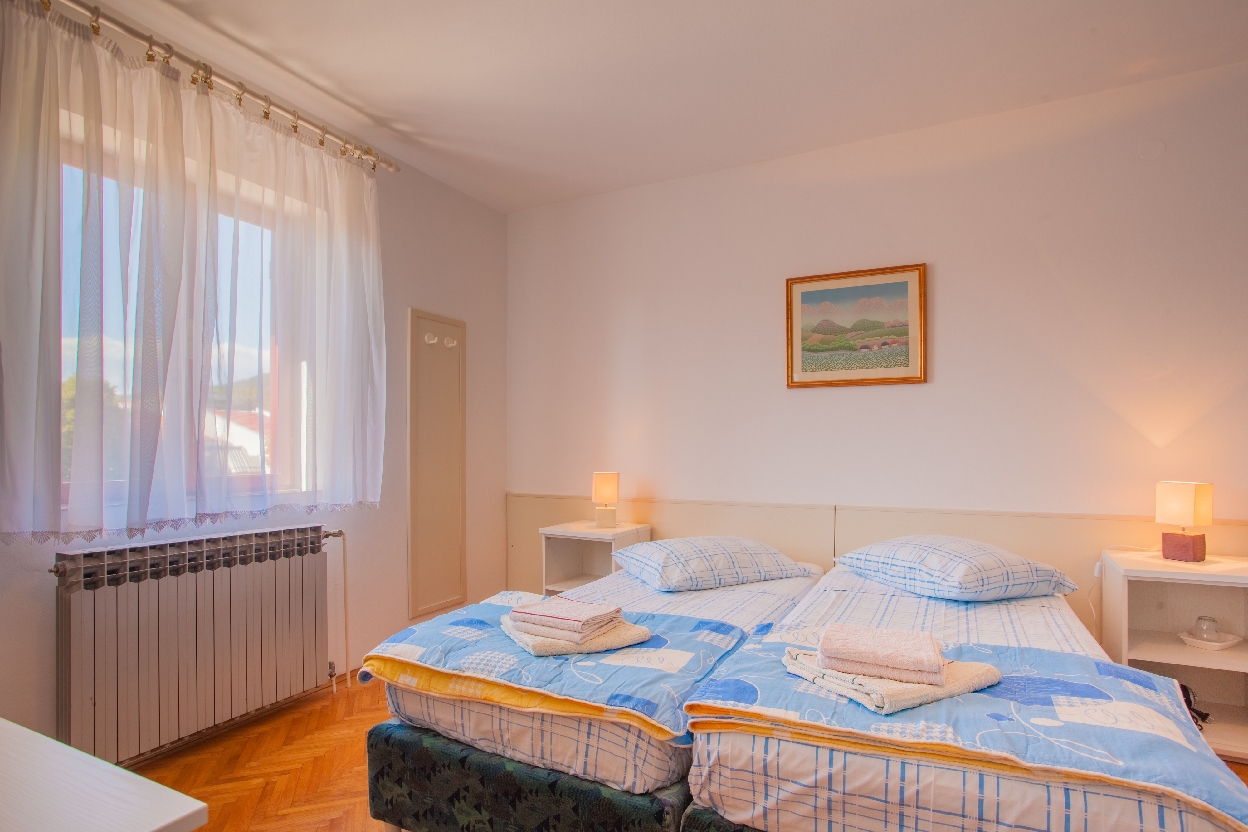 House 2512 in the town of Cres, Cres - Kvarner has accommodation units of type Room (3) and is 250 m away from the sea. The nearest beach to this accommodation is a pebble beach. Other guests may possibly be found in the house during your holiday, as it contains multiple apartments. Your hosts will not be staying in the house during your holiday. The house owner is under no obligation to accept additional persons and pets that were not stated in the reservation request and it is necessary to report them in advance.AMENITIES Courtyard (120m2, Area suitable for children, Sitting area), Parking lot (Number of parking spaces: 4, Distance from the house: In the courtyard), Barbecue: shared, WiFi Internet, Hairdryer, Iron, Ironing board LOCATION AND ACCESS Facility is situated near a local road Local road between the property and the beach Car access possible: Yes The facility is not located in quiet surroundings The property is surrounded by greenery DISTANCES Sea: 250 m Beach: 750 m Center: 250 m Shop: 100 m Urgent medical care: 250 m