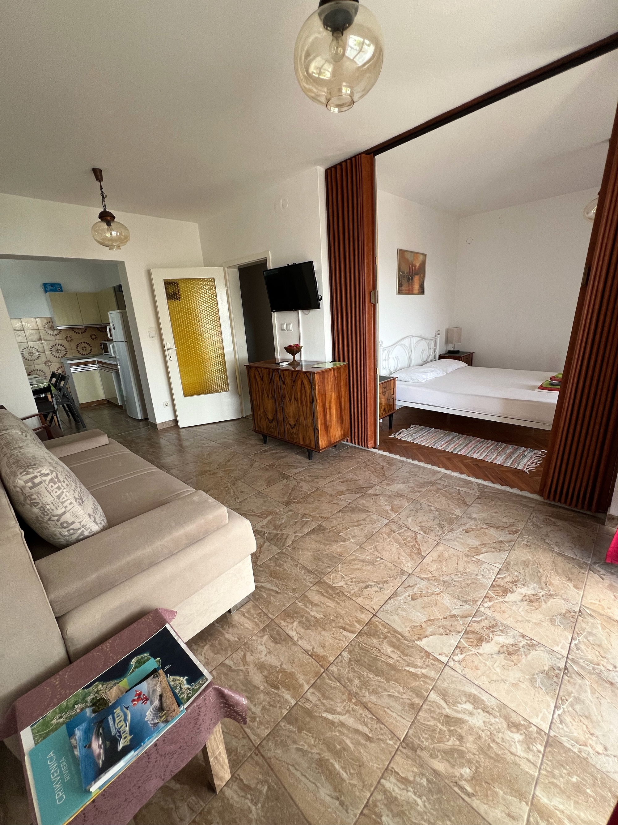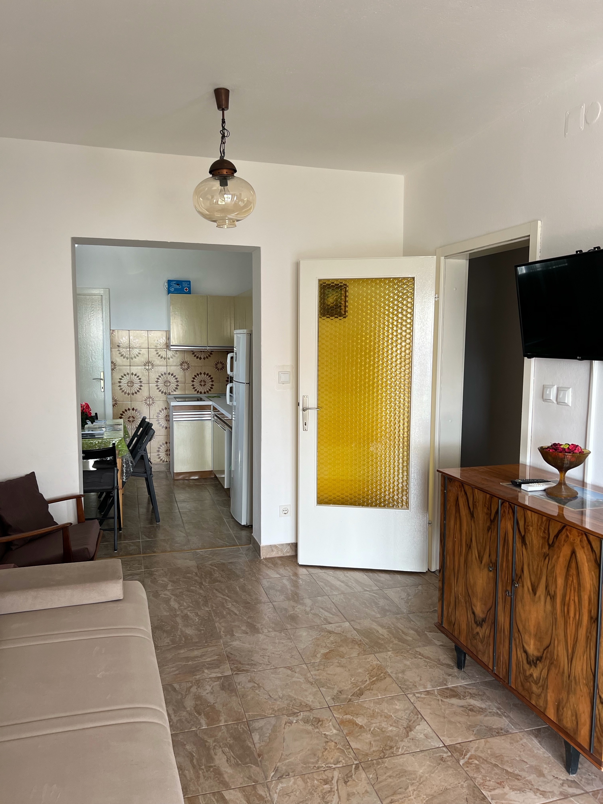 Apartment can accommodate 4 guests. Beds are situated in 1 sleeping rooms, but also in the living room, within 41m2. Guests can use a private terrace to enjoy the warm summer evenings. The apartment offers the sea view. INCLUDED IN THE PRICE: tourist tax, final cleaning, air-conditioning, parking, internet, hairdryer. OPTIONAL ADDITIONAL COSTS: laundry (€5.00 washing). The availability of additional services for your chosen dates of stay, as well as their prices (if none are listed) must be checked ahead of time. Any additional services not shown in the price calculation are payable directly to the property owner and only if used by the visitor. Discounts to the base price: free day 14=13 (for reservations of 14 or more days you get one free day for the stay until 31122026).