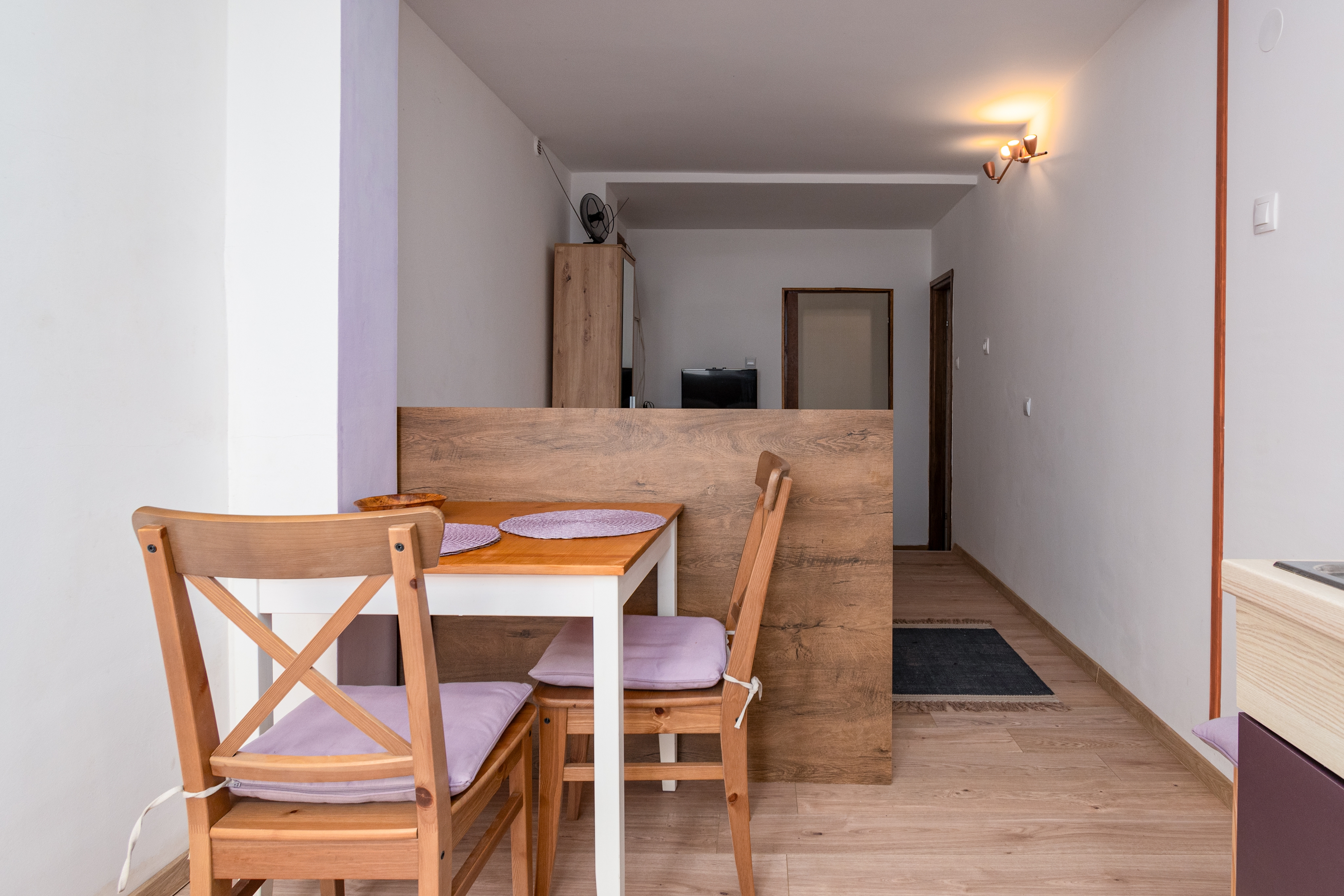Studio flat can accommodate 2 guests. Beds are situated in 1 sleeping rooms, within 18m2. Guests can use a private balcony to enjoy the warm summer evenings. Food can be prepared using barbecue which is shared with other guests too. INCLUDED IN THE PRICE: tourist tax, final cleaning, air-conditioning, parking, internet, iron, ironing board, hairdryer. OBLIGATORY ADDITIONAL COSTS: short stay fee (surcharge depending on a number of booked nights: 30% - 1, 20% - 2, 10% - 3). The availability of additional services for your chosen dates of stay, as well as their prices (if none are listed) must be checked ahead of time. Any additional services not shown in the price calculation are payable directly to the property owner and only if used by the visitor.