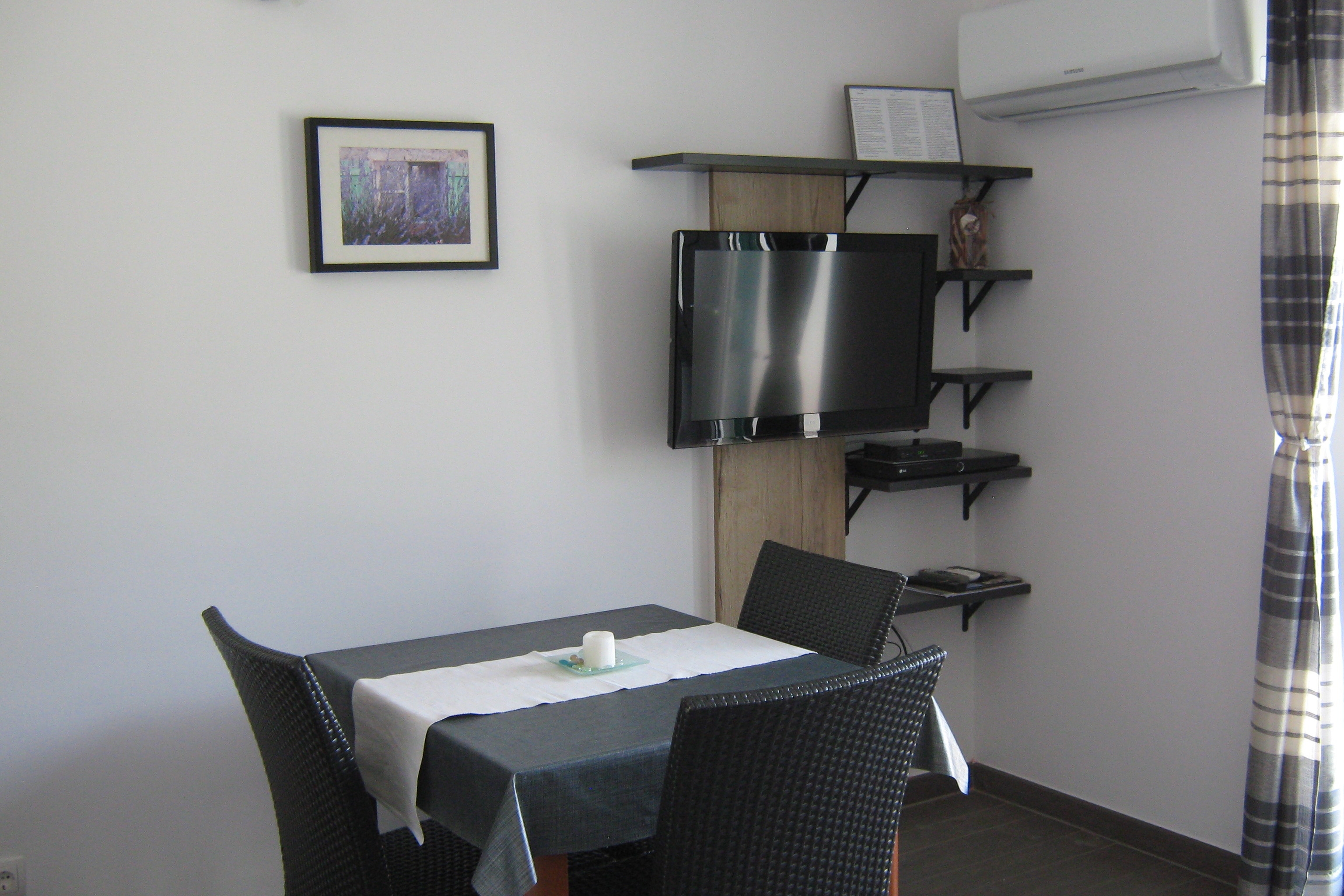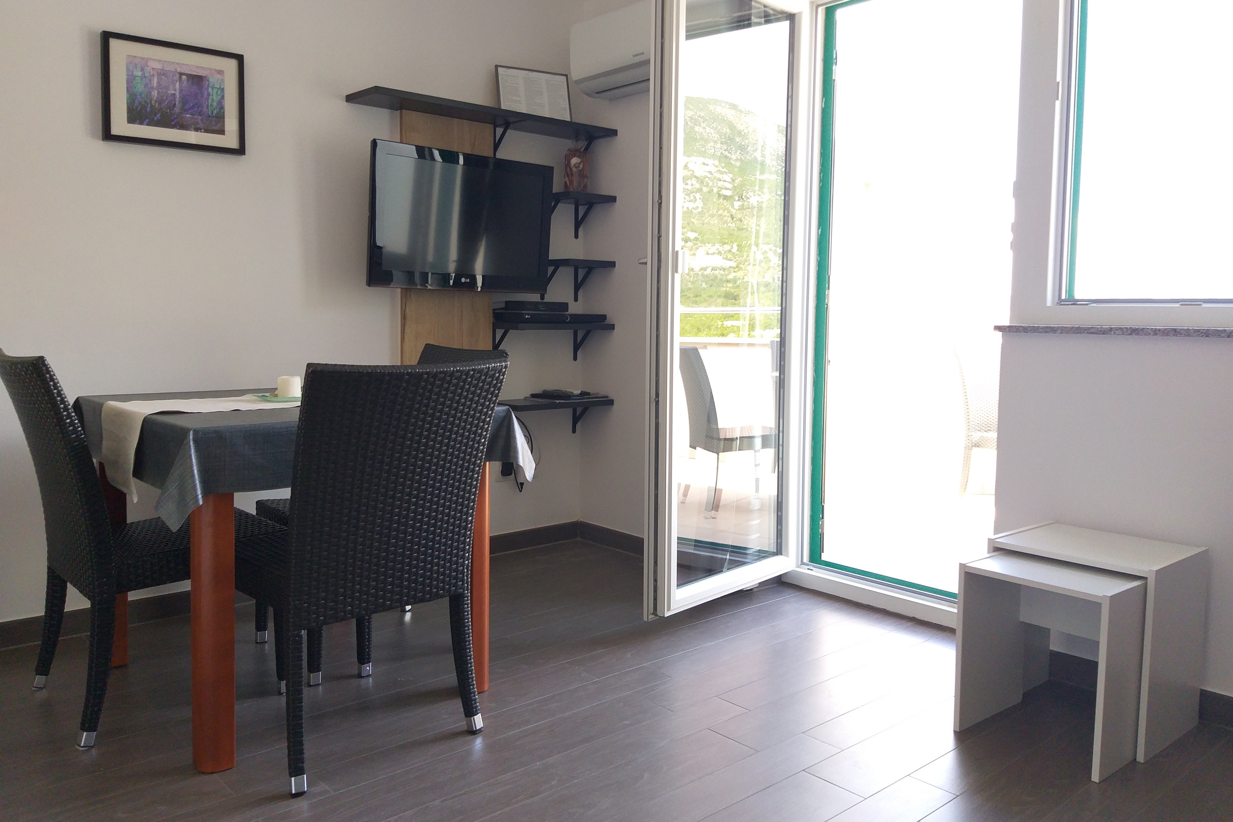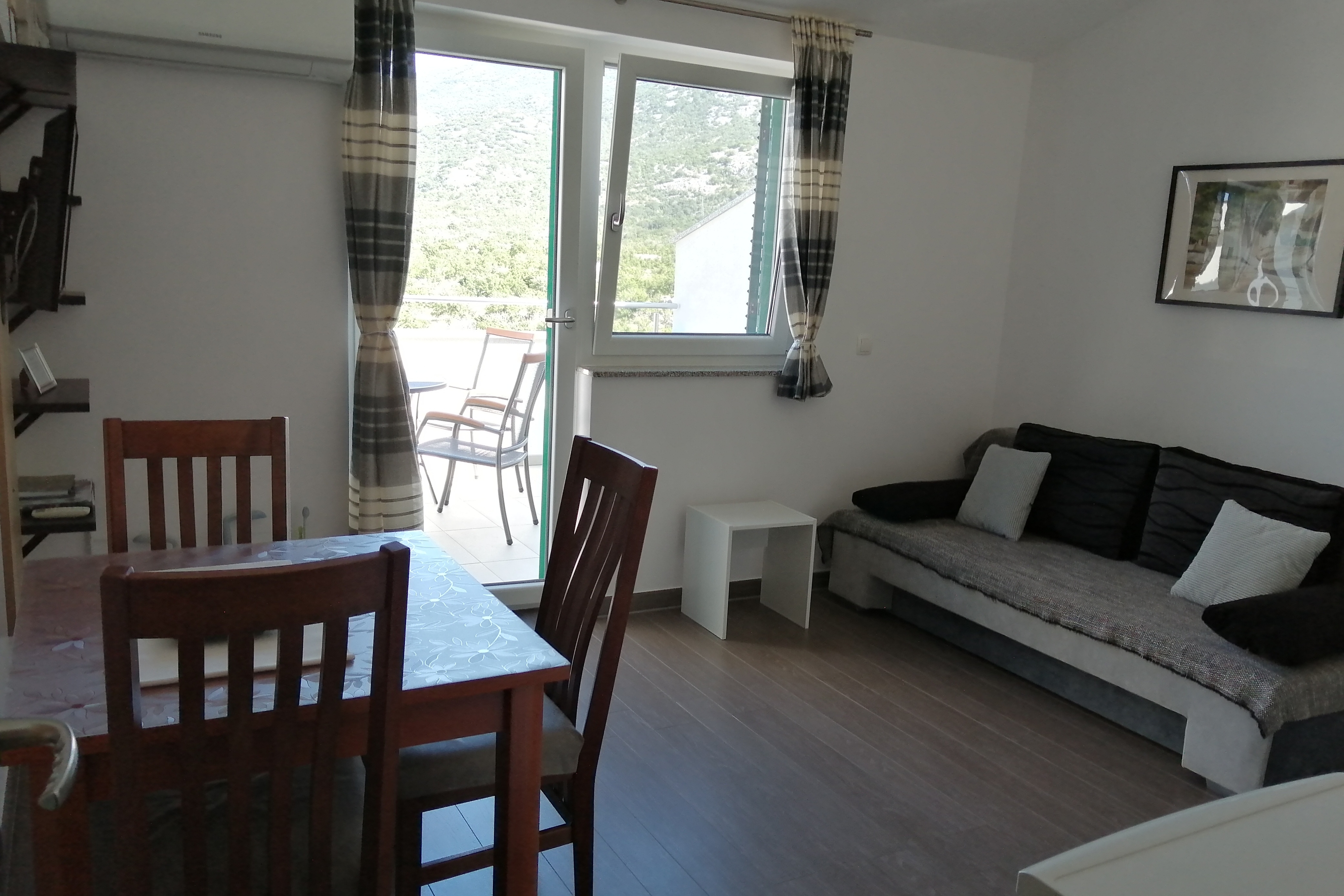 Apartment can accommodate 3 guests. Beds are situated in 1 sleeping rooms, but also in the living room, within 41m2. Guests can use a private balcony to enjoy the warm summer evenings. The apartment offers the sea view. Food can be prepared using barbecue which is shared with other guests too. INCLUDED IN THE PRICE: tourist tax, final cleaning, air-conditioning, parking, internet, iron, ironing board, hairdryer. OBLIGATORY ADDITIONAL COSTS: short stay fee (surcharge depending on a number of booked nights: 30% - 1, 20% - 2, 10% - 3). The availability of additional services for your chosen dates of stay, as well as their prices (if none are listed) must be checked ahead of time. Any additional services not shown in the price calculation are payable directly to the property owner and only if used by the visitor.