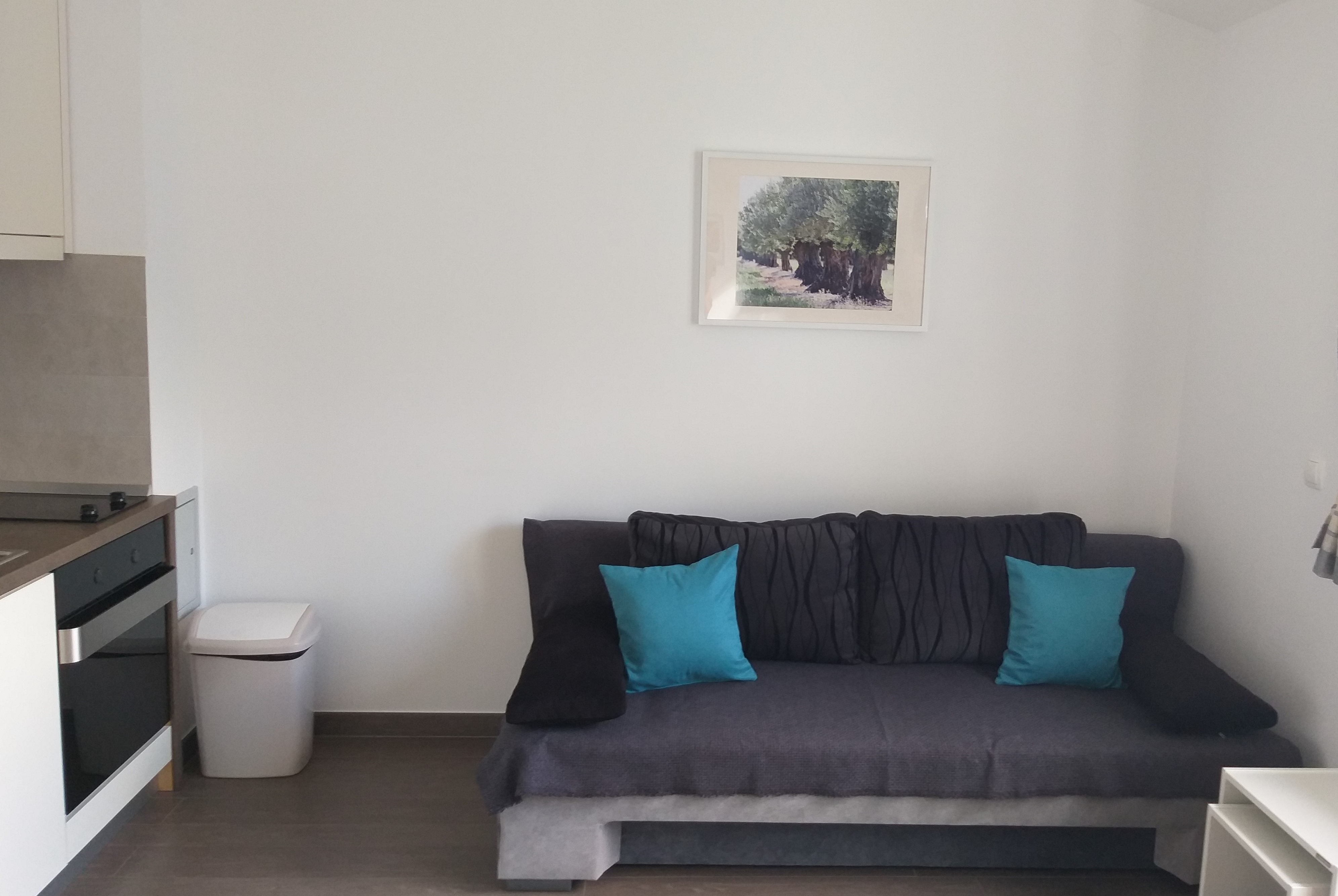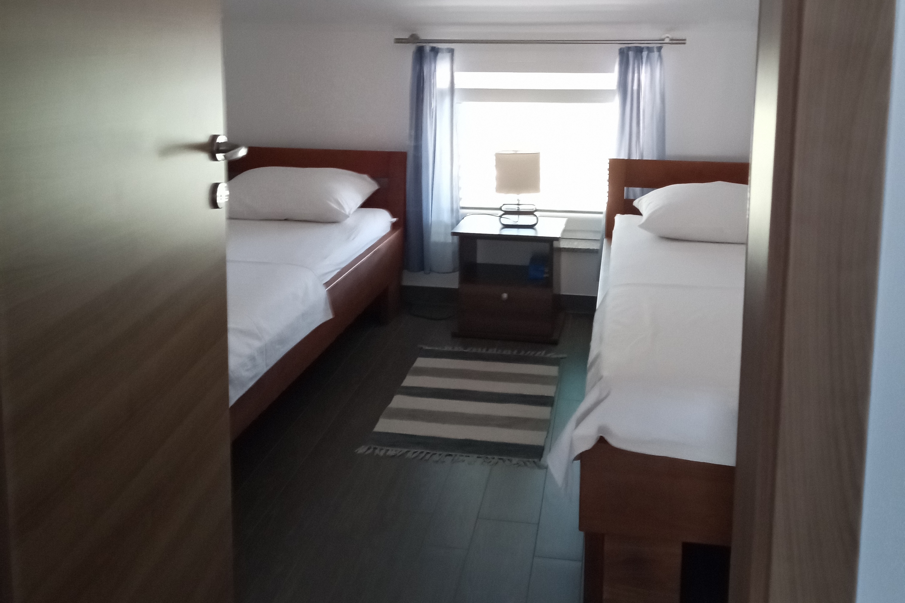 Apartment can accommodate 4 guests. Beds are situated in 2 sleeping rooms, within 54m2. Guests can use a private balcony to enjoy the warm summer evenings. The apartment offers the sea view. Food can be prepared using barbecue which is shared with other guests too. INCLUDED IN THE PRICE: tourist tax, final cleaning, air-conditioning, parking, internet, iron, ironing board, hairdryer. OBLIGATORY ADDITIONAL COSTS: short stay fee (surcharge depending on a number of booked nights: 30% - 1, 20% - 2, 10% - 3). The availability of additional services for your chosen dates of stay, as well as their prices (if none are listed) must be checked ahead of time. Any additional services not shown in the price calculation are payable directly to the property owner and only if used by the visitor.