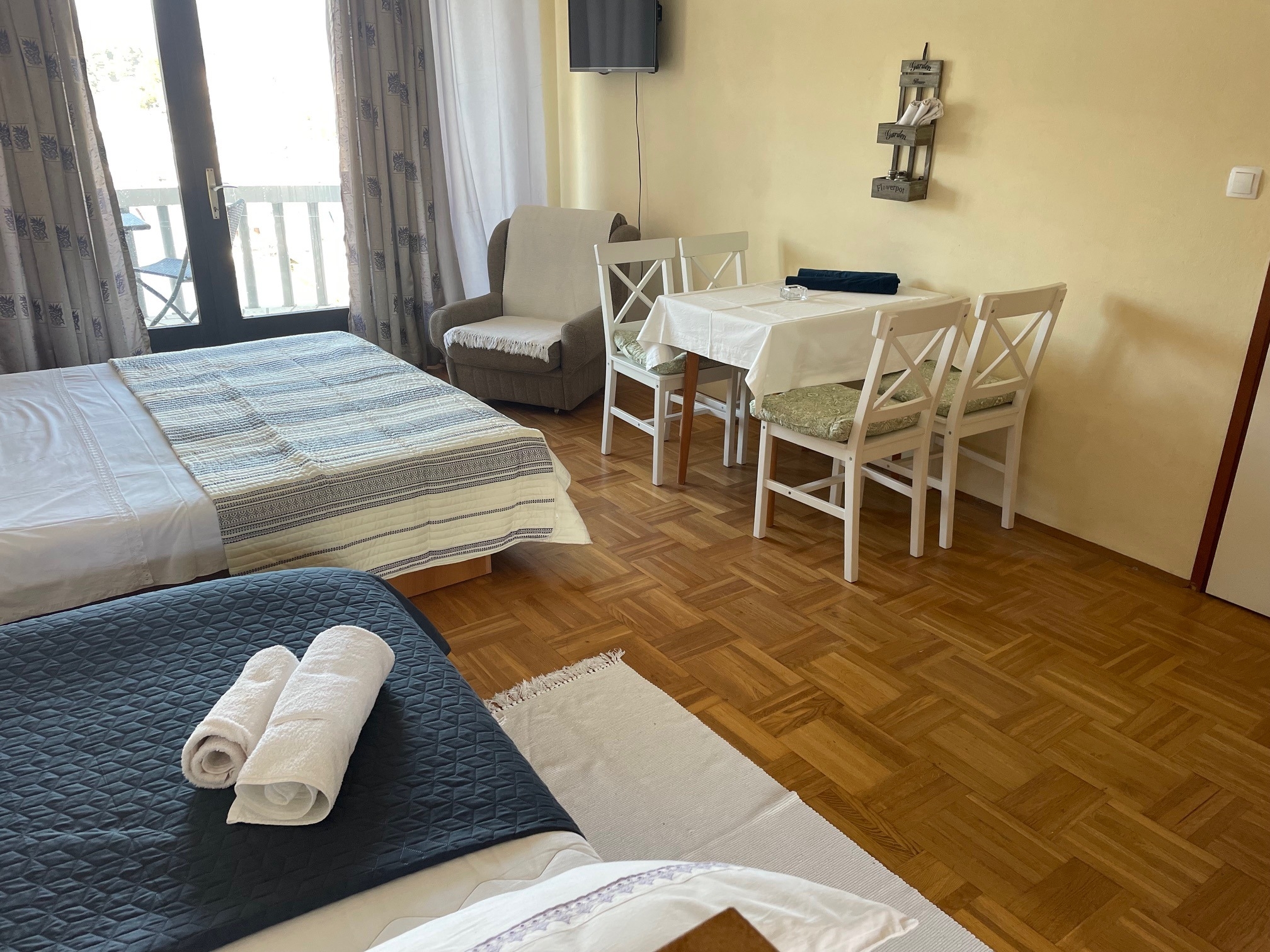 Studio flat can accommodate 2 guests. Beds are situated in 1 sleeping rooms, within 32m2. Guests can use a private terrace to enjoy the warm summer evenings. The studio offers the sea view. Food can be prepared using barbecue which is shared with other guests too. INCLUDED IN THE PRICE: tourist tax, final cleaning, air-conditioning, parking, internet, baby cot, hairdryer. OPTIONAL ADDITIONAL COSTS: boat mooring (€15.00 per night). The availability of additional services for your chosen dates of stay, as well as their prices (if none are listed) must be checked ahead of time. Any additional services not shown in the price calculation are payable directly to the property owner and only if used by the visitor. Discounts to the base price: free day 14=13 (for reservations of 14 or more days you get one free day for the stay until 31122026).