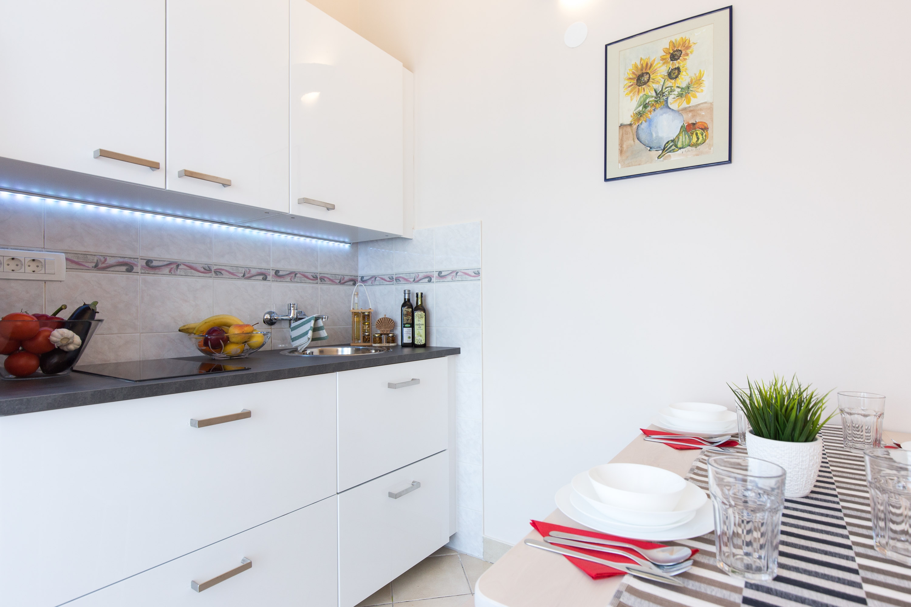 Apartment can accommodate 3 guests. Beds are situated in 1 sleeping rooms, but also in the living room, within 34m2. Guests can use a private balcony to enjoy the warm summer evenings. The apartment offers the sea view. Food can be prepared using barbecue which is shared with other guests too. This accommodation unit welcomes pets at an additional charge. INCLUDED IN THE PRICE: tourist tax, final cleaning, air-conditioning, parking, internet. OBLIGATORY ADDITIONAL COSTS: short stay fee (surcharge depending on a number of booked nights: 30% - 1, 20% - 2, 10% - 3). OPTIONAL ADDITIONAL COSTS: pets (€5.00 per night). The availability of additional services for your chosen dates of stay, as well as their prices (if none are listed) must be checked ahead of time. Any additional services not shown in the price calculation are payable directly to the property owner and only if used by the visitor.