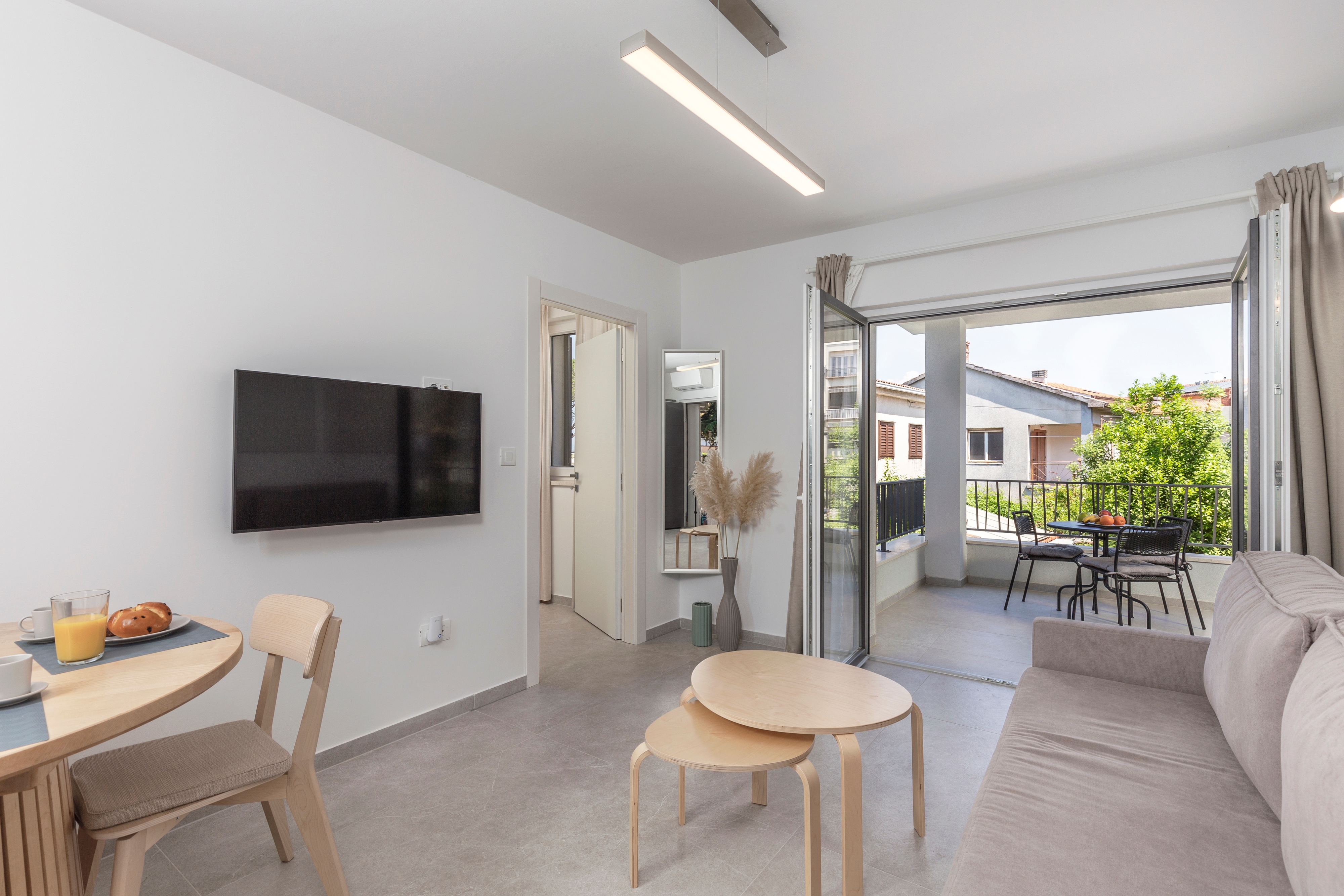 Apartment can accommodate 3 guests. Beds are situated in 1 sleeping rooms, but also in the living room, within 34m2. Guests can use a private terrace to enjoy the warm summer evenings. The apartment offers the sea view. This accommodation unit welcomes pets at an additional charge. INCLUDED IN THE PRICE: tourist tax, final cleaning, air-conditioning, parking, internet, baby cot, hairdryer. OBLIGATORY ADDITIONAL COSTS: short stay fee (surcharge depending on a number of booked nights: 30% - 1, 20% - 2, 10% - 3). OPTIONAL ADDITIONAL COSTS: pets (€15.00 per night), additional bed (€10.00 per night). The availability of additional services for your chosen dates of stay, as well as their prices (if none are listed) must be checked ahead of time. Any additional services not shown in the price calculation are payable directly to the property owner and only if used by the visitor.