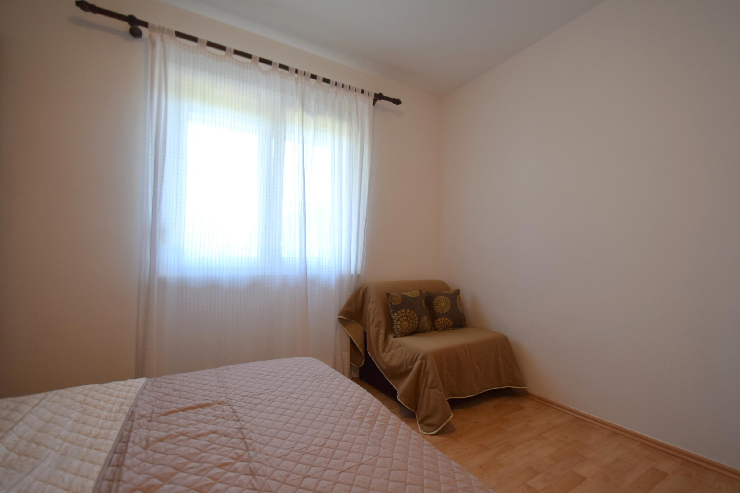 Apartment can accommodate 3 guests. Beds are situated in 1 sleeping rooms, but also in the living room, within 35m2. Guests can use a private terrace to enjoy the warm summer evenings. Food can be prepared using barbecue which is shared with other guests too. This accommodation unit welcomes pets at an additional charge. INCLUDED IN THE PRICE: tourist tax, final cleaning, air-conditioning, parking, internet. OBLIGATORY ADDITIONAL COSTS: short stay fee (surcharge depending on a number of booked nights: 30% - 1, 20% - 2, 10% - 3). OPTIONAL ADDITIONAL COSTS: pets (€10.00 per night). The availability of additional services for your chosen dates of stay, as well as their prices (if none are listed) must be checked ahead of time. Any additional services not shown in the price calculation are payable directly to the property owner and only if used by the visitor.