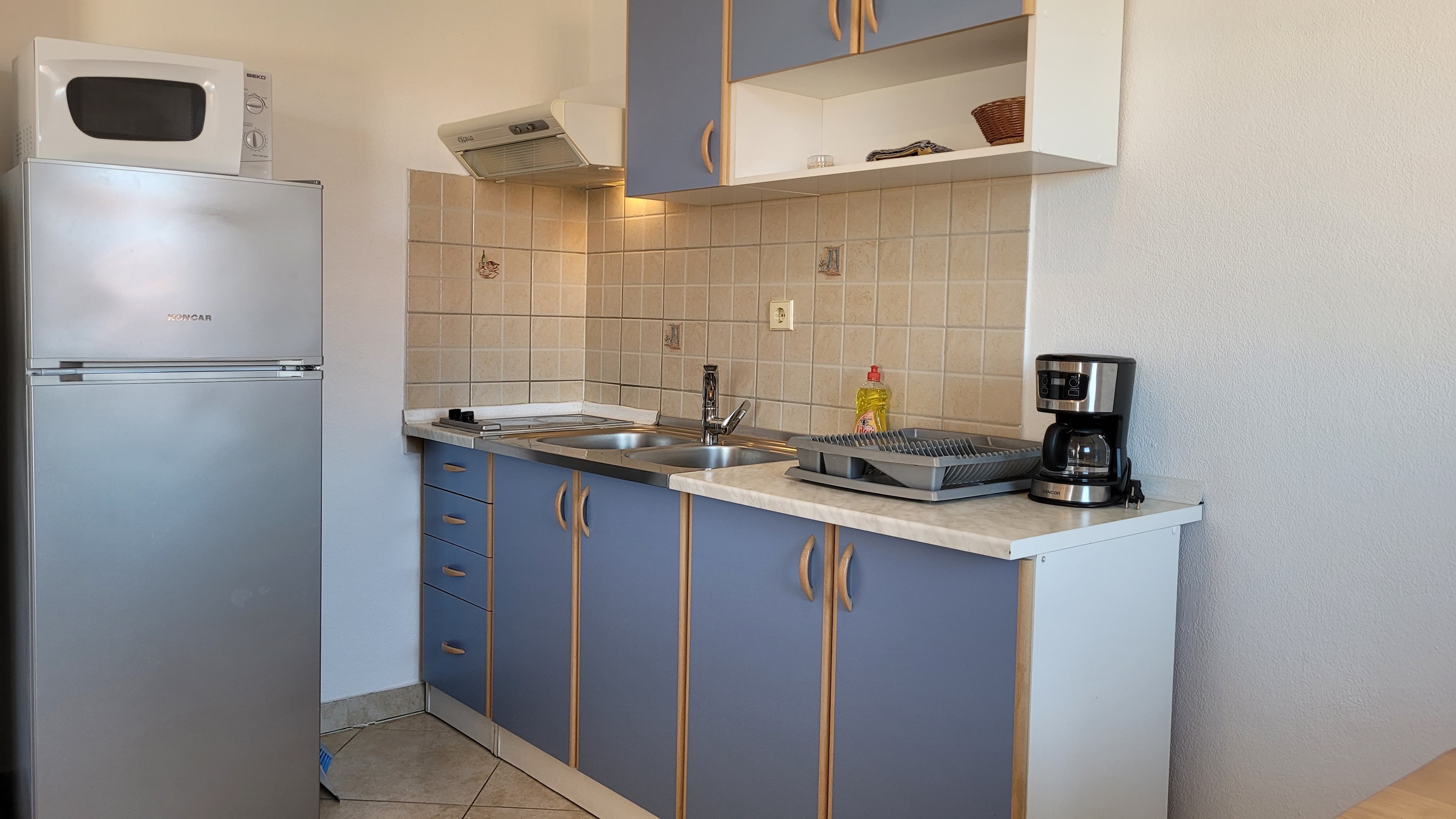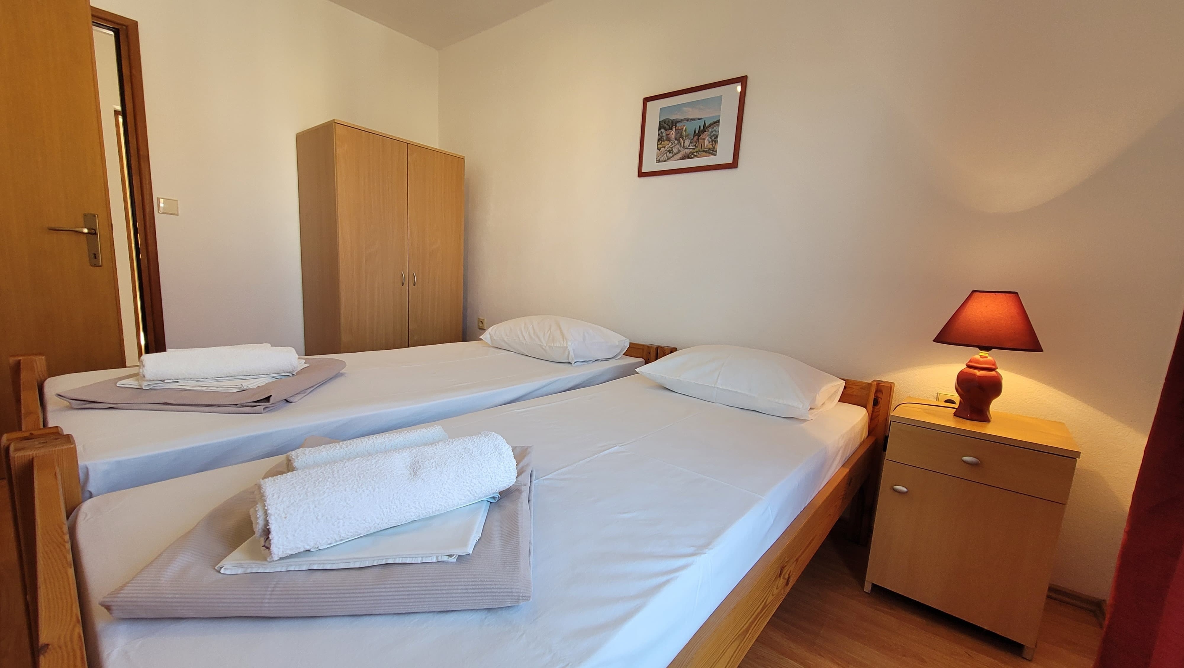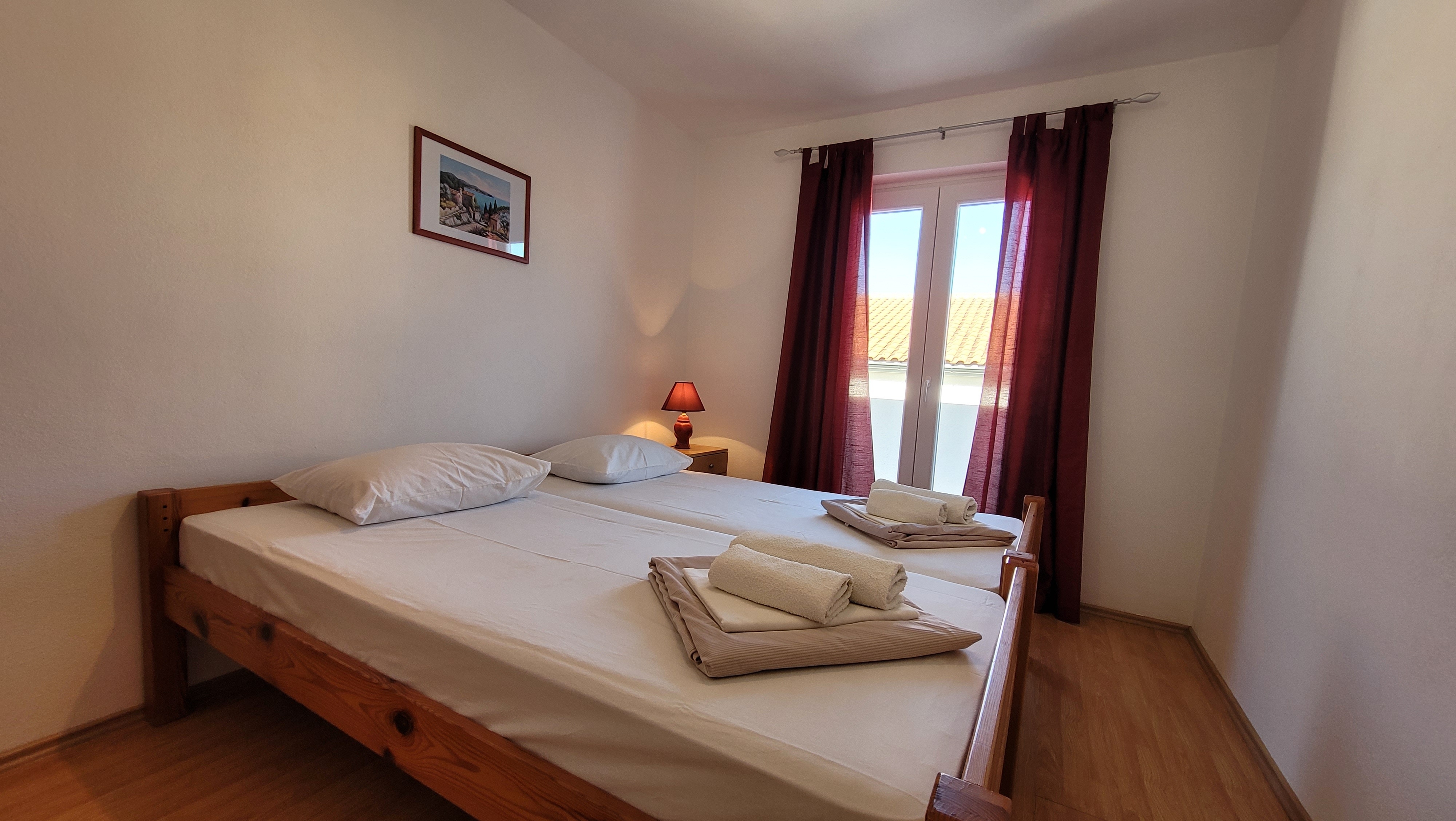 Apartment can accommodate 4 guests. Beds are situated in 2 sleeping rooms, within 56m2. Guests can use a private terrace to enjoy the warm summer evenings. The apartment offers the sea view. Food can be prepared using barbecue which is shared with other guests too. This accommodation unit welcomes pets at an additional charge. INCLUDED IN THE PRICE: tourist tax, final cleaning, air-conditioning, parking, internet. OBLIGATORY ADDITIONAL COSTS: short stay fee (surcharge depending on a number of booked nights: 30% - 1, 20% - 2, 10% - 3). OPTIONAL ADDITIONAL COSTS: pets (€10.00 per night). The availability of additional services for your chosen dates of stay, as well as their prices (if none are listed) must be checked ahead of time. Any additional services not shown in the price calculation are payable directly to the property owner and only if used by the visitor.