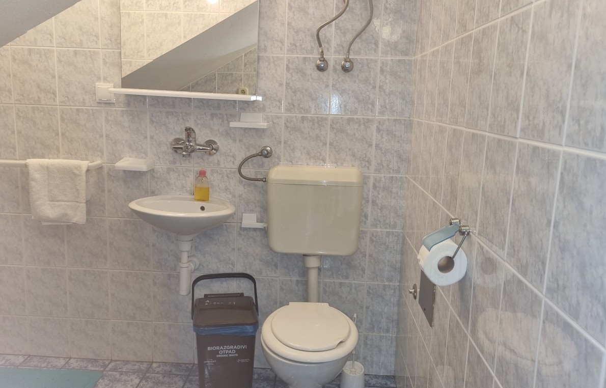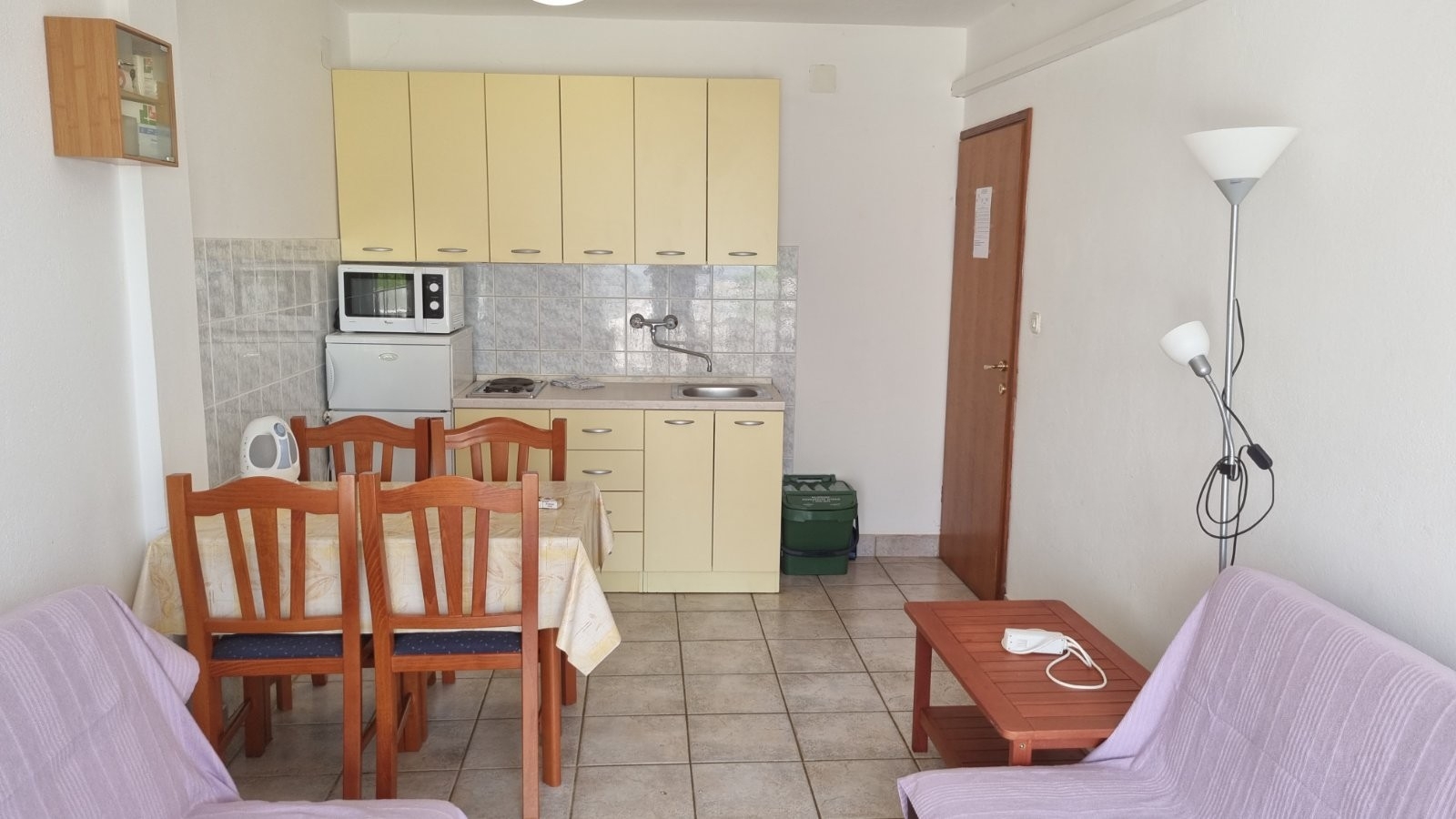Apartment can accommodate 4 guests. Beds are situated in 1 sleeping rooms, but also in the living room, within 30m2. Guests can use a private terrace to enjoy the warm summer evenings. The apartment offers the sea view. For the booked accommodation unit the deposit is paid directly to the owner upon check-in (deposit amount is displayed on the website) INCLUDED IN THE PRICE: tourist tax, final cleaning, parking, internet. OBLIGATORY ADDITIONAL COSTS: deposit (€50.00 one-time payment). OPTIONAL ADDITIONAL COSTS: air-conditioning (€6.00 per night). The availability of additional services for your chosen dates of stay, as well as their prices (if none are listed) must be checked ahead of time. Any additional services not shown in the price calculation are payable directly to the property owner and only if used by the visitor.