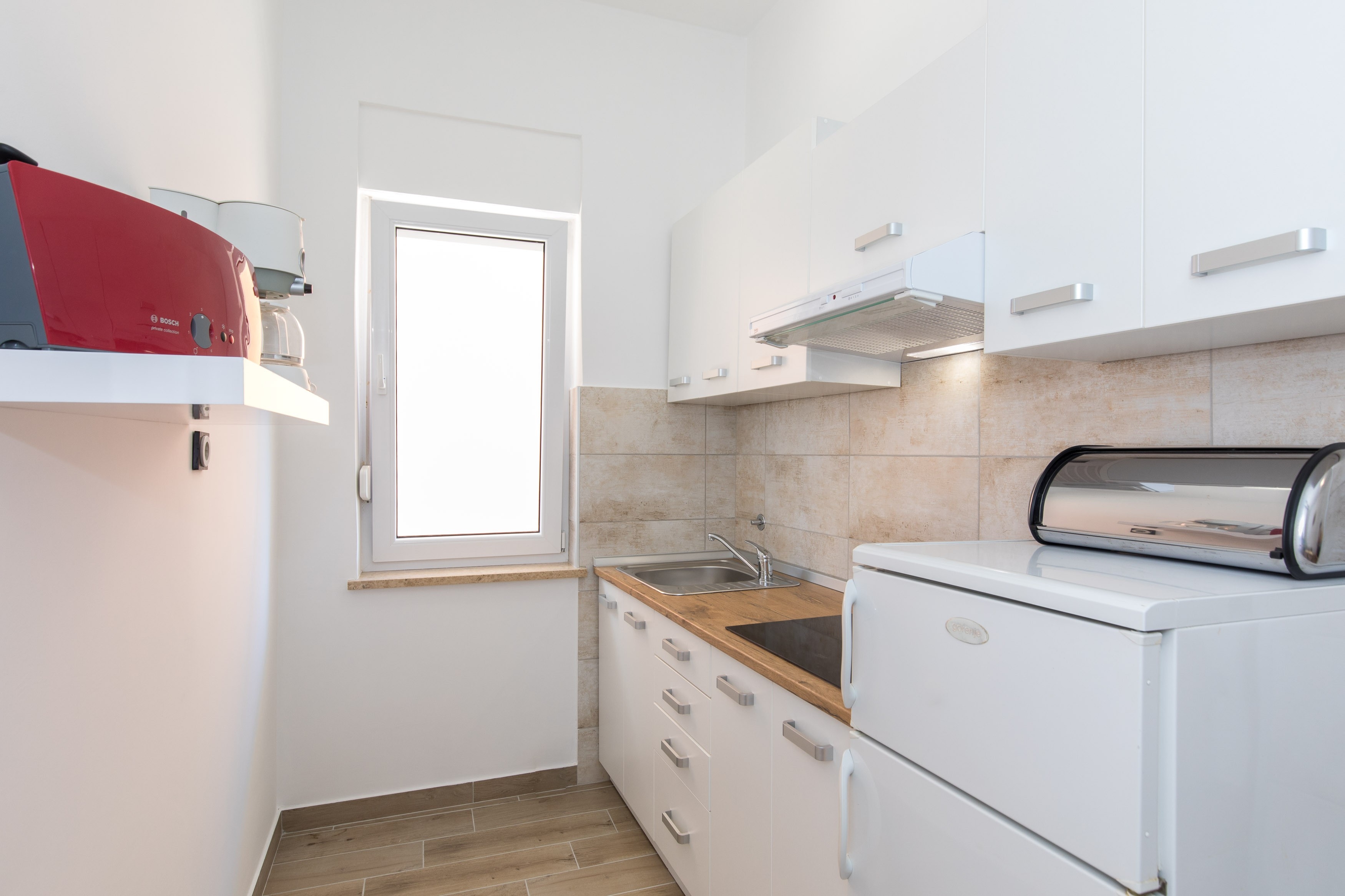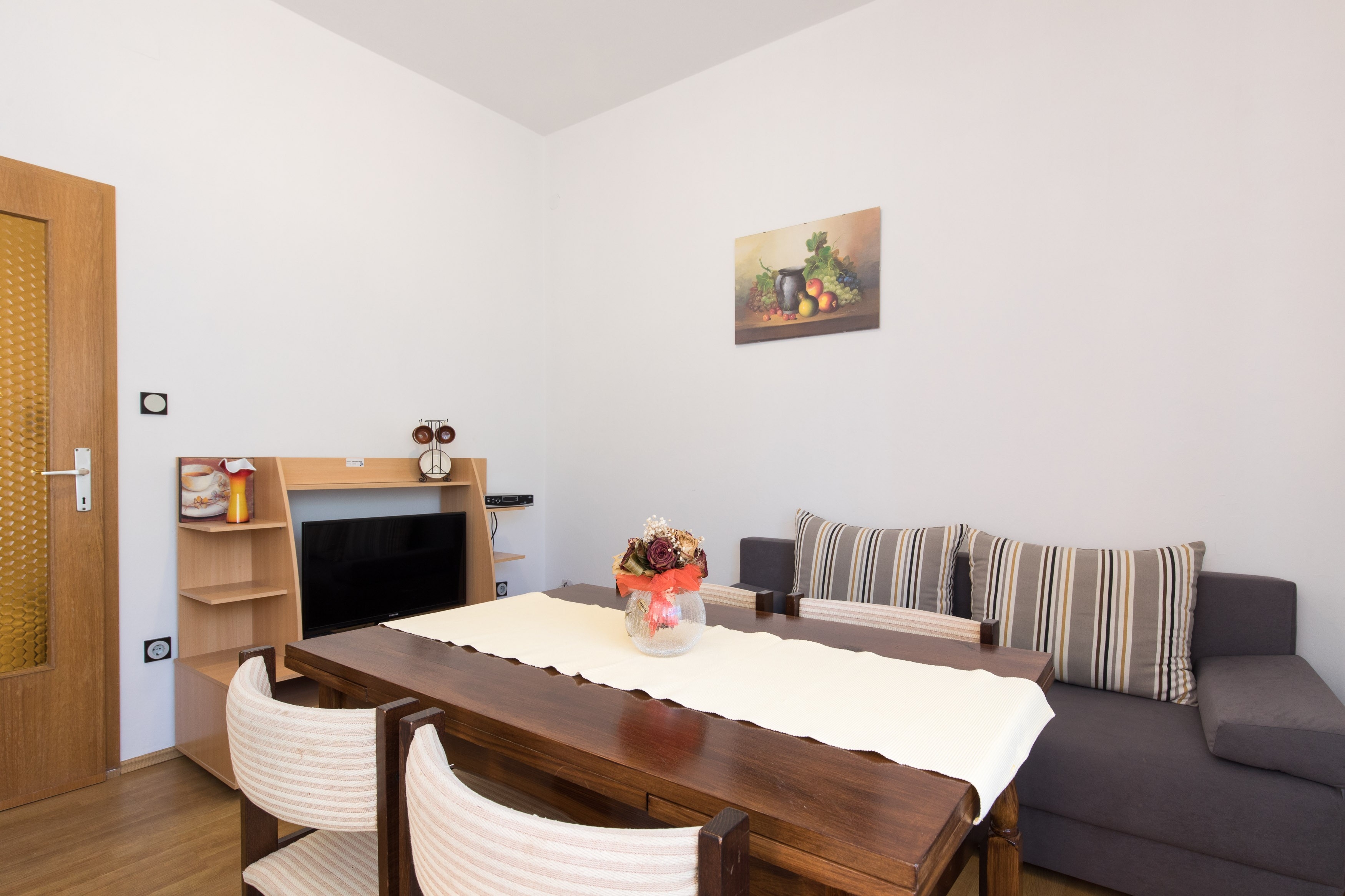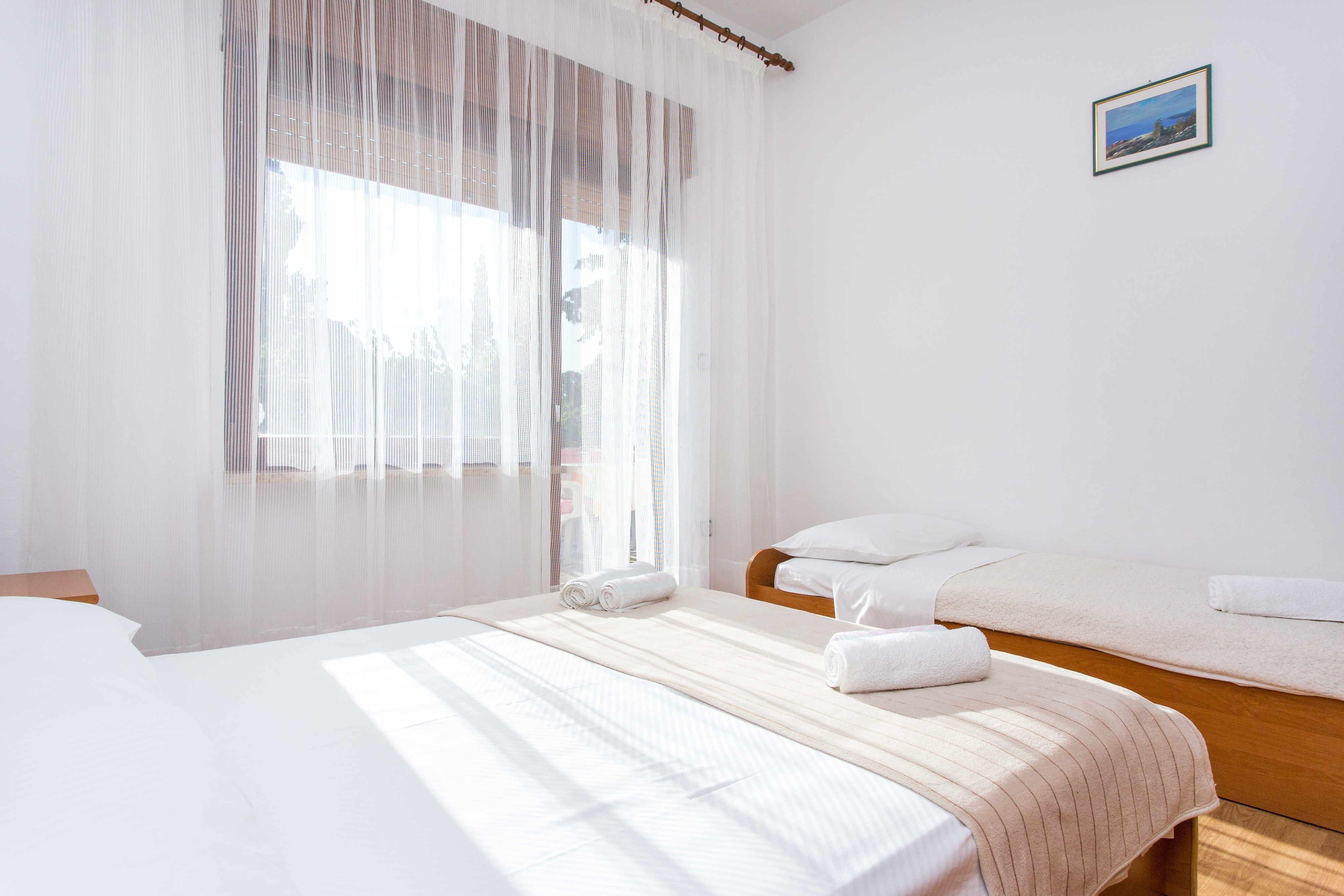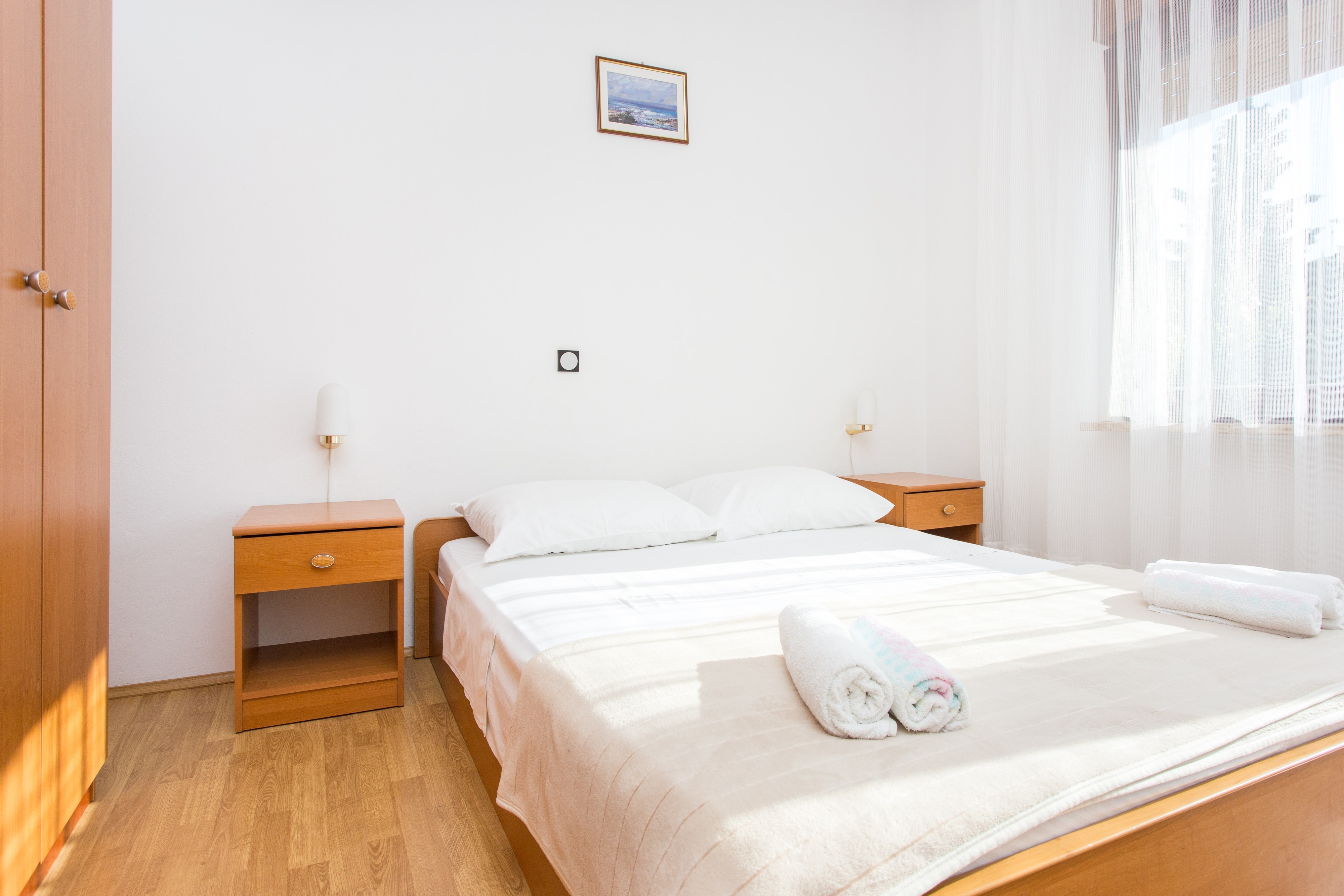 Apartment can accommodate 5 guests. Beds are situated in 2 sleeping rooms, within 55m2. Guests can use a private terrace to enjoy the warm summer evenings. Food can be prepared using barbecue which is shared with other guests too. INCLUDED IN THE PRICE: tourist tax, final cleaning, parking, internet, sunchairs. OPTIONAL ADDITIONAL COSTS: air-conditioning (€6.00 per night). The availability of additional services for your chosen dates of stay, as well as their prices (if none are listed) must be checked ahead of time. Any additional services not shown in the price calculation are payable directly to the property owner and only if used by the visitor.