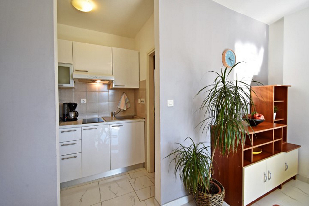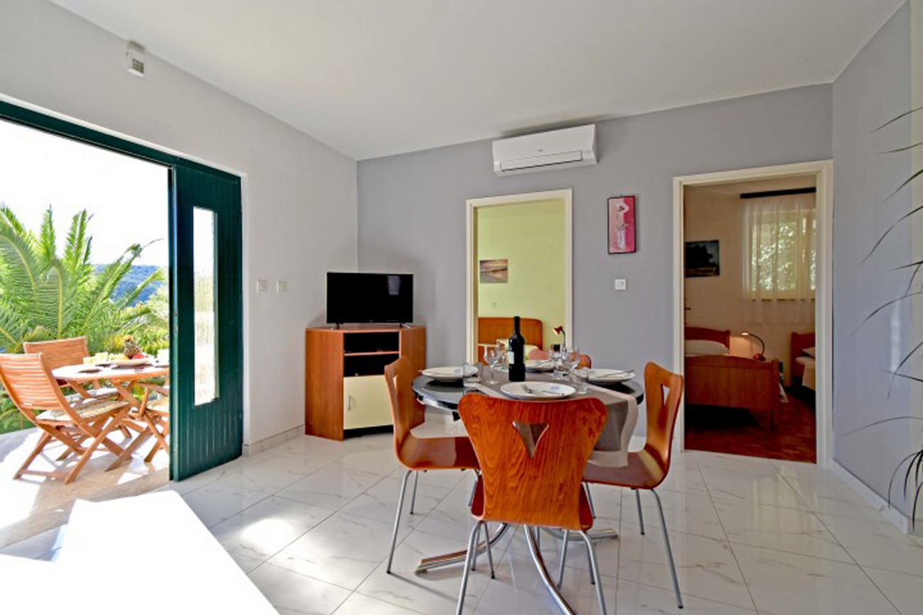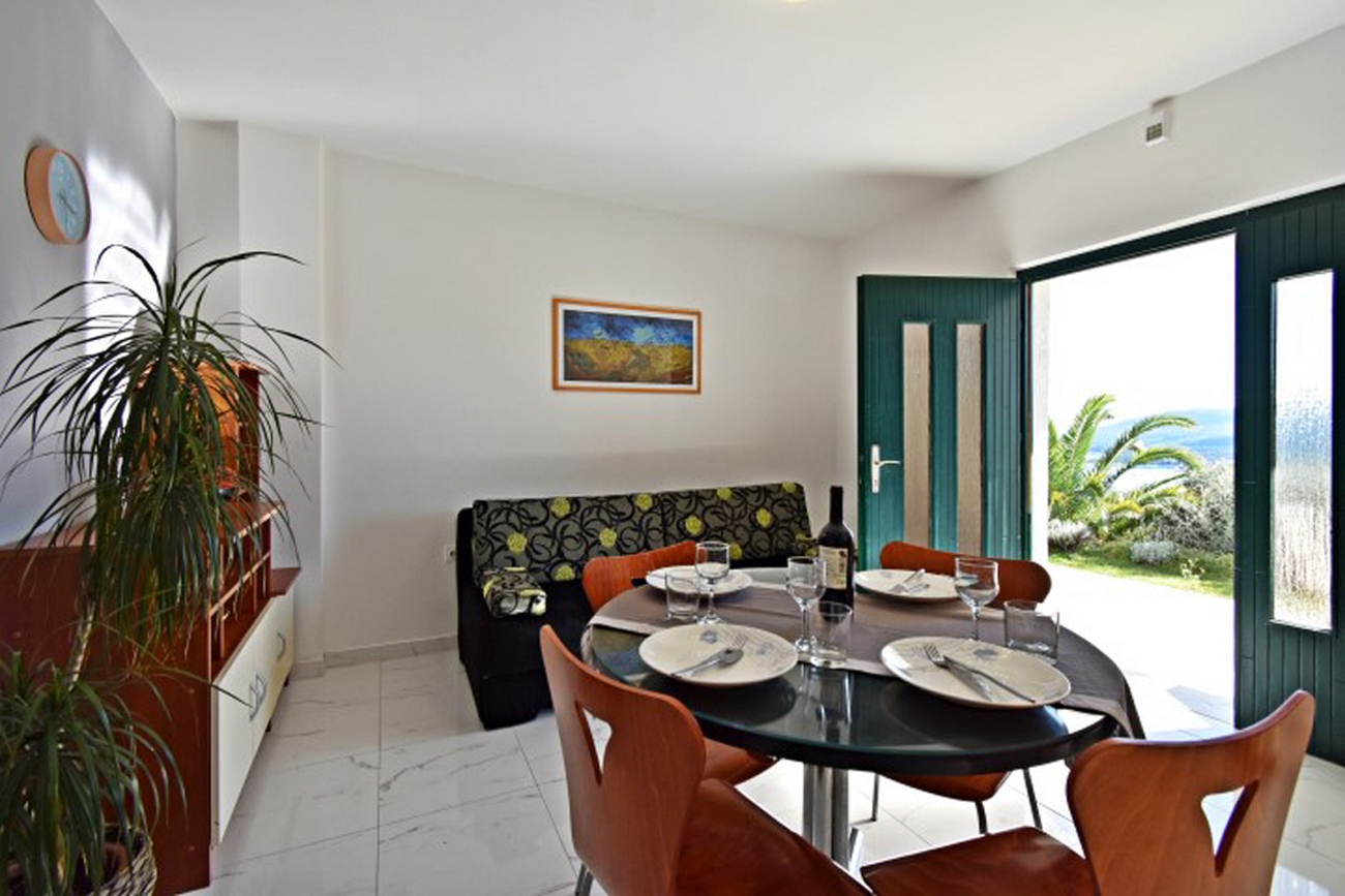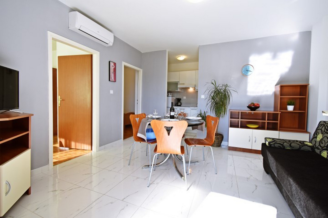 Apartment can accommodate 6 guests. Beds are situated in 2 sleeping rooms, but also in the living room, within 46m2. Guests can use a private terrace to enjoy the warm summer evenings. The apartment offers the sea view. Food can be prepared using barbecue which is shared with other guests too. This accommodation unit welcomes pets at an additional charge. INCLUDED IN THE PRICE: tourist tax, final cleaning, air-conditioning, internet, hairdryer, portable barbecue. OBLIGATORY ADDITIONAL COSTS: short stay fee (surcharge depending on a number of booked nights: 30% - 1, 20% - 2, 10% - 3). OPTIONAL ADDITIONAL COSTS: garage (€6.00 per night), pets (€10.00 per night). The availability of additional services for your chosen dates of stay, as well as their prices (if none are listed) must be checked ahead of time. Any additional services not shown in the price calculation are payable directly to the property owner and only if used by the visitor.