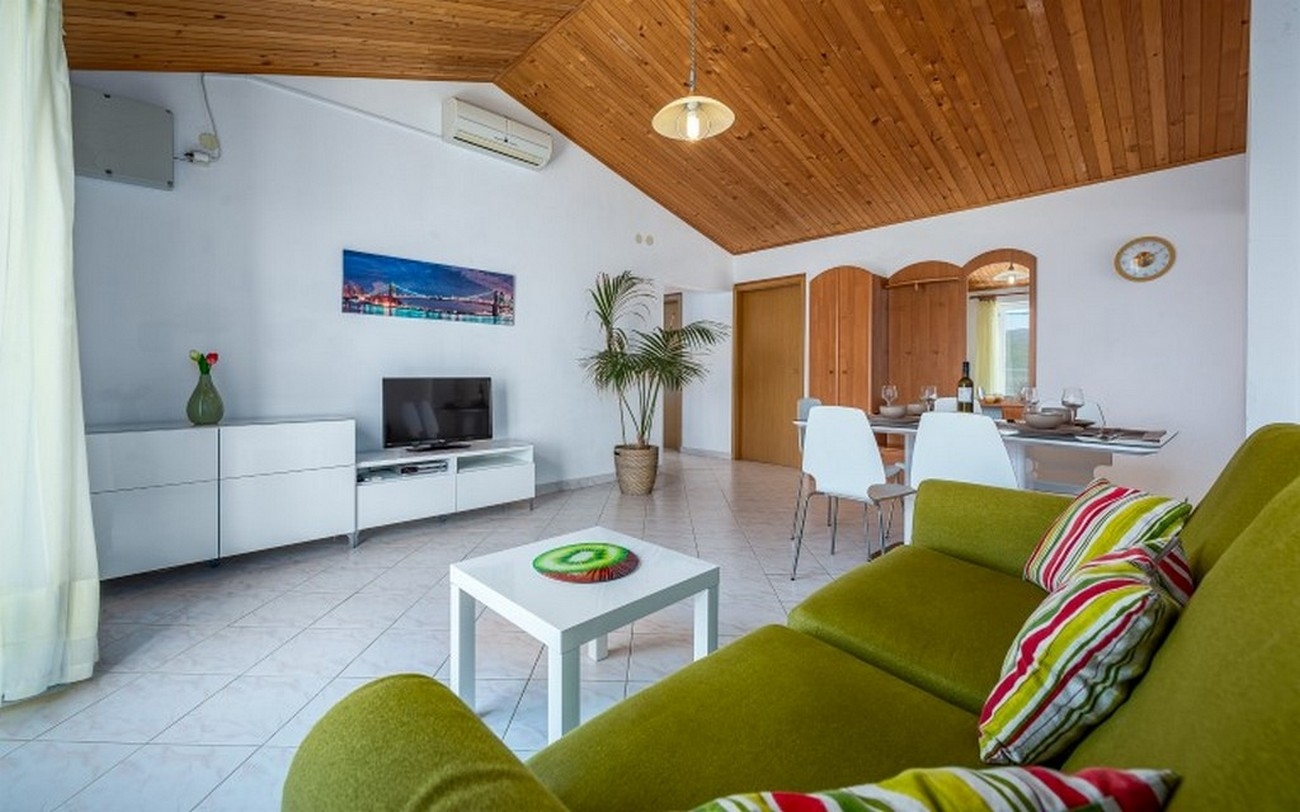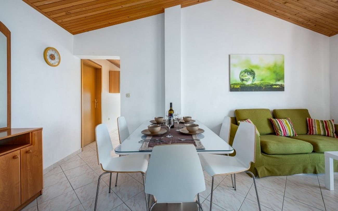 Apartment can accommodate 6 guests. Beds are situated in 2 sleeping rooms, but also in the living room, within 86m2. Guests can use a private terrace to enjoy the warm summer evenings. The apartment offers the sea view. Food can be prepared using barbecue which is shared with other guests too. INCLUDED IN THE PRICE: tourist tax, final cleaning, air-conditioning, internet, hairdryer, portable barbecue. OBLIGATORY ADDITIONAL COSTS: short stay fee (surcharge depending on a number of booked nights: 30% - 1, 20% - 2, 10% - 3). OPTIONAL ADDITIONAL COSTS: garage (€6.00 per night). The availability of additional services for your chosen dates of stay, as well as their prices (if none are listed) must be checked ahead of time. Any additional services not shown in the price calculation are payable directly to the property owner and only if used by the visitor.