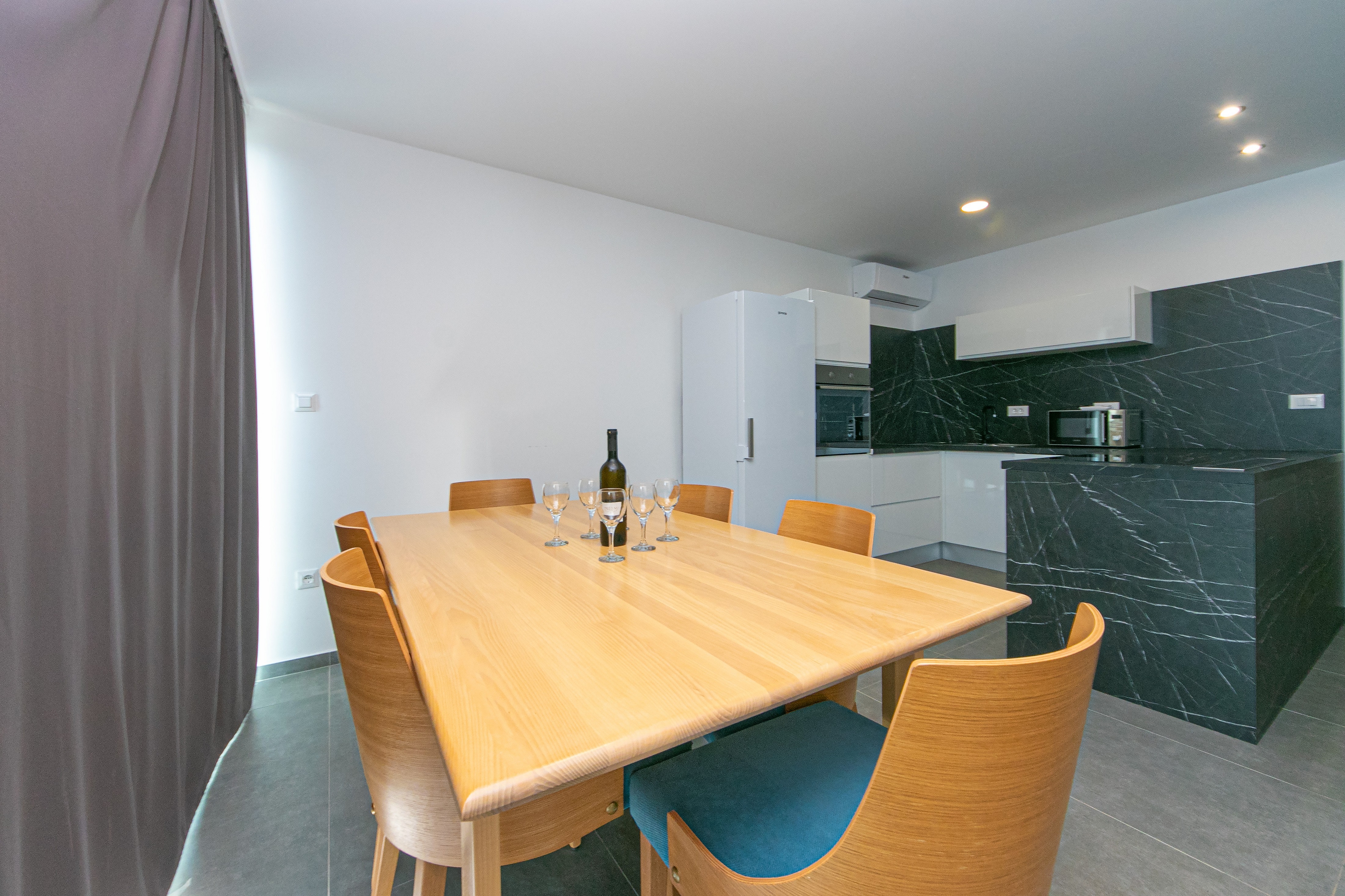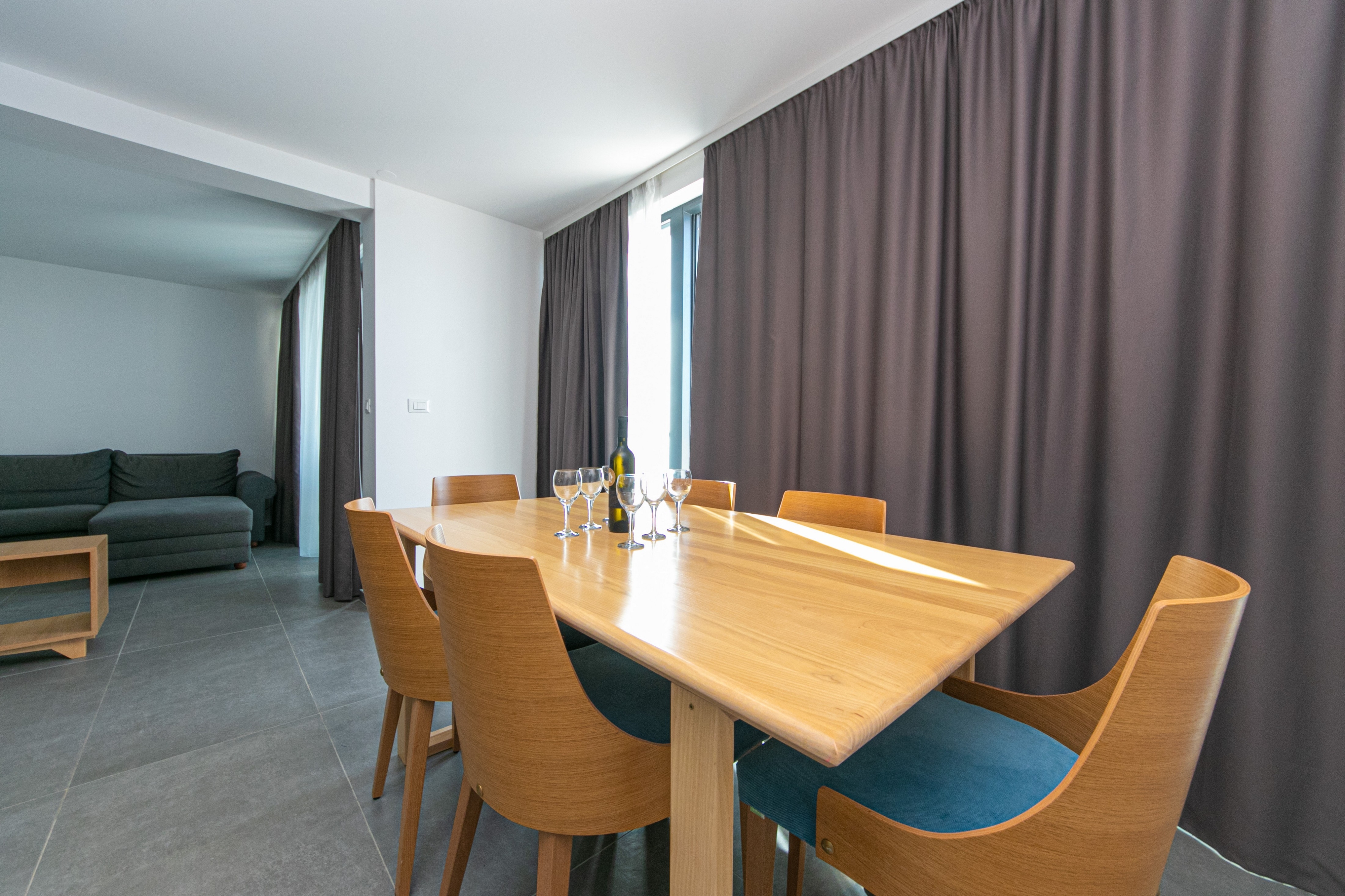 Apartment can accommodate 6 guests. Beds are situated in 2 sleeping rooms, but also in the living room, within 78m2. Guests can use a private terrace to enjoy the warm summer evenings. The apartment offers the sea view. Shared pool is on disposal during stay. INCLUDED IN THE PRICE: breakfast, final cleaning, air-conditioning, pool, parking, internet, baby cot, iron, ironing board, hairdryer. OBLIGATORY ADDITIONAL COSTS: tourist tax (adults €0.93 - €2.00 nightperson, discount for children aged 12 - 17). OPTIONAL ADDITIONAL COSTS: laundry (€5.00 washing). The availability of additional services for your chosen dates of stay, as well as their prices (if none are listed) must be checked ahead of time. Any additional services not shown in the price calculation are payable directly to the property owner and only if used by the visitor.