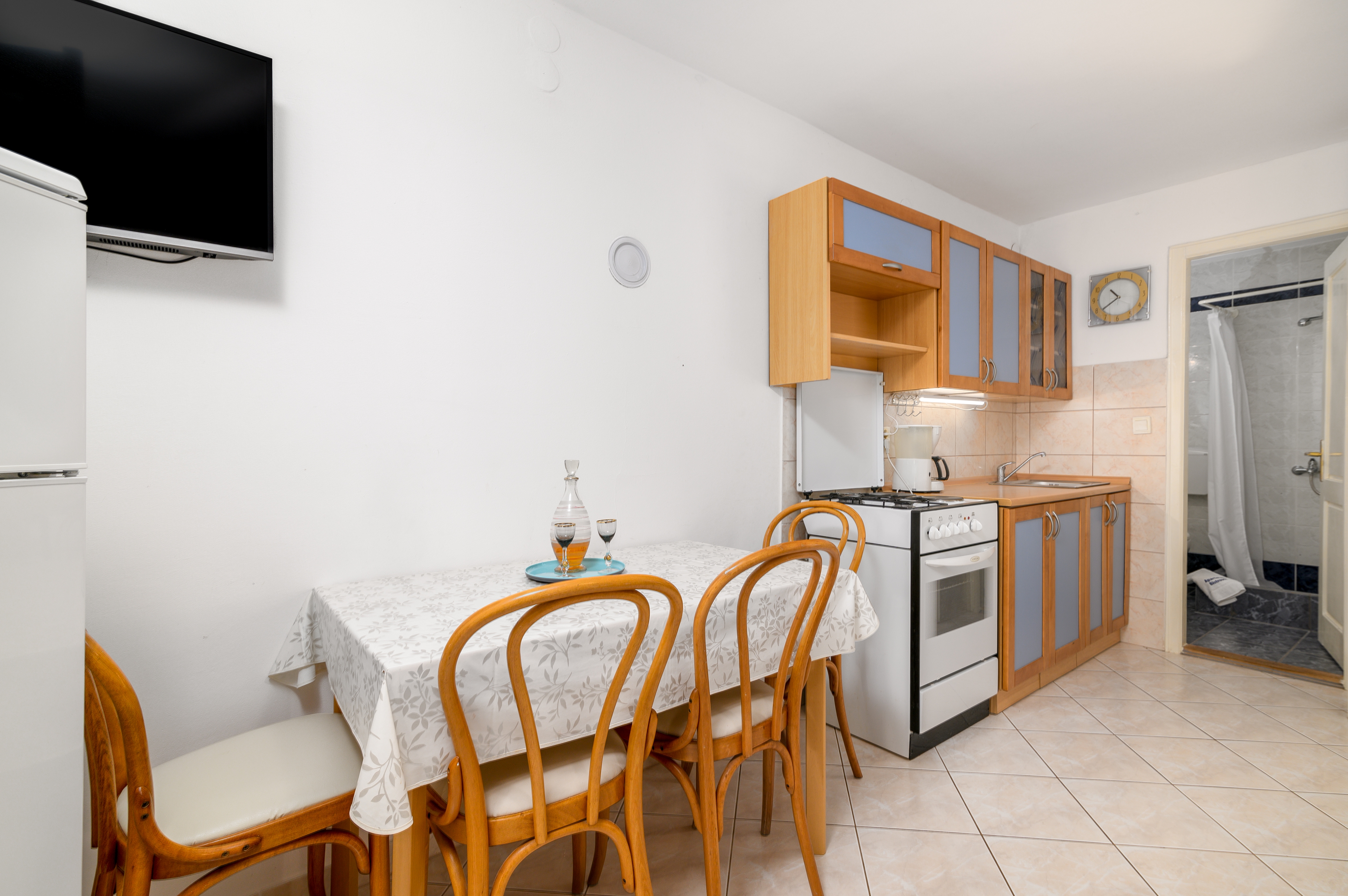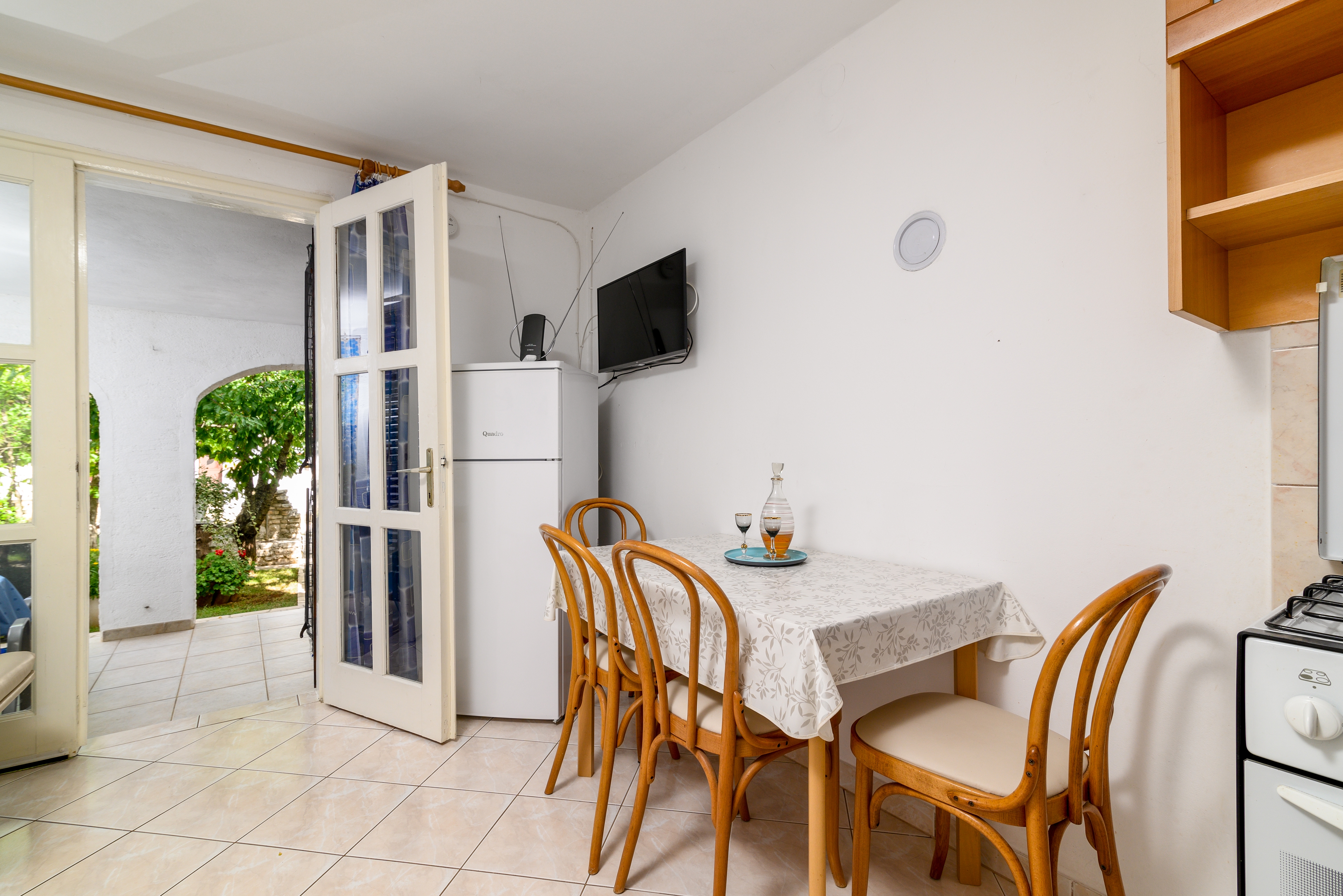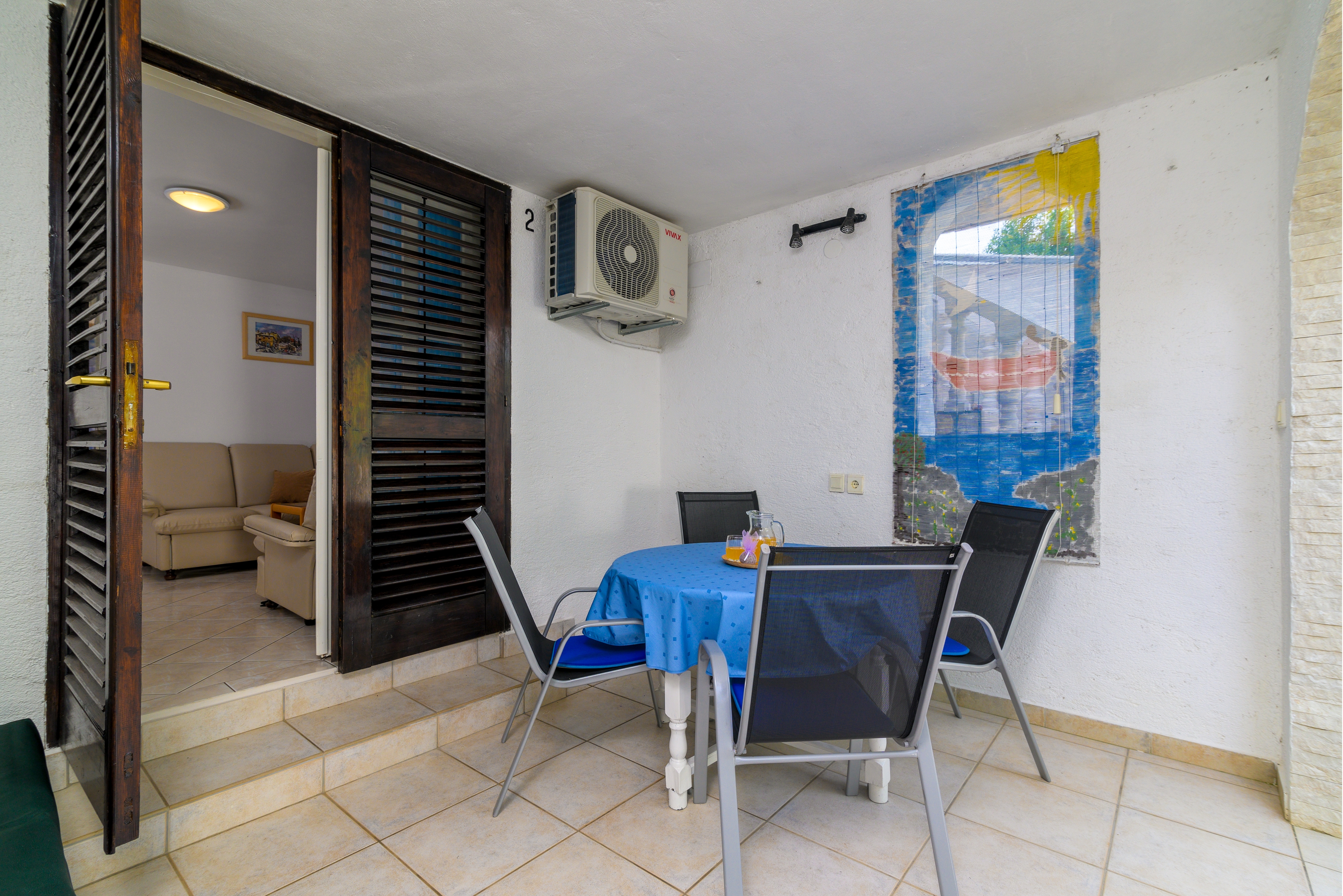 Studio flat can accommodate 4 guests. Beds are situated in 1 sleeping rooms, but also in the living room, within 29m2. Guests can use a private terrace to enjoy the warm summer evenings. Food can be prepared using barbecue which is shared with other guests too. INCLUDED IN THE PRICE: tourist tax, final cleaning, parking, internet, iron, ironing board, hairdryer. OBLIGATORY ADDITIONAL COSTS: short stay fee (surcharge depending on a number of booked nights: 30% - 1, 20% - 2, 10% - 3). OPTIONAL ADDITIONAL COSTS: air-conditioning (€5.00 per night), laundry (€5.00 washing), boat (€10.00 per night). The availability of additional services for your chosen dates of stay, as well as their prices (if none are listed) must be checked ahead of time. Any additional services not shown in the price calculation are payable directly to the property owner and only if used by the visitor.