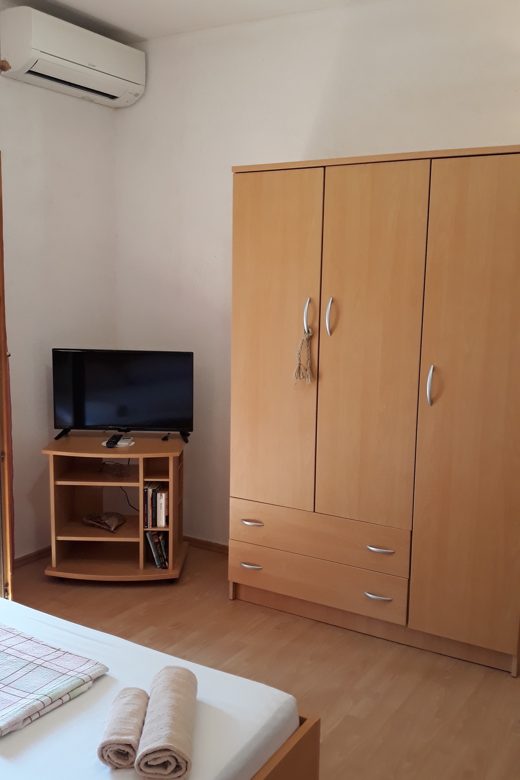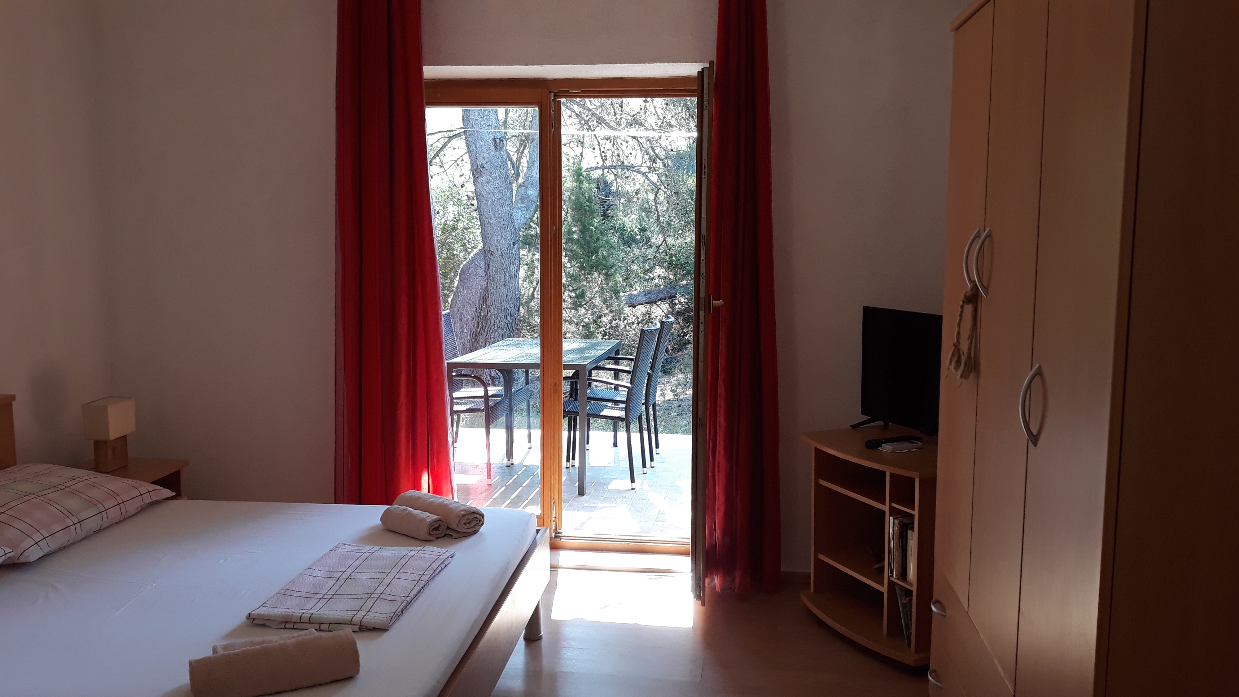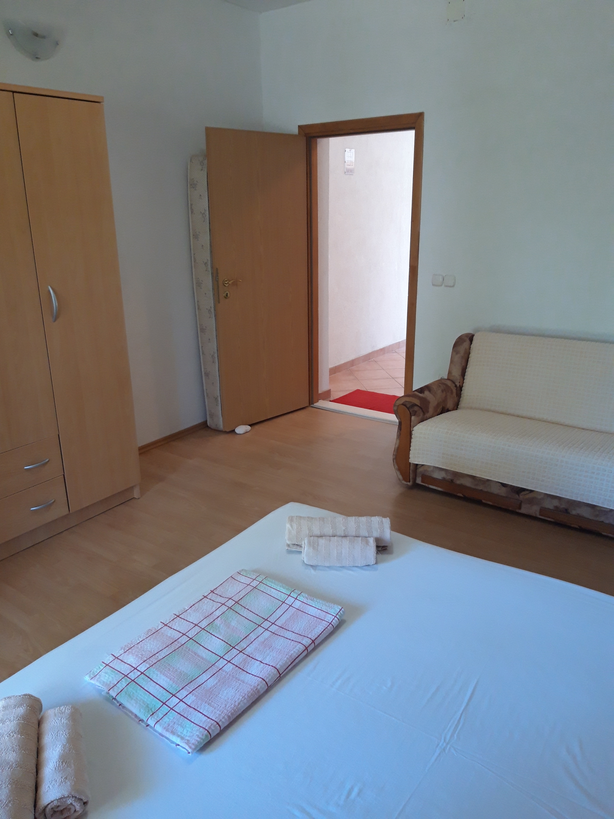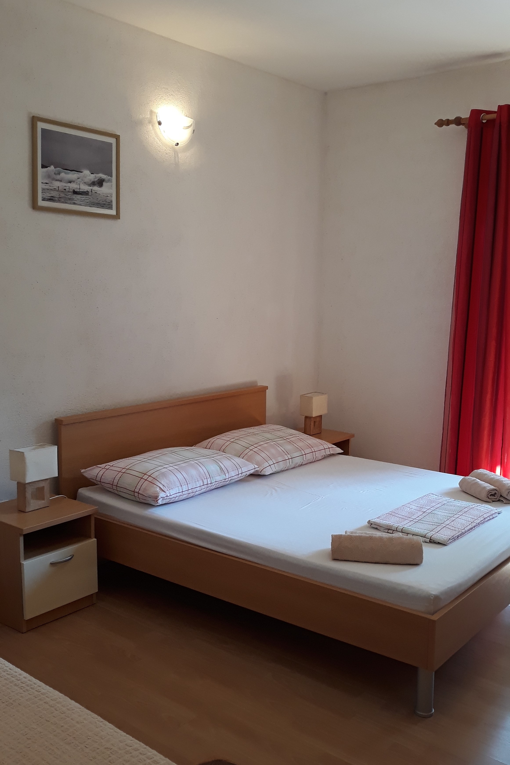 Apartment can accommodate 4 guests. Beds are situated in 1 sleeping rooms, but also in the dining room, within 33m2. Guests can use a private terrace to enjoy the warm summer evenings. Food can be prepared using barbecue which is shared with other guests too. INCLUDED IN THE PRICE: tourist tax, final cleaning, air-conditioning, parking, internet, boat mooring. OBLIGATORY ADDITIONAL COSTS: short stay fee (surcharge depending on a number of booked nights: 30% - 1, 20% - 2, 10% - 3). The availability of additional services for your chosen dates of stay, as well as their prices (if none are listed) must be checked ahead of time. Any additional services not shown in the price calculation are payable directly to the property owner and only if used by the visitor.