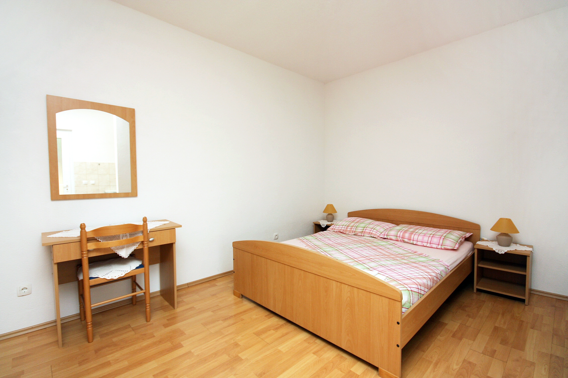 Studio flat can accommodate 2 guests. Beds are situated in 1 sleeping rooms, within 21m2. Guests can use a private terrace to enjoy the warm summer evenings. Food can be prepared using barbecue which is shared with other guests too. Other guests or hosts pass through the terrace of the booked accommodation unit. INCLUDED IN THE PRICE: tourist tax, final cleaning, air-conditioning, parking, internet, baby cot, hairdryer. OBLIGATORY ADDITIONAL COSTS: short stay fee (surcharge depending on a number of booked nights: 30% - 1, 20% - 2, 10% - 3). The availability of additional services for your chosen dates of stay, as well as their prices (if none are listed) must be checked ahead of time. Any additional services not shown in the price calculation are payable directly to the property owner and only if used by the visitor. Discounts to the base price: free day 14=13 (for reservations of 14 or more days you get one free day for the stay until 31122026).