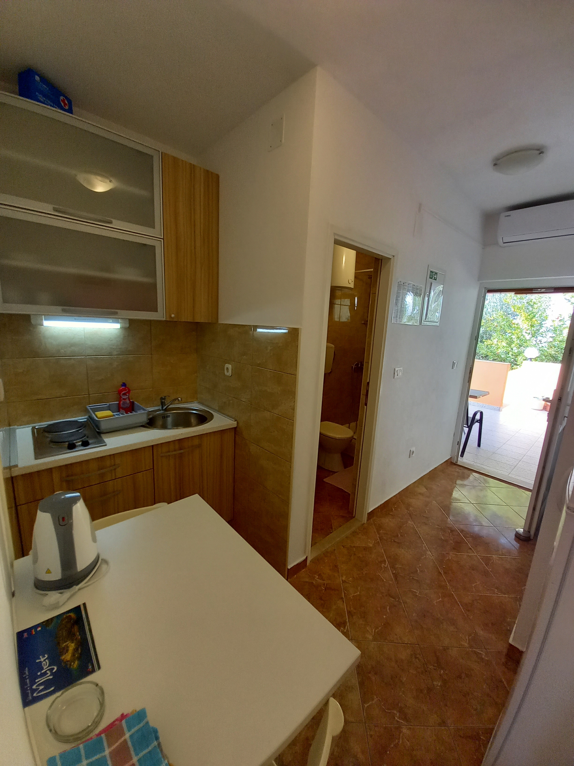 Studio flat can accommodate 2 guests. Beds are situated in 1 sleeping rooms, within 25m2. Guests can use a private balcony to enjoy the warm summer evenings. The studio offers the sea view. Food can be prepared using barbecue which is shared with other guests too. Reserved accommodation unit has a shared terrace. INCLUDED IN THE PRICE: tourist tax, final cleaning, air-conditioning, internet, laundry, iron, ironing board, hairdryer. OBLIGATORY ADDITIONAL COSTS: short stay fee (surcharge depending on a number of booked nights: 30% - 1, 20% - 2, 10% - 3). The availability of additional services for your chosen dates of stay, as well as their prices (if none are listed) must be checked ahead of time. Any additional services not shown in the price calculation are payable directly to the property owner and only if used by the visitor. Discounts to the base price: free day 14=13 (for reservations of 14 or more days you get one free day for the stay until 31122026).