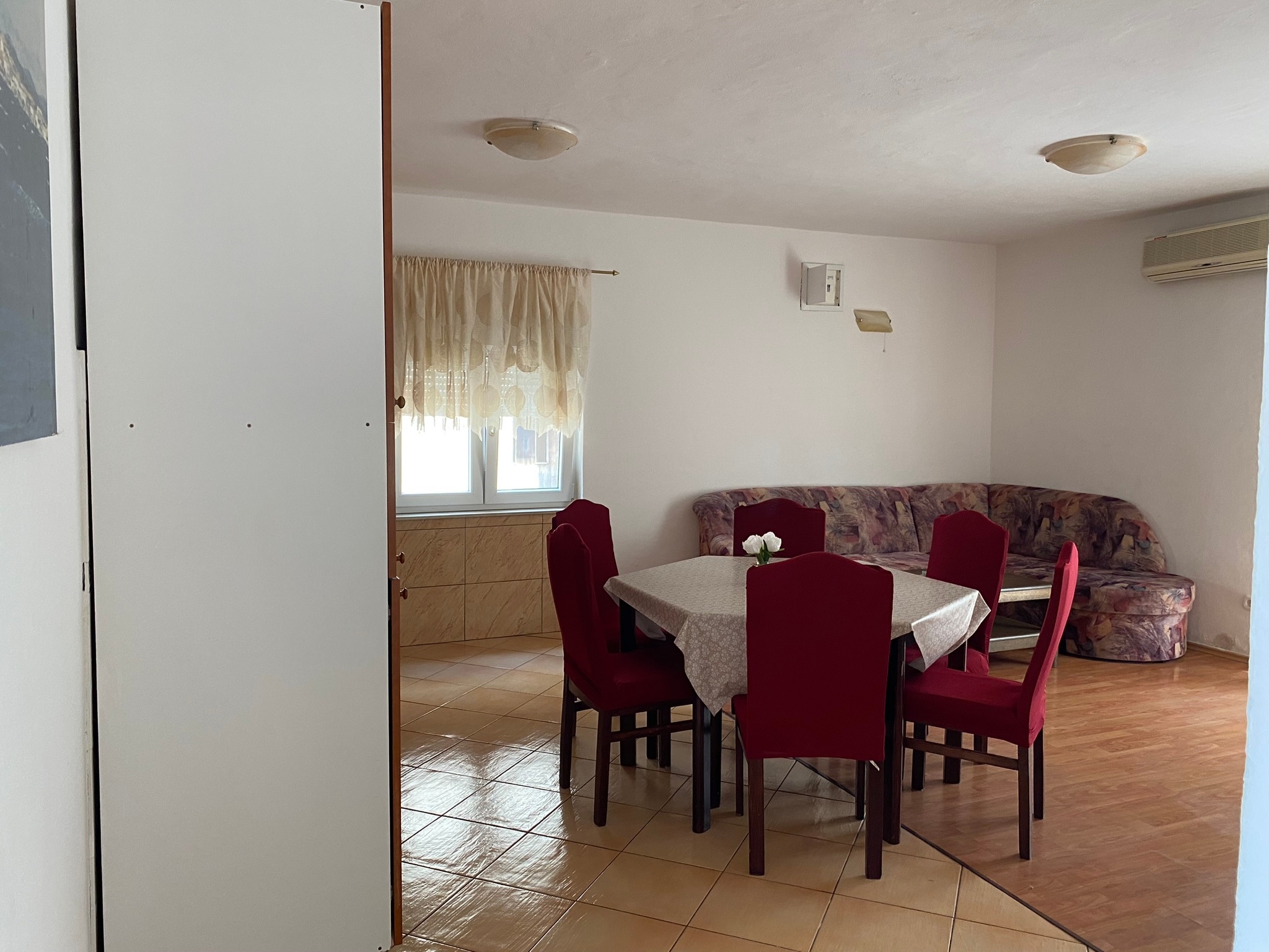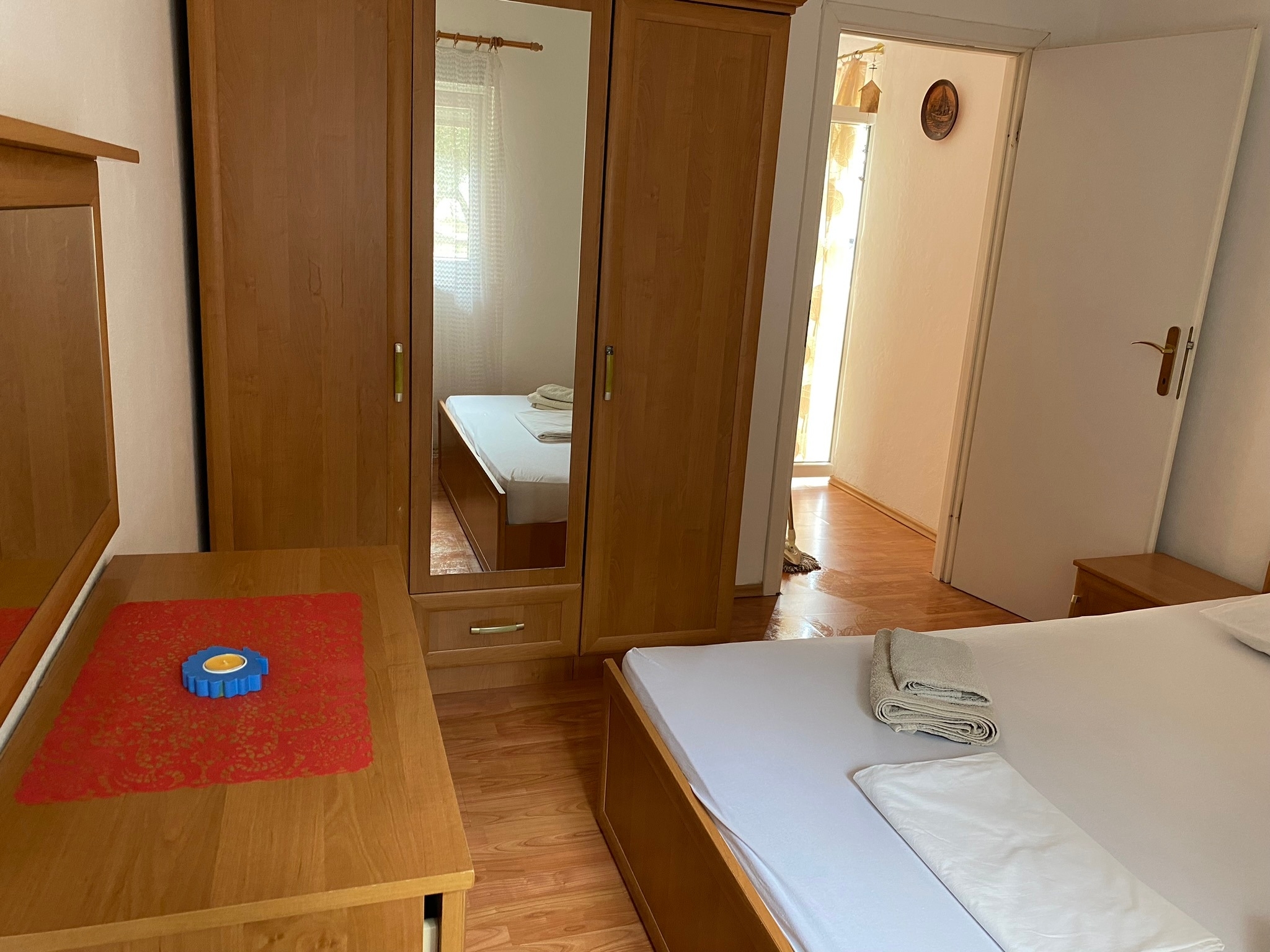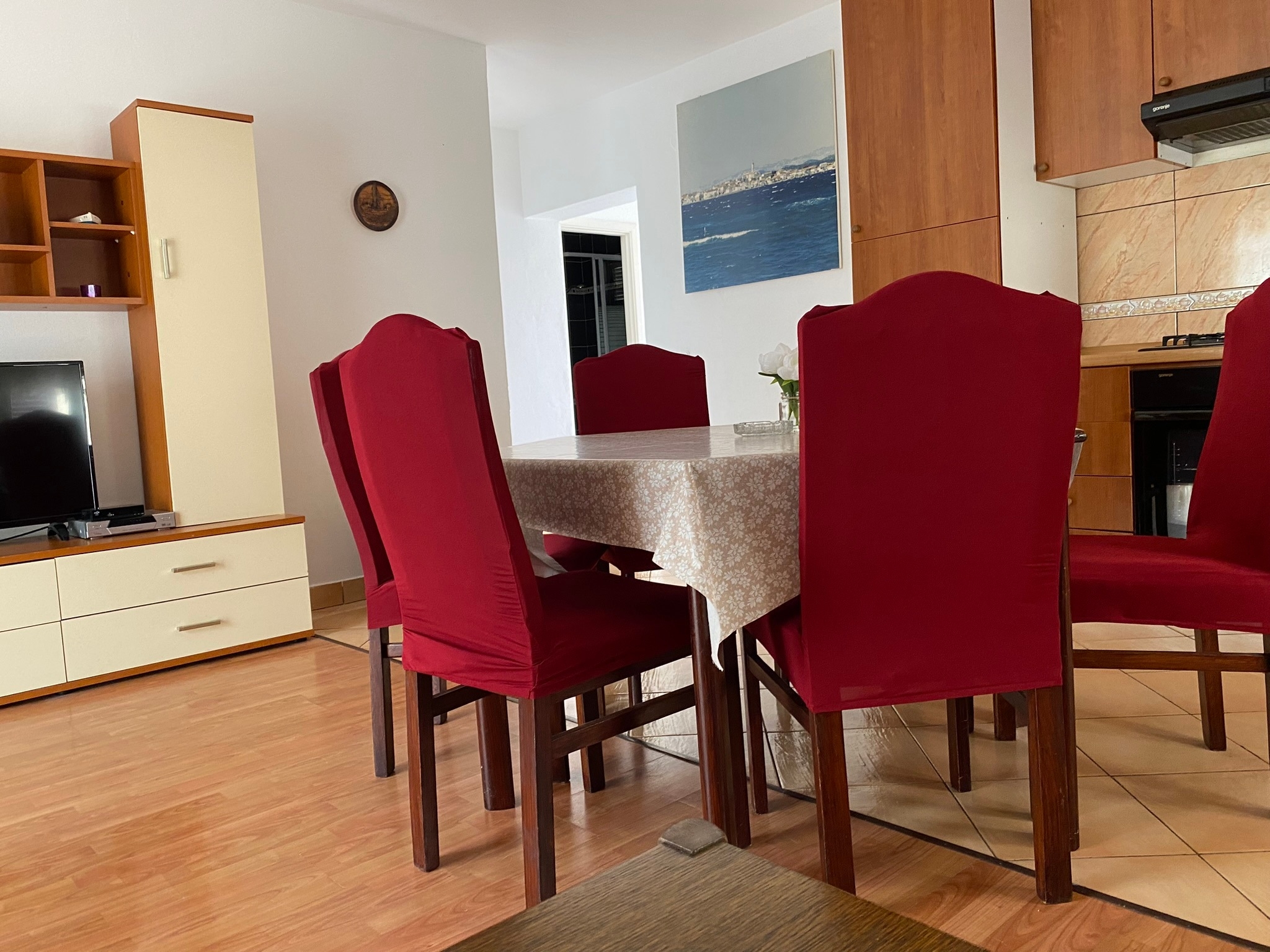 Apartment can accommodate 6 guests. Beds are situated in 2 sleeping rooms, but also in the living room, within 51m2. Guests can use a private terrace to enjoy the warm summer evenings. For full enjoyment and relaxation there is a private barbecue for this accommodation guests only. This accommodation unit welcomes pets at an additional charge. INCLUDED IN THE PRICE: tourist tax, final cleaning, air-conditioning, parking, internet, iron, hairdryer, sunchairs. OBLIGATORY ADDITIONAL COSTS: short stay fee (surcharge depending on a number of booked nights: 30% - 1, 20% - 2, 10% - 3). OPTIONAL ADDITIONAL COSTS: boat (€30.00 per night), boat mooring (€10.00 per night), pets (€5.00 per night), additional bed (€10.00 per night). The availability of additional services for your chosen dates of stay, as well as their prices (if none are listed) must be checked ahead of time. Any additional services not shown in the price calculation are payable directly to the property owner and only if used by the visitor. Discounts to the base price: free day 14=13 (for reservations of 14 or more days you get one free day for the stay until 31122026).