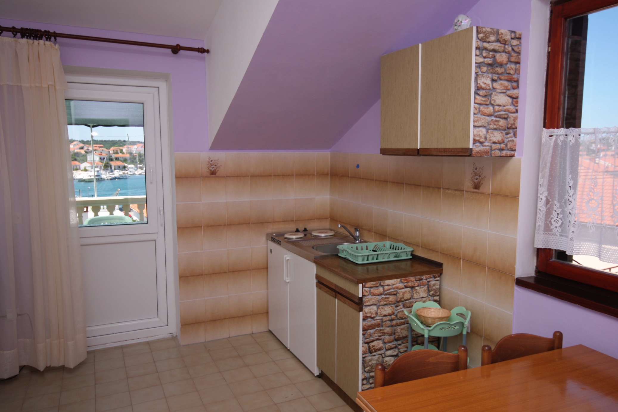 House 5063 in the town of Jezera, Murter - North Dalmatia has accommodation units of type Apartment (3) and is 150 m away from the sea. The nearest beach to this accommodation is a pebble beach. Other guests will may be found in the other apartments which are a part of this house. During your holiday, your hosts will also be present in the house. The house owner is under no obligation to accept additional persons and pets that were not stated in the reservation request and it is necessary to report them in advance.AMENITIES Courtyard (150m2), Parking lot (Number of parking spaces: 2, Distance from the house: In the courtyard), Barbecue: shared, WiFi Internet, Laundry service, Ironing board, Baby cot LOCATION AND ACCESS Car access possible: Yes The facility is situated in relatively quiet surroundings The property isnt surrounded by greenery DISTANCES Sea: 150 m Beach: 150 m Center: 300 m Shop: 380 m Urgent medical care: 3 km
