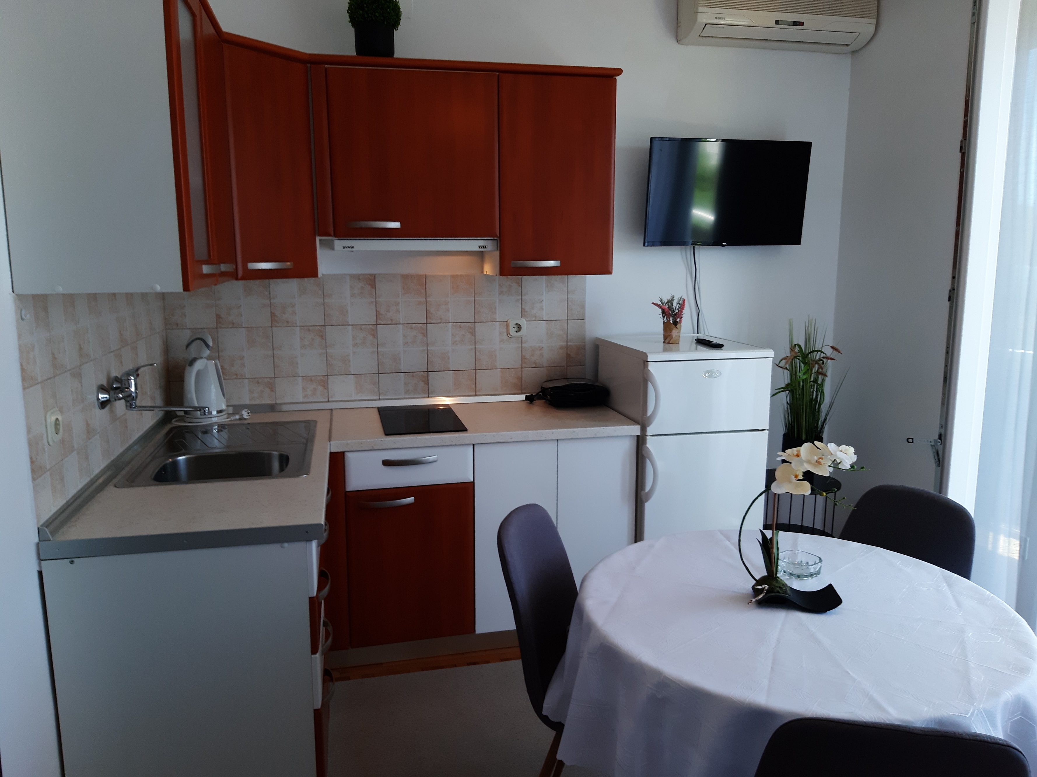 Apartment can accommodate 3 guests. Beds are situated in 1 sleeping rooms, within 34m2. Guests can use a private balcony to enjoy the warm summer evenings. The apartment offers the sea view. Food can be prepared using barbecue which is shared with other guests too. Reserved accommodation unit has a shared terrace. INCLUDED IN THE PRICE: tourist tax, final cleaning, air-conditioning, parking, internet, boat mooring, iron, ironing board, hairdryer, portable barbecue, sunshade, sunchairs. OBLIGATORY ADDITIONAL COSTS: short stay fee (surcharge depending on a number of booked nights: 30% - 1, 20% - 2, 10% - 3). The availability of additional services for your chosen dates of stay, as well as their prices (if none are listed) must be checked ahead of time. Any additional services not shown in the price calculation are payable directly to the property owner and only if used by the visitor.