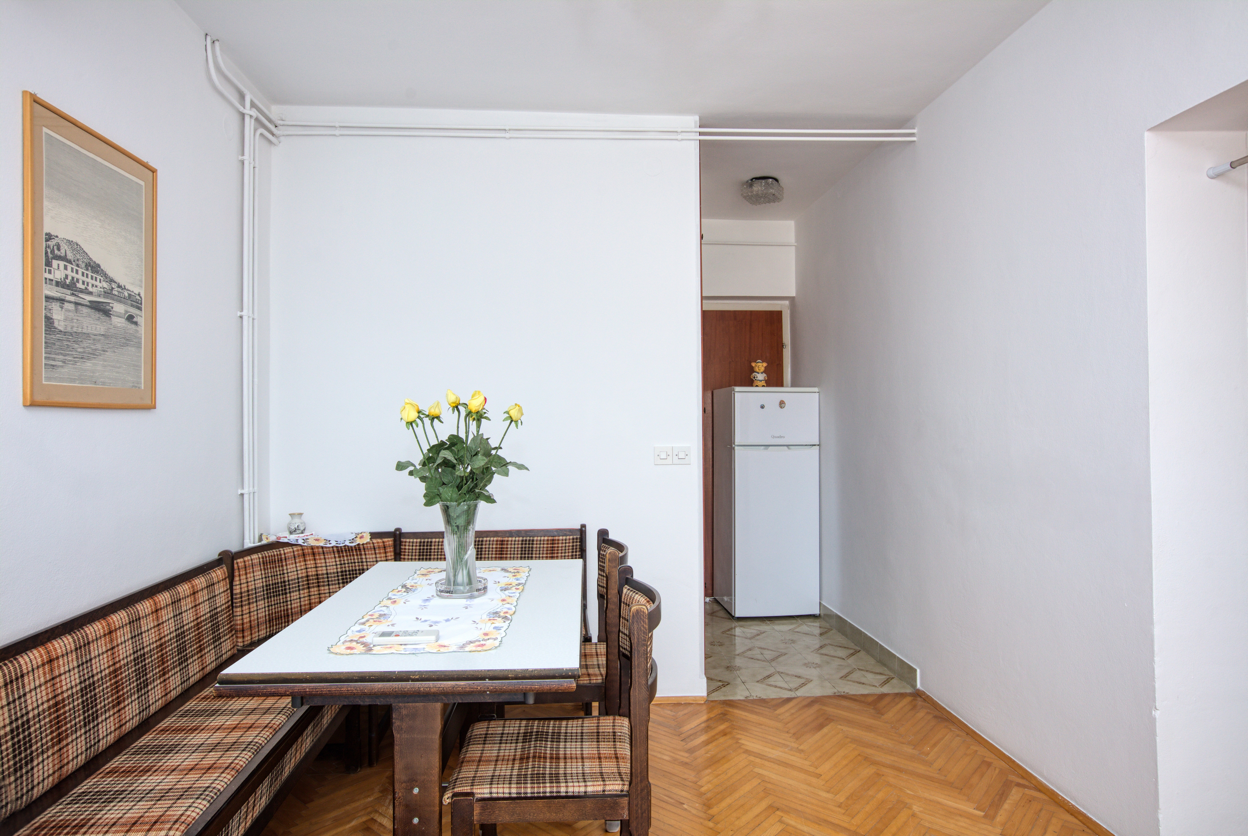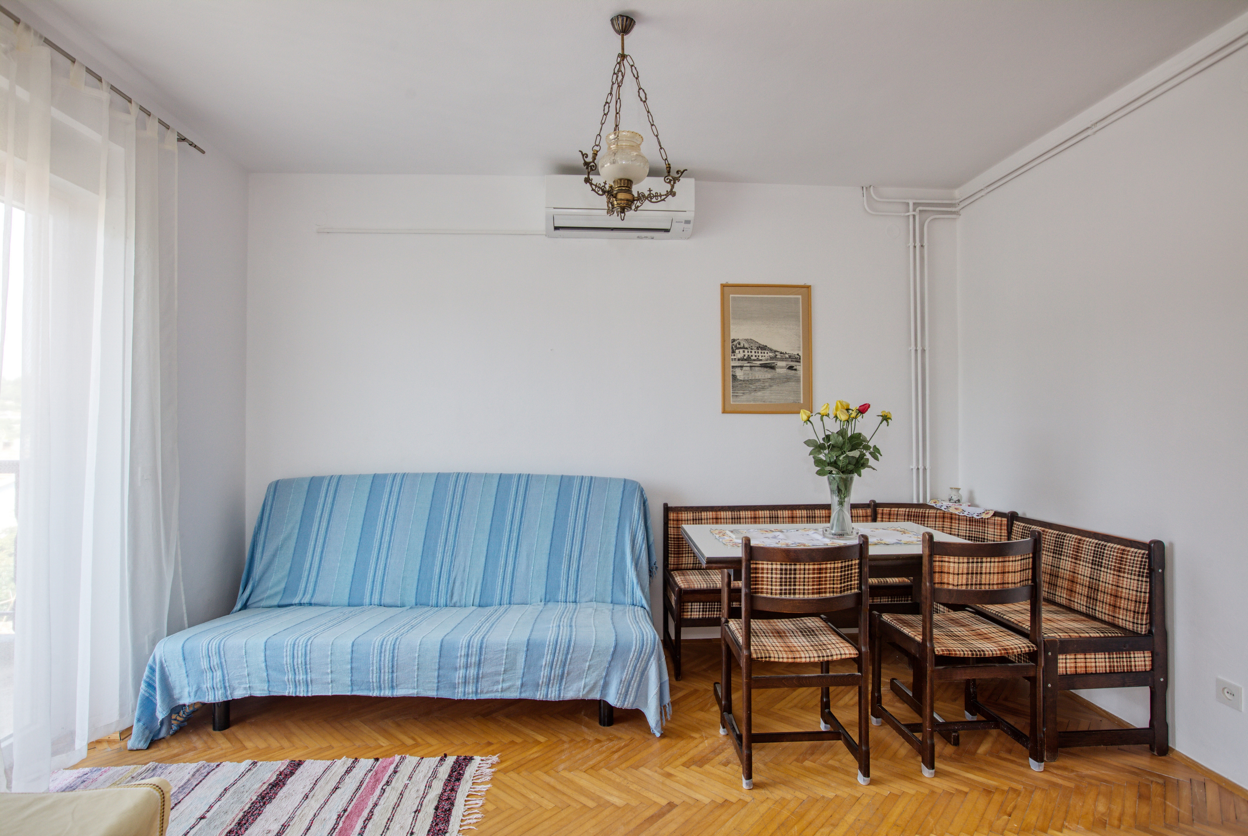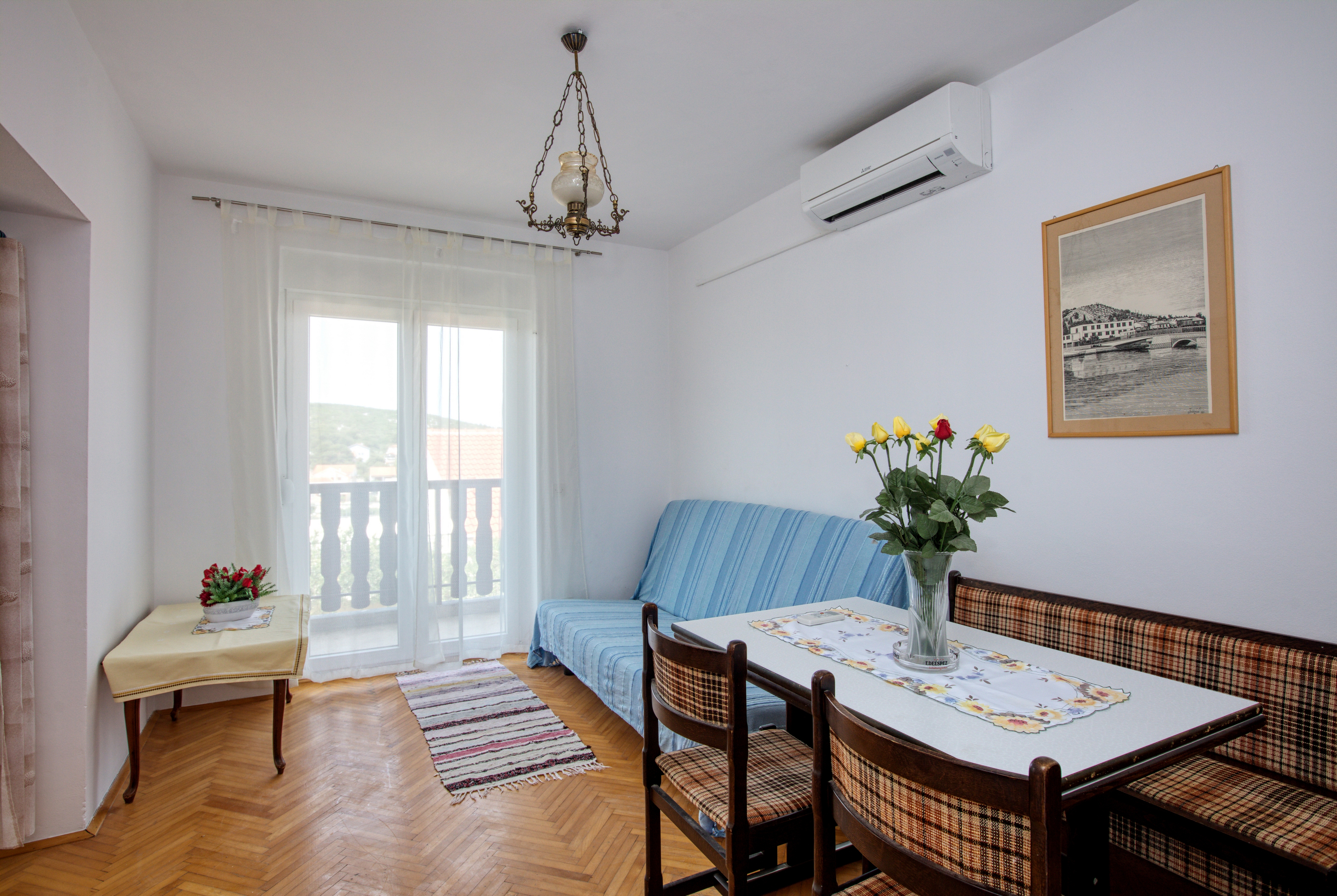 Studio flat can accommodate 3 guests. Beds are situated in 1 sleeping rooms, but also in the living room, within 28m2. Guests can use a private balcony to enjoy the warm summer evenings. The studio offers the sea view. Food can be prepared using barbecue which is shared with other guests too. This accommodation unit welcomes pets at an additional charge. INCLUDED IN THE PRICE: tourist tax, final cleaning, air-conditioning, parking, internet, laundry, iron, ironing board, hairdryer. OBLIGATORY ADDITIONAL COSTS: short stay fee (surcharge depending on a number of booked nights: 30% - 1, 20% - 2, 10% - 3). OPTIONAL ADDITIONAL COSTS: pets (€5.00 per night), additional bed (€10.00 per night). The availability of additional services for your chosen dates of stay, as well as their prices (if none are listed) must be checked ahead of time. Any additional services not shown in the price calculation are payable directly to the property owner and only if used by the visitor.