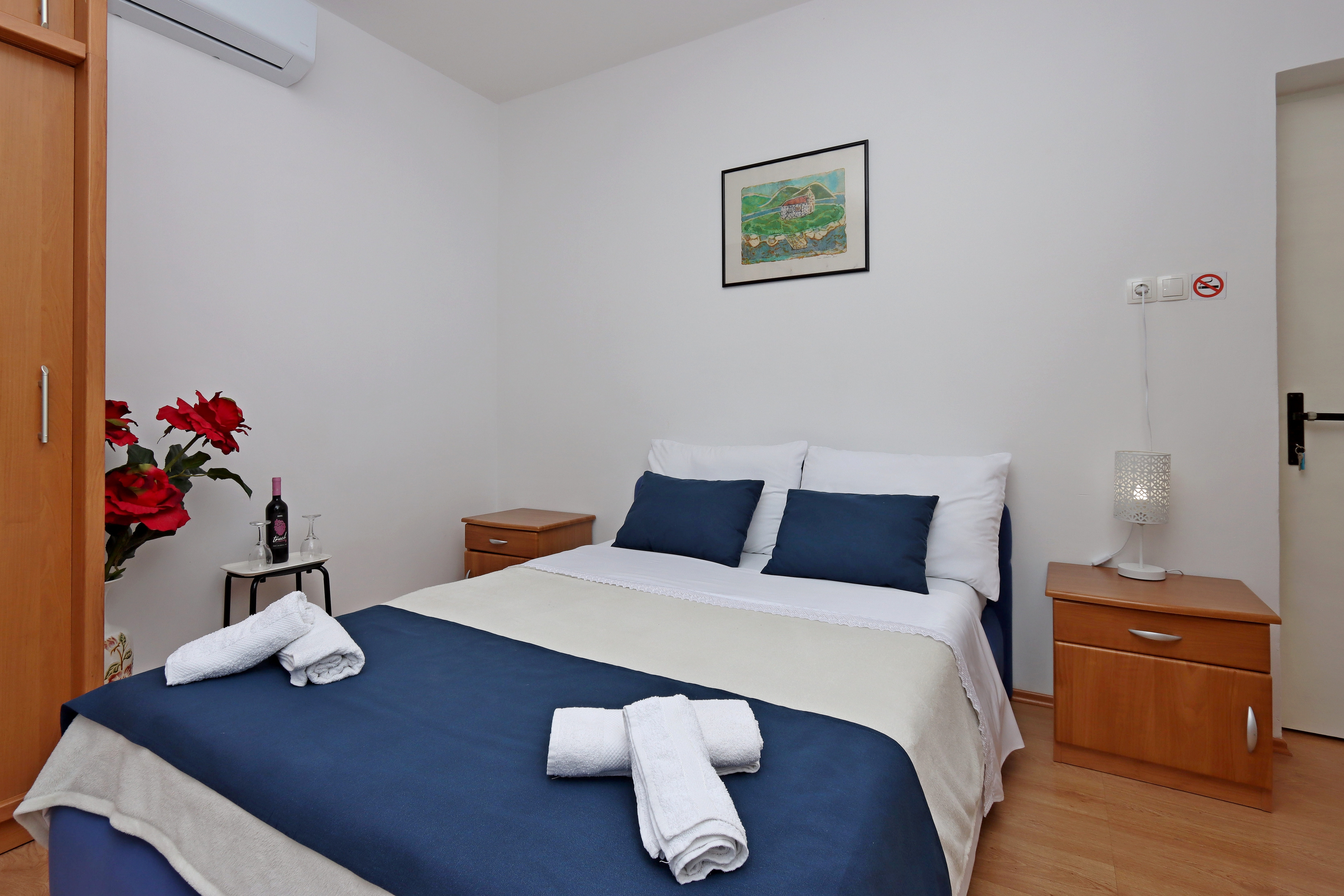 Room can accommodate 2 guests. Beds are situated in 1 sleeping rooms, within 18m2. Guests can use a private balcony to enjoy the warm summer evenings. Reserved accommodation unit is a room with its own bathroom and there is no usage of kitchen. INCLUDED IN THE PRICE: tourist tax, final cleaning, air-conditioning, parking, internet, iron, hairdryer. OBLIGATORY ADDITIONAL COSTS: short stay fee (surcharge depending on a number of booked nights: 30% - 1, 20% - 2, 10% - 3). The availability of additional services for your chosen dates of stay, as well as their prices (if none are listed) must be checked ahead of time. Any additional services not shown in the price calculation are payable directly to the property owner and only if used by the visitor. Discounts to the base price: free day 14=13 (for reservations of 14 or more days you get one free day for the stay until 31122026).