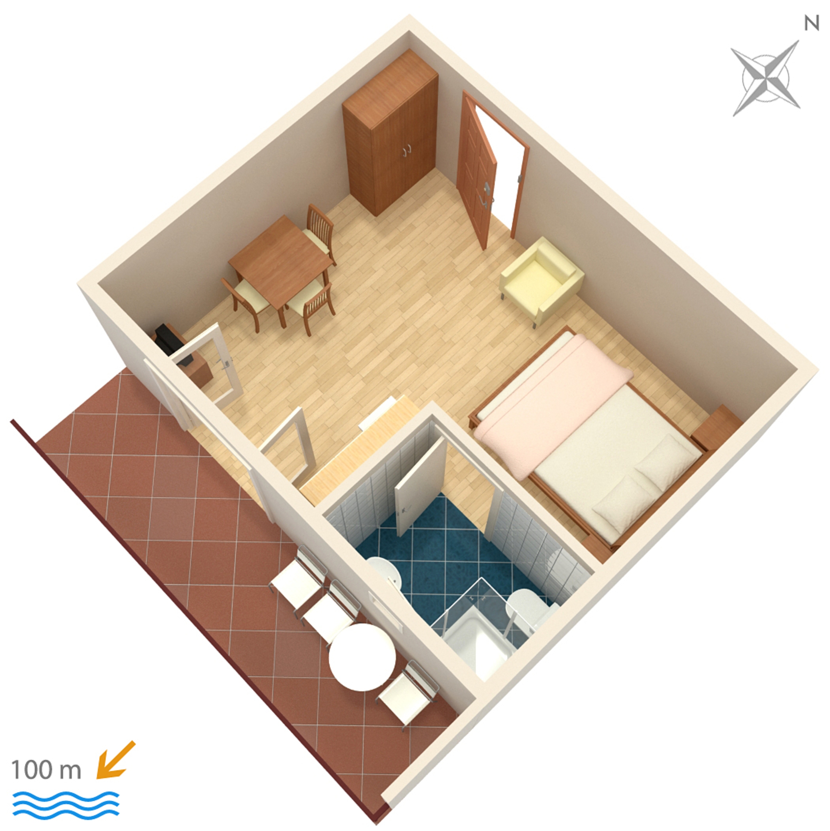 Studio flat can accommodate 3 guests. Beds are situated in 1 sleeping rooms, within 17m2. The studio offers the sea view. Food can be prepared using barbecue which is shared with other guests too. Reserved accommodation unit has a shared terrace. INCLUDED IN THE PRICE: tourist tax, final cleaning, air-conditioning, parking, internet. OBLIGATORY ADDITIONAL COSTS: short stay fee (surcharge depending on a number of booked nights: 30% - 1, 20% - 2, 10% - 3). The availability of additional services for your chosen dates of stay, as well as their prices (if none are listed) must be checked ahead of time. Any additional services not shown in the price calculation are payable directly to the property owner and only if used by the visitor.