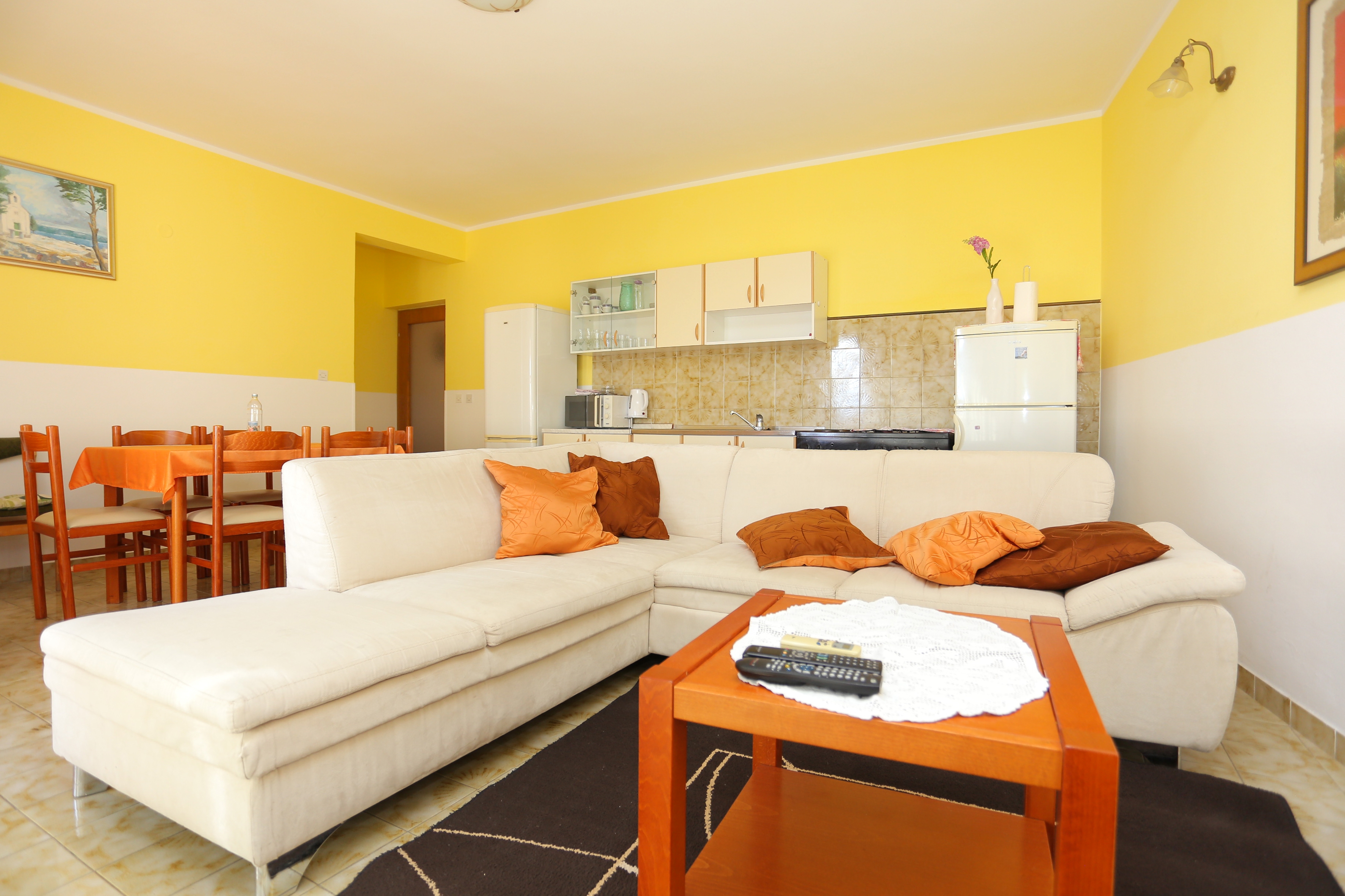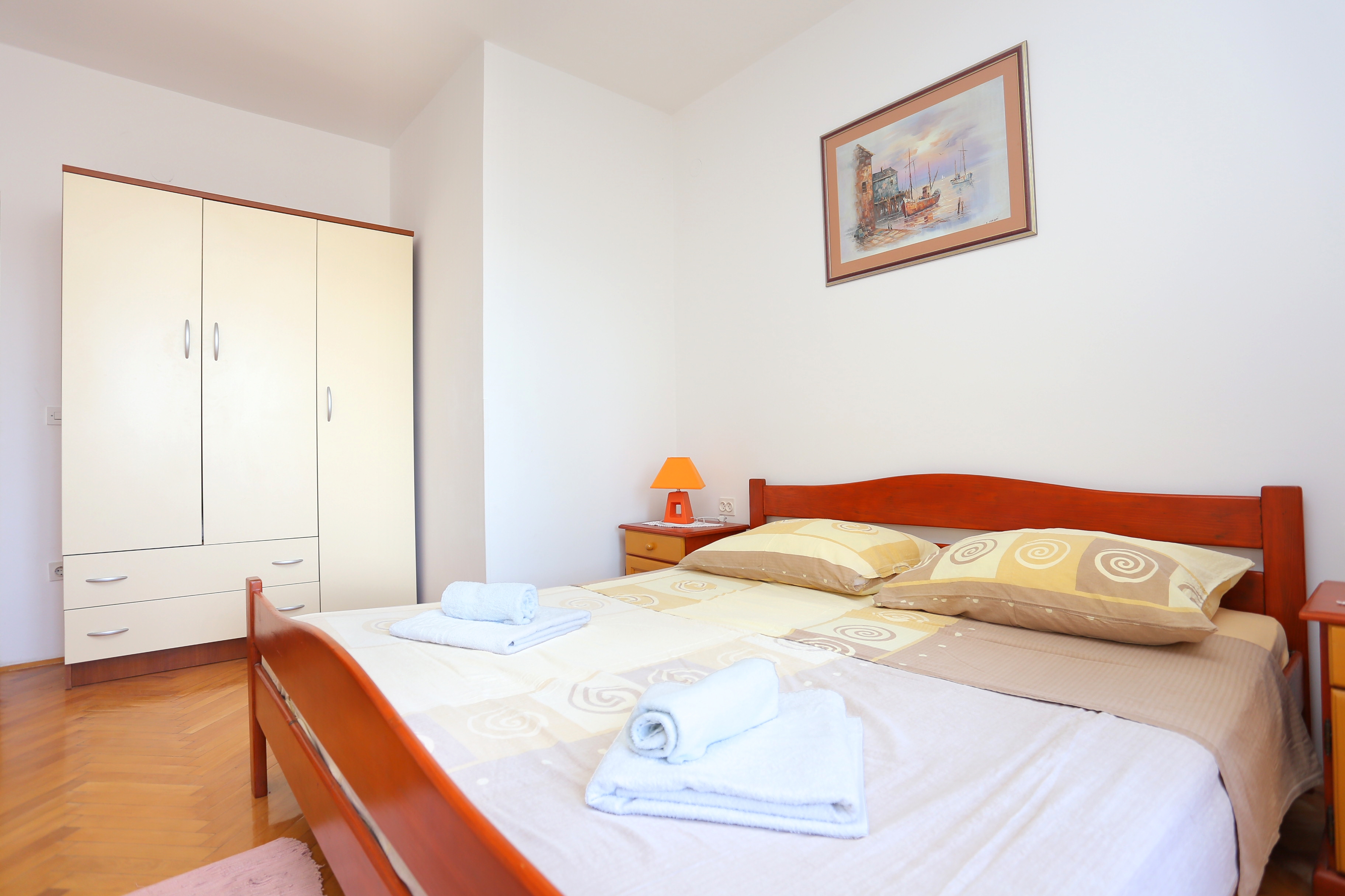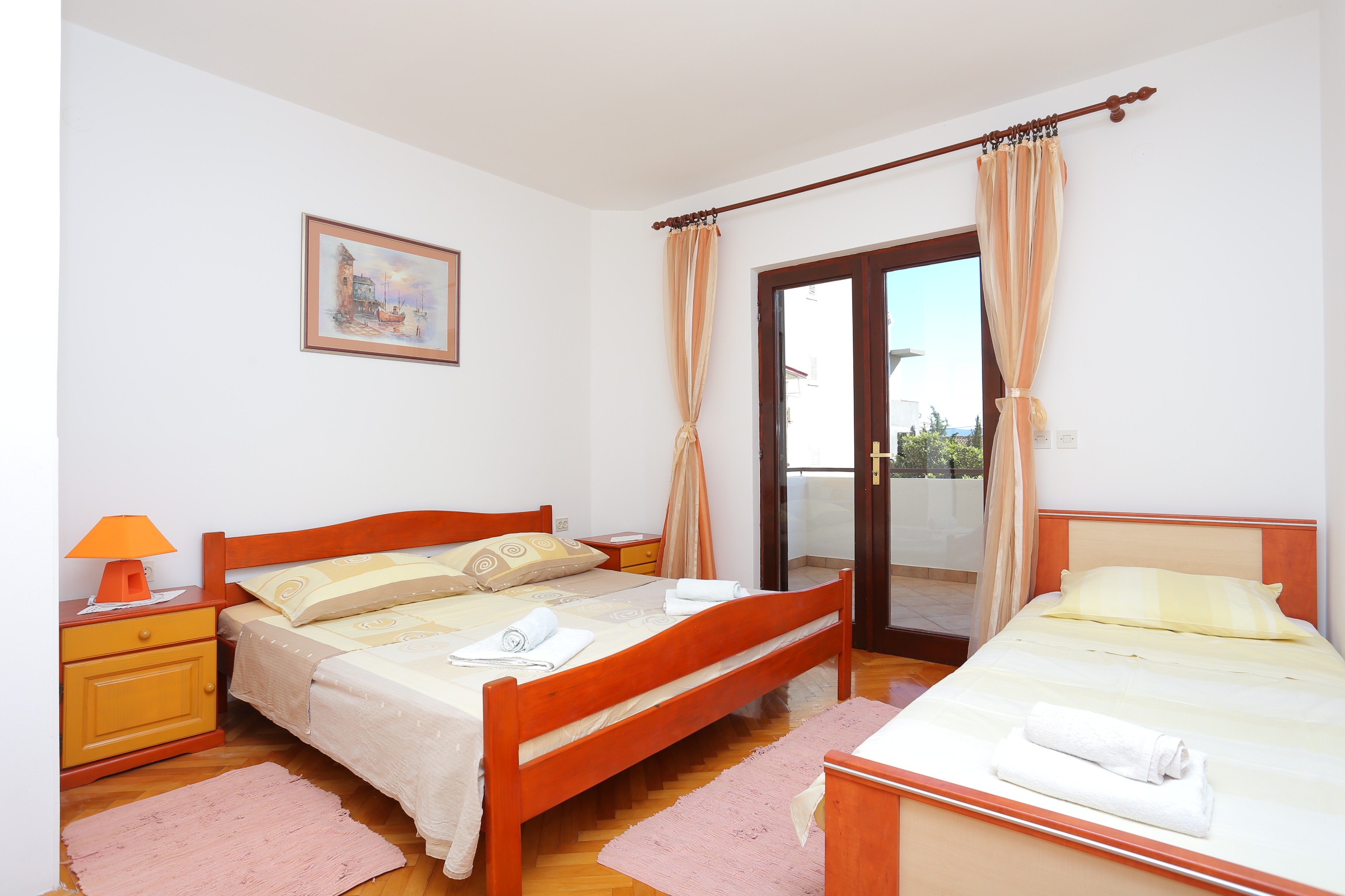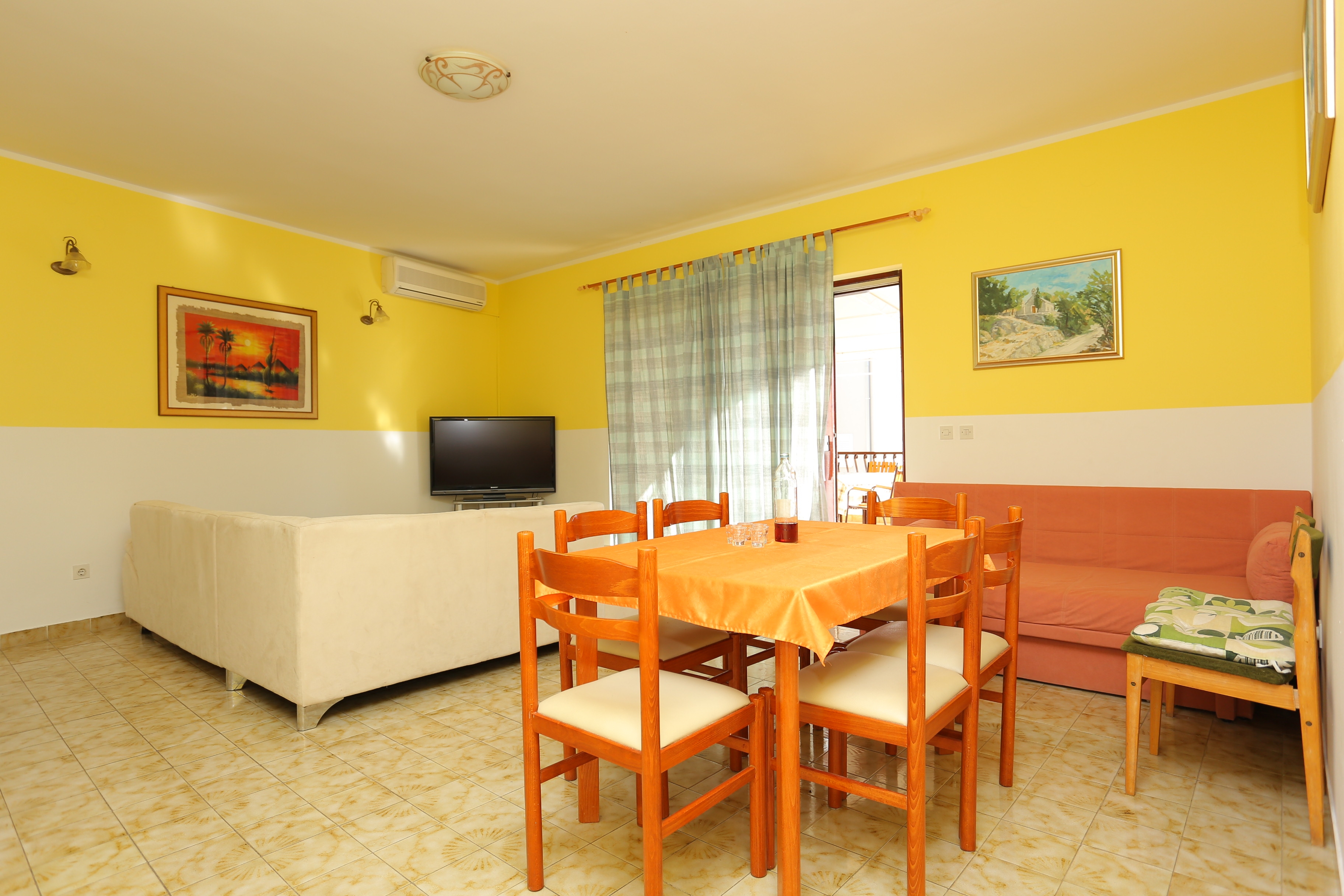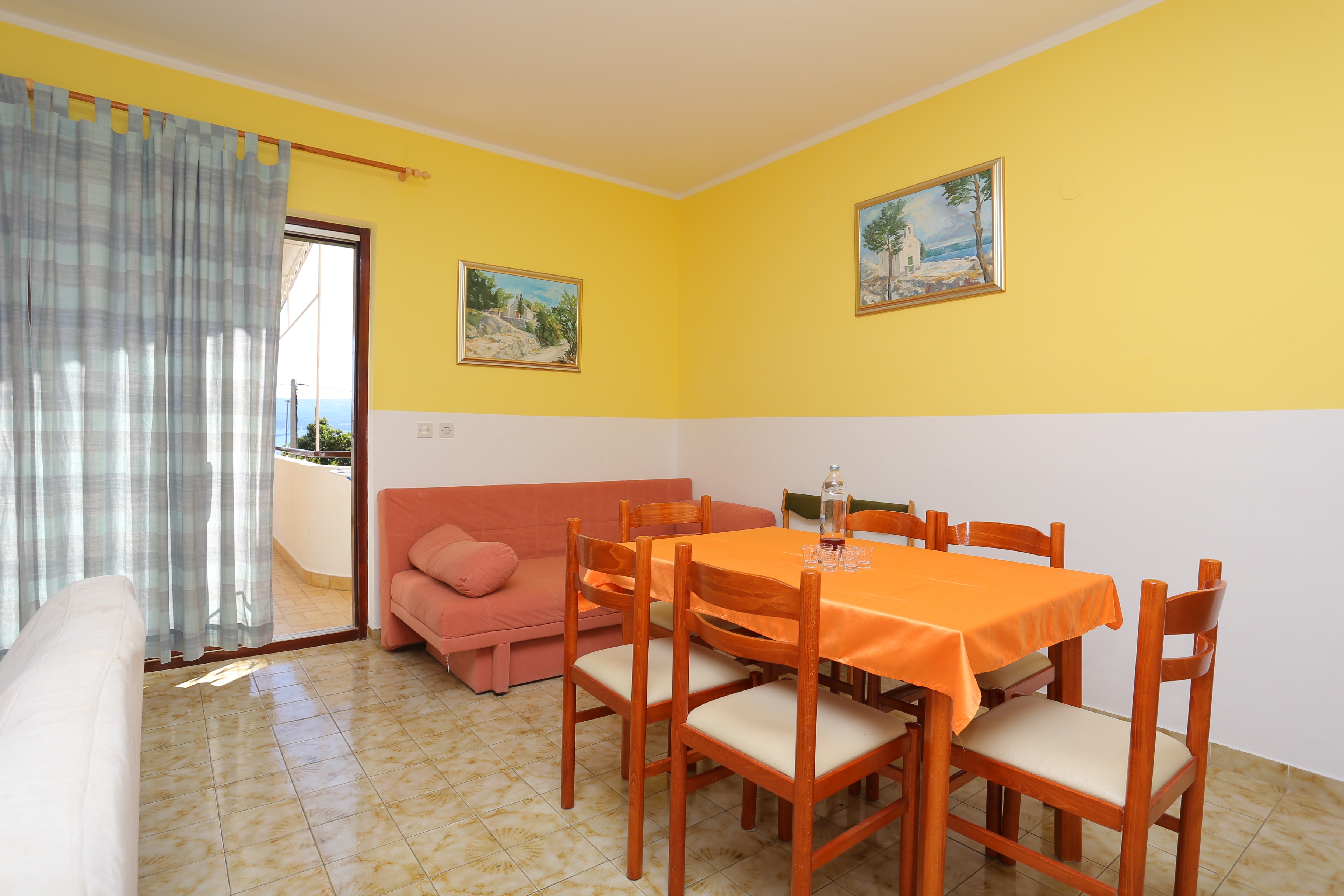 Apartment can accommodate 9 guests. Beds are situated in 3 sleeping rooms, within 77m2. Guests can use a private terrace to enjoy the warm summer evenings. The apartment offers the sea view. Food can be prepared using barbecue which is shared with other guests too. INCLUDED IN THE PRICE: tourist tax, final cleaning, parking, internet, baby cot, iron, ironing board, hairdryer. OPTIONAL ADDITIONAL COSTS: air-conditioning (€5.00 per night), laundry (€5.00 washing), bicycle (€17.00 daily (per piece)). The availability of additional services for your chosen dates of stay, as well as their prices (if none are listed) must be checked ahead of time. Any additional services not shown in the price calculation are payable directly to the property owner and only if used by the visitor. Discounts to the base price: free day 21=19 (for reservations of 21 or more days you get 2 free days for the stay until 31122026).