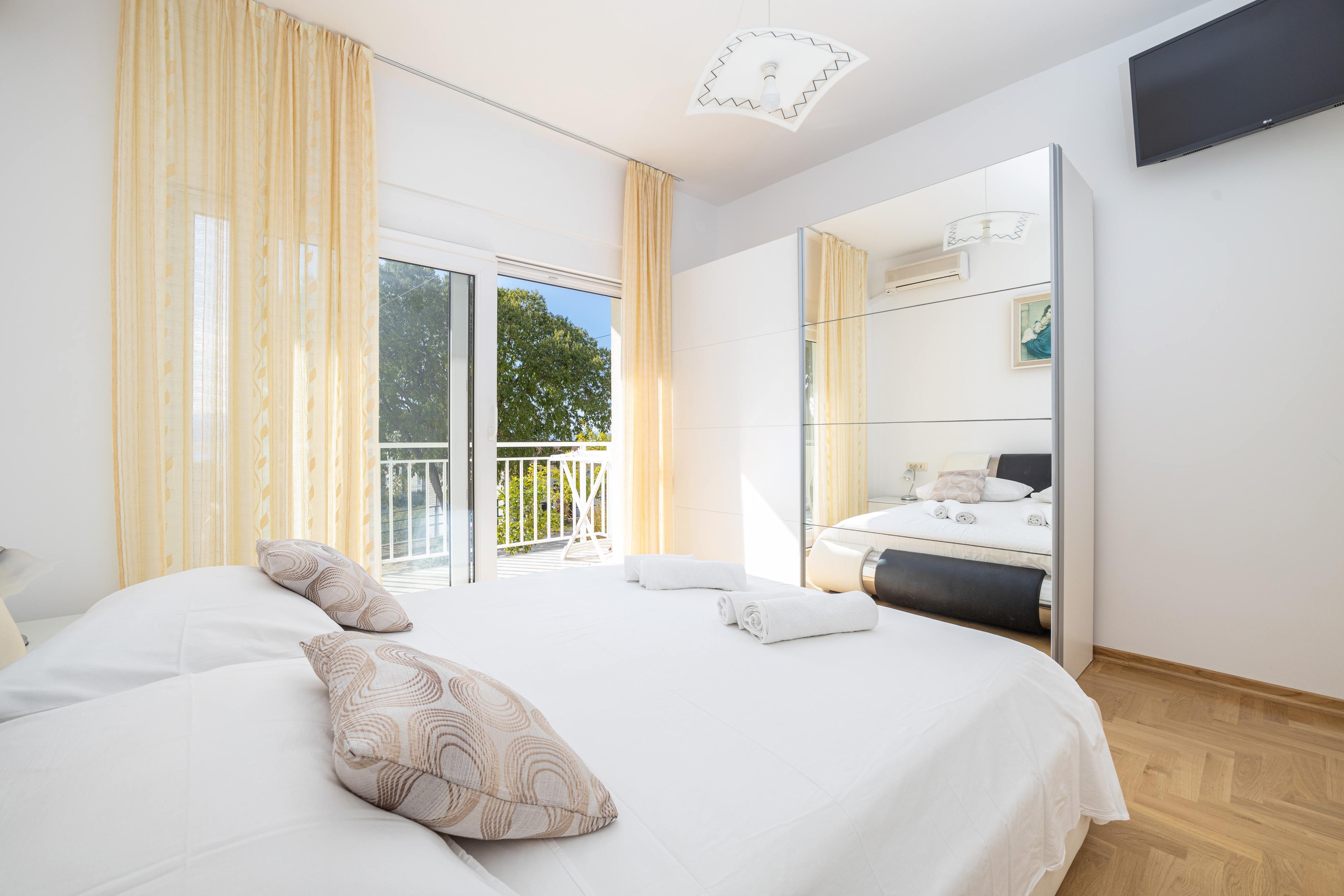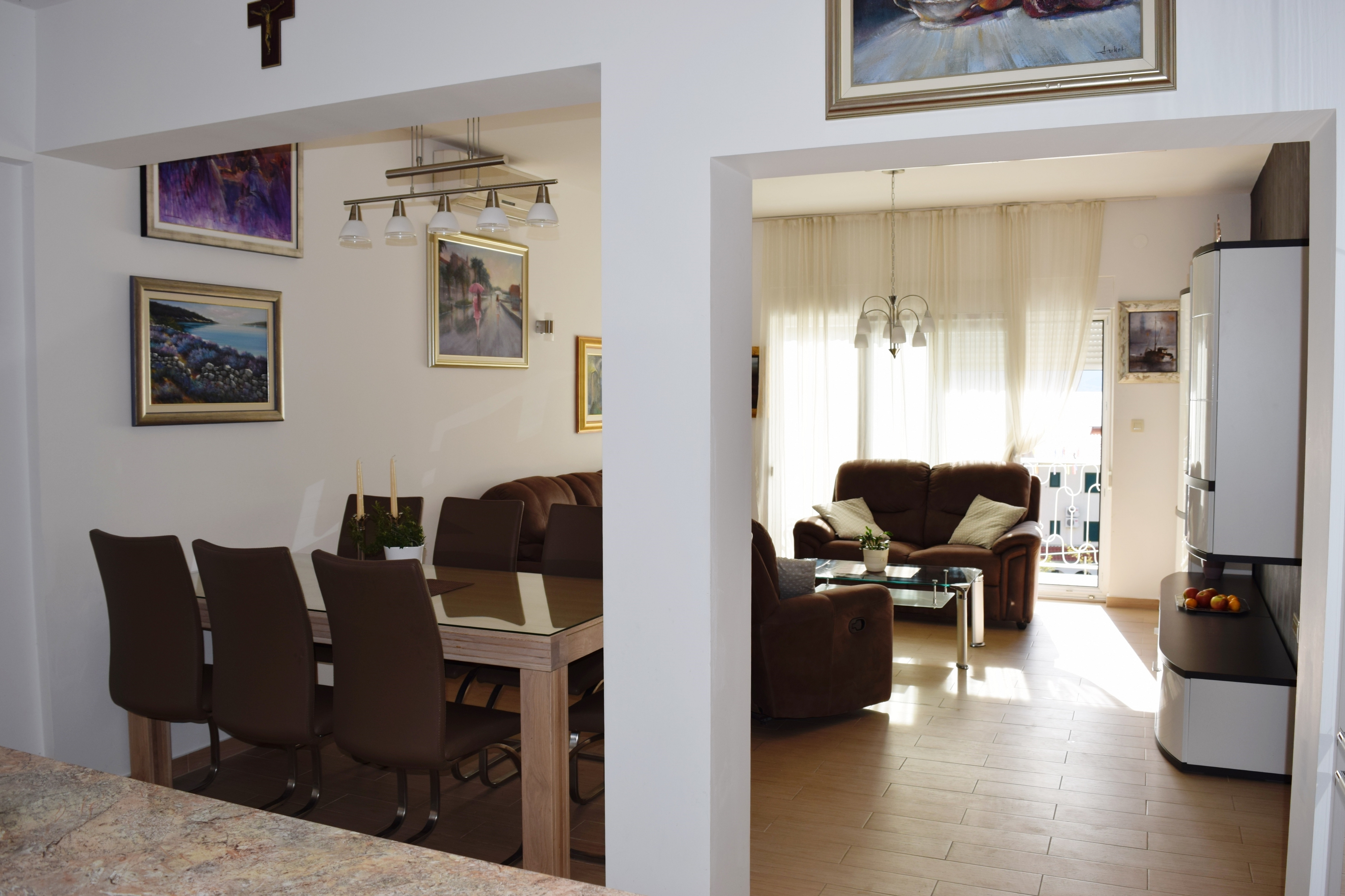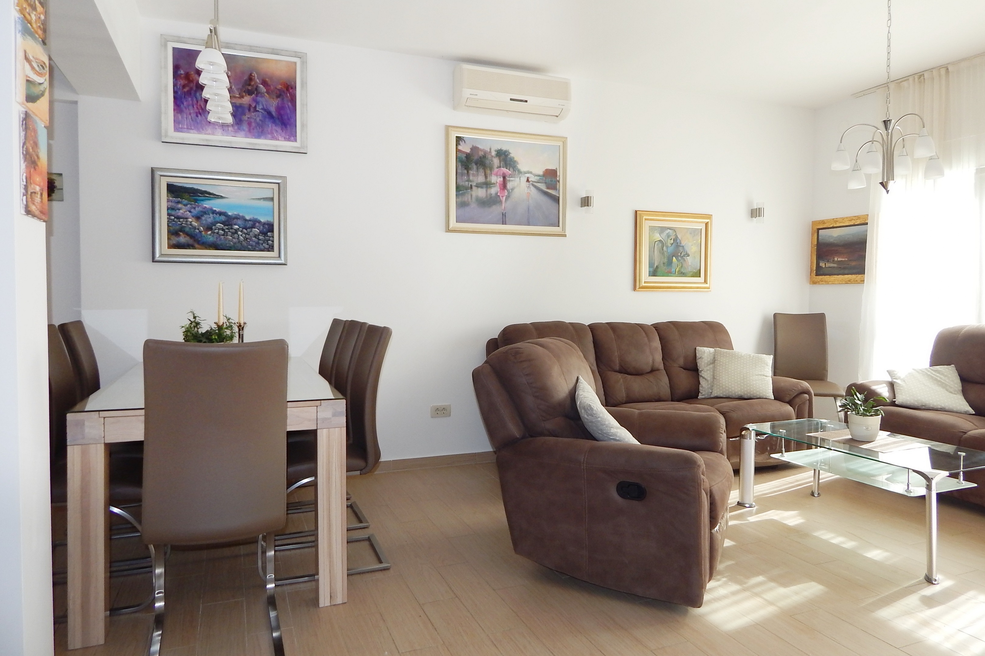 Apartment can accommodate 6 guests. Beds are situated in 2 sleeping rooms, but also in the living room, within 93m2. Guests can use a private balcony to enjoy the warm summer evenings. The apartment offers the sea view. Food can be prepared using barbecue which is shared with other guests too. For the booked accommodation unit the deposit is paid directly to the owner upon check-in (deposit amount is displayed on the website) INCLUDED IN THE PRICE: tourist tax, final cleaning, air-conditioning, parking, internet, hairdryer. OBLIGATORY ADDITIONAL COSTS: deposit (€200.00 one-time payment), short stay fee (surcharge depending on a number of booked nights: 30% - 1, 20% - 2, 10% - 3). The availability of additional services for your chosen dates of stay, as well as their prices (if none are listed) must be checked ahead of time. Any additional services not shown in the price calculation are payable directly to the property owner and only if used by the visitor.