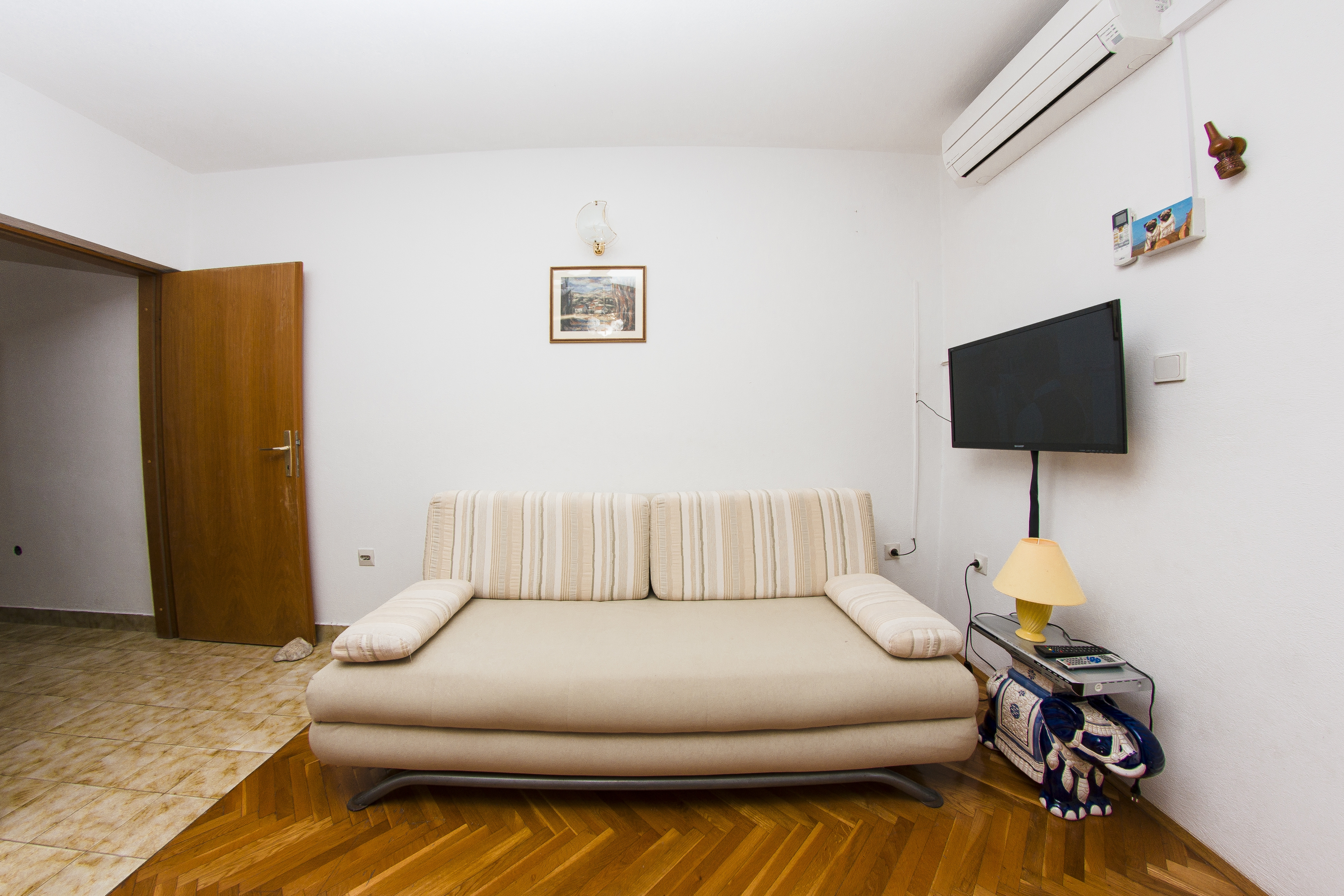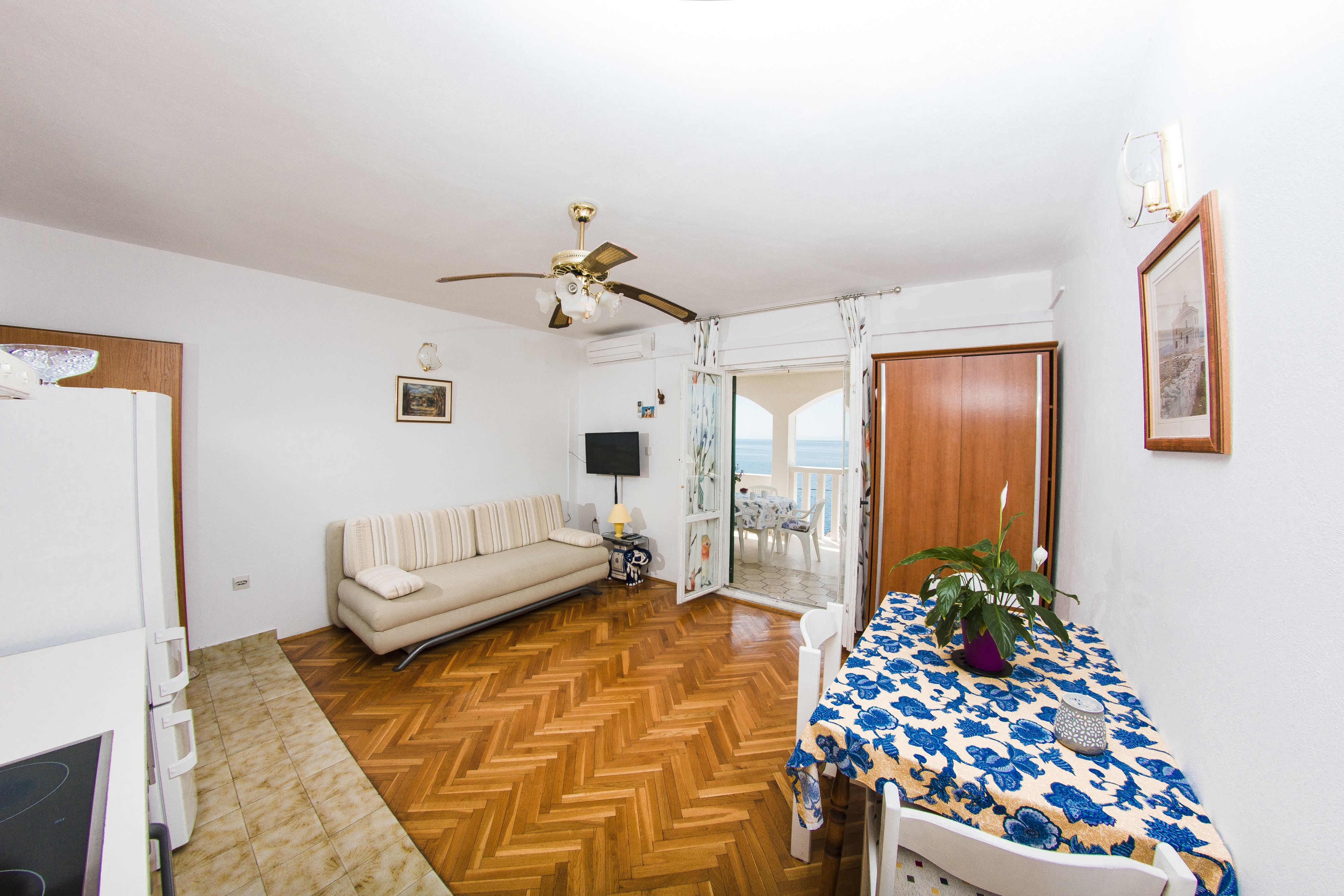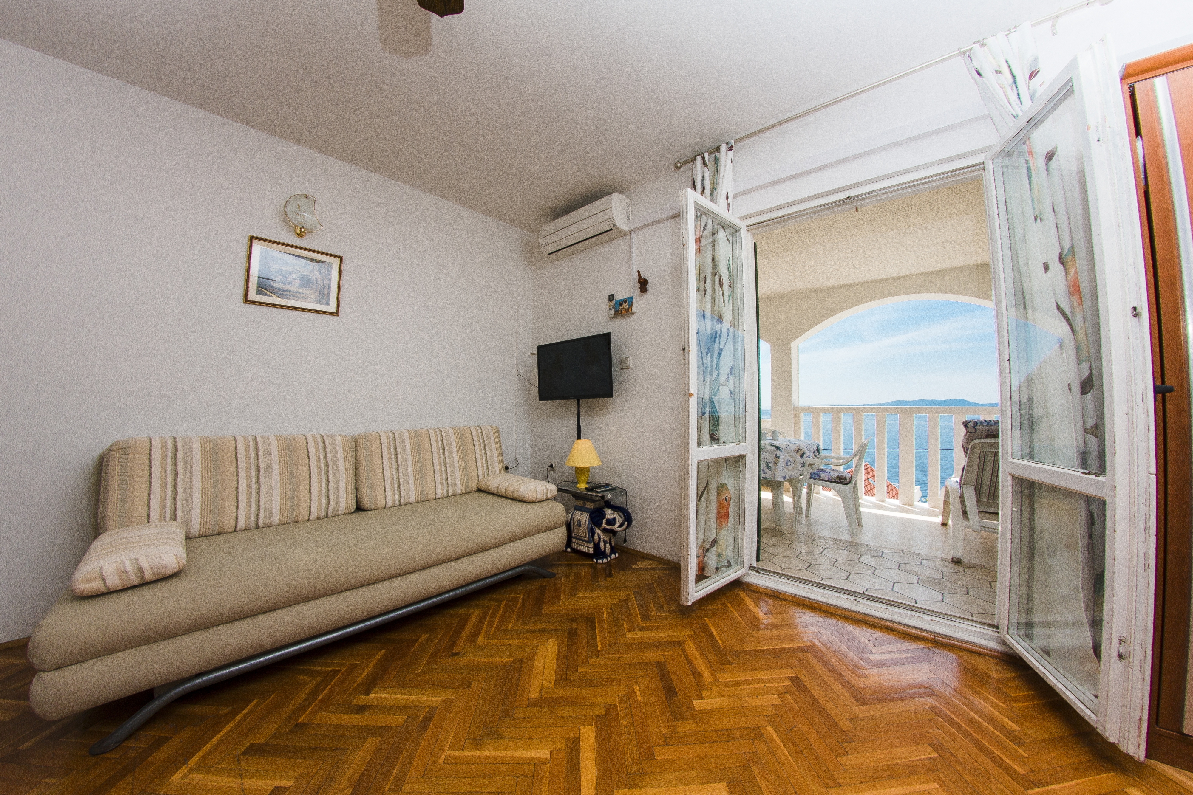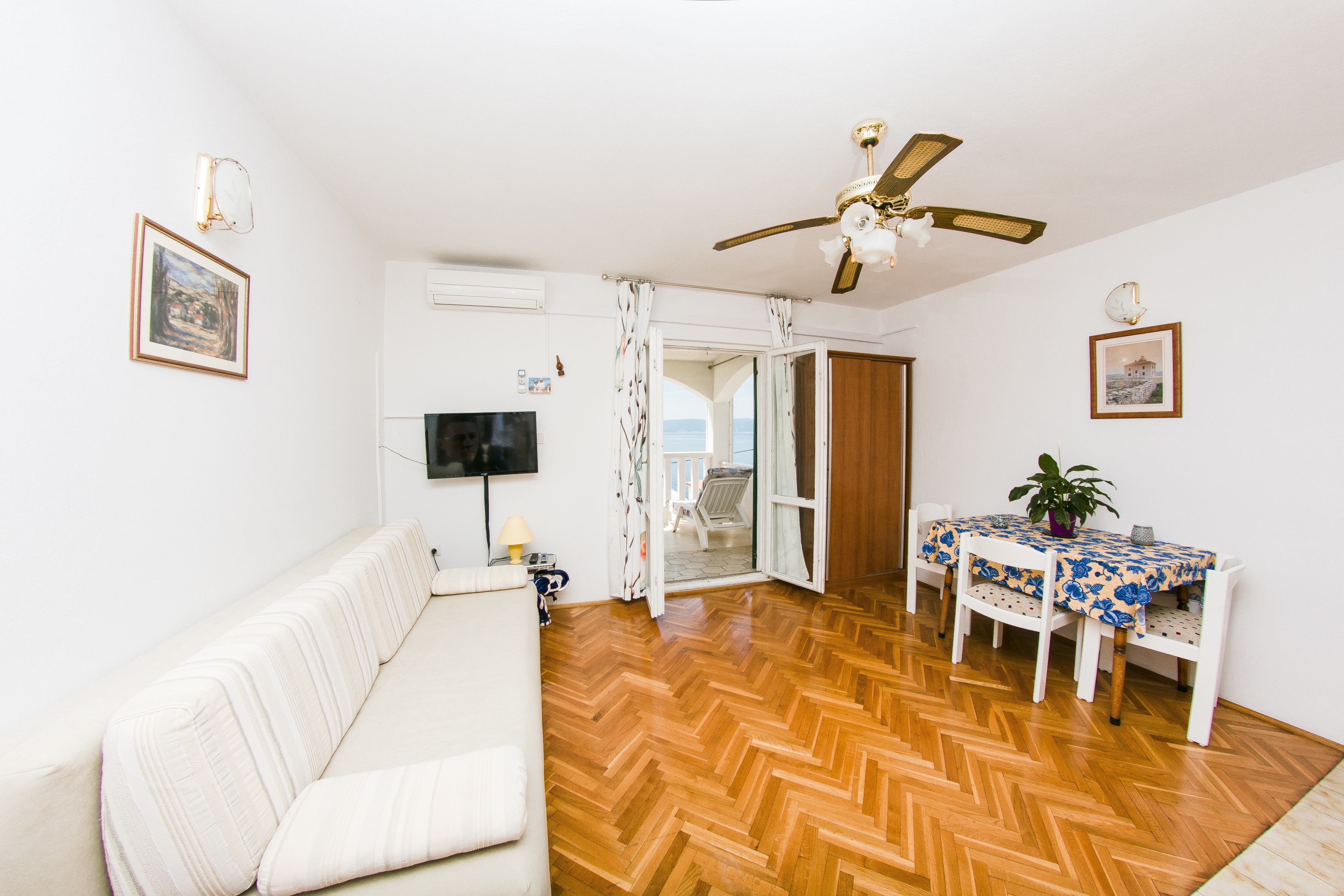 Apartment can accommodate 4 guests. Beds are situated in 1 sleeping rooms, but also in the living room, within 35m2. Guests can use a private terrace to enjoy the warm summer evenings. The apartment offers the sea view. Food can be prepared using barbecue which is shared with other guests too. INCLUDED IN THE PRICE: tourist tax, final cleaning, air-conditioning, parking, garage, internet, baby cot, iron, ironing board, hairdryer. OBLIGATORY ADDITIONAL COSTS: short stay fee (surcharge depending on a number of booked nights: 30% - 1, 20% - 2, 10% - 3). The availability of additional services for your chosen dates of stay, as well as their prices (if none are listed) must be checked ahead of time. Any additional services not shown in the price calculation are payable directly to the property owner and only if used by the visitor.