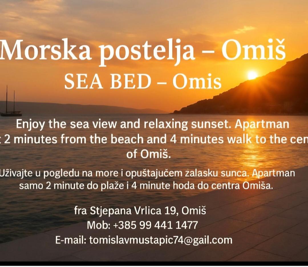 Situated in Omiš, 200 metres from Luka Beach and 25 km from Diocletians Palace, Morska postelja - Sea bed offers air conditioning. This beachfront property offers access to a patio and free WiFi. Outdoor seating is also available at the apartment.