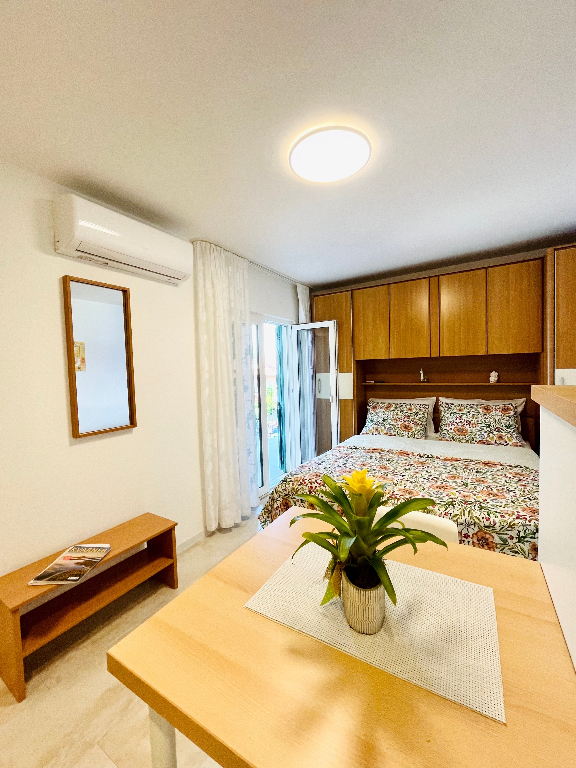 Studio flat can accommodate 2 guests. Beds are situated in 1 sleeping rooms, within 21m2. Guests can use a private terrace to enjoy the warm summer evenings. The studio offers the sea view. INCLUDED IN THE PRICE: tourist tax, final cleaning, air-conditioning, parking, internet, laundry, iron, ironing board, hairdryer. The availability of additional services for your chosen dates of stay, as well as their prices (if none are listed) must be checked ahead of time. Any additional services not shown in the price calculation are payable directly to the property owner and only if used by the visitor.