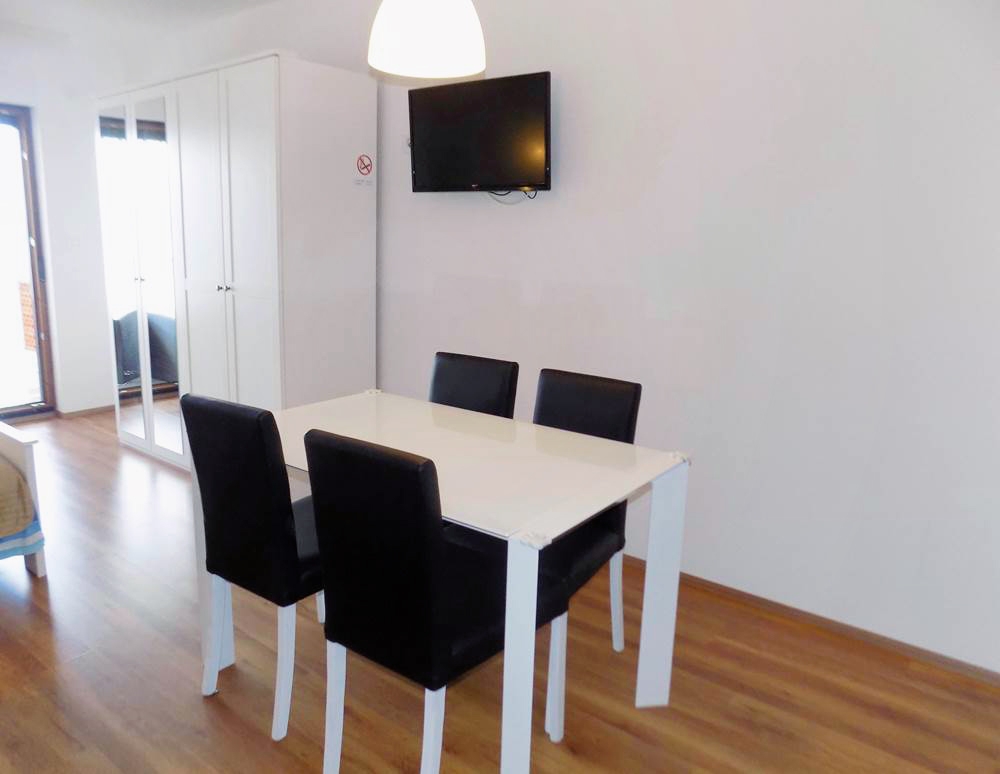 Studio flat can accommodate 3 guests. Beds are situated in 1 sleeping rooms, but also in the dining room, within 27m2. Guests can use a private terrace to enjoy the warm summer evenings. The studio offers the sea view. Food can be prepared using barbecue which is shared with other guests too. INCLUDED IN THE PRICE: tourist tax, final cleaning, parking, internet, iron, ironing board, hairdryer, portable barbecue. OBLIGATORY ADDITIONAL COSTS: short stay fee (surcharge depending on a number of booked nights: 30% - 1, 20% - 2, 10% - 3). OPTIONAL ADDITIONAL COSTS: air-conditioning (€7.00 per night). The availability of additional services for your chosen dates of stay, as well as their prices (if none are listed) must be checked ahead of time. Any additional services not shown in the price calculation are payable directly to the property owner and only if used by the visitor.