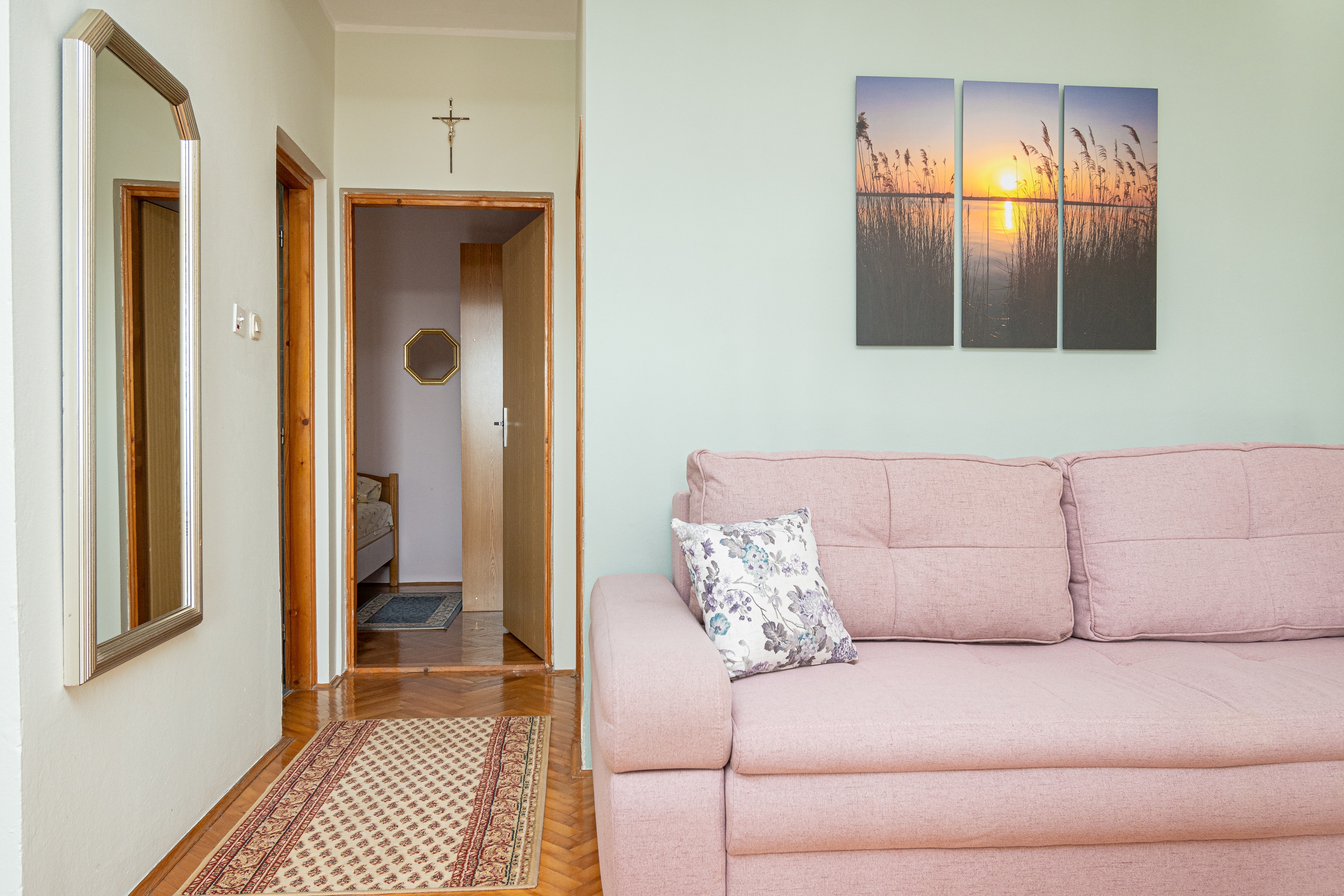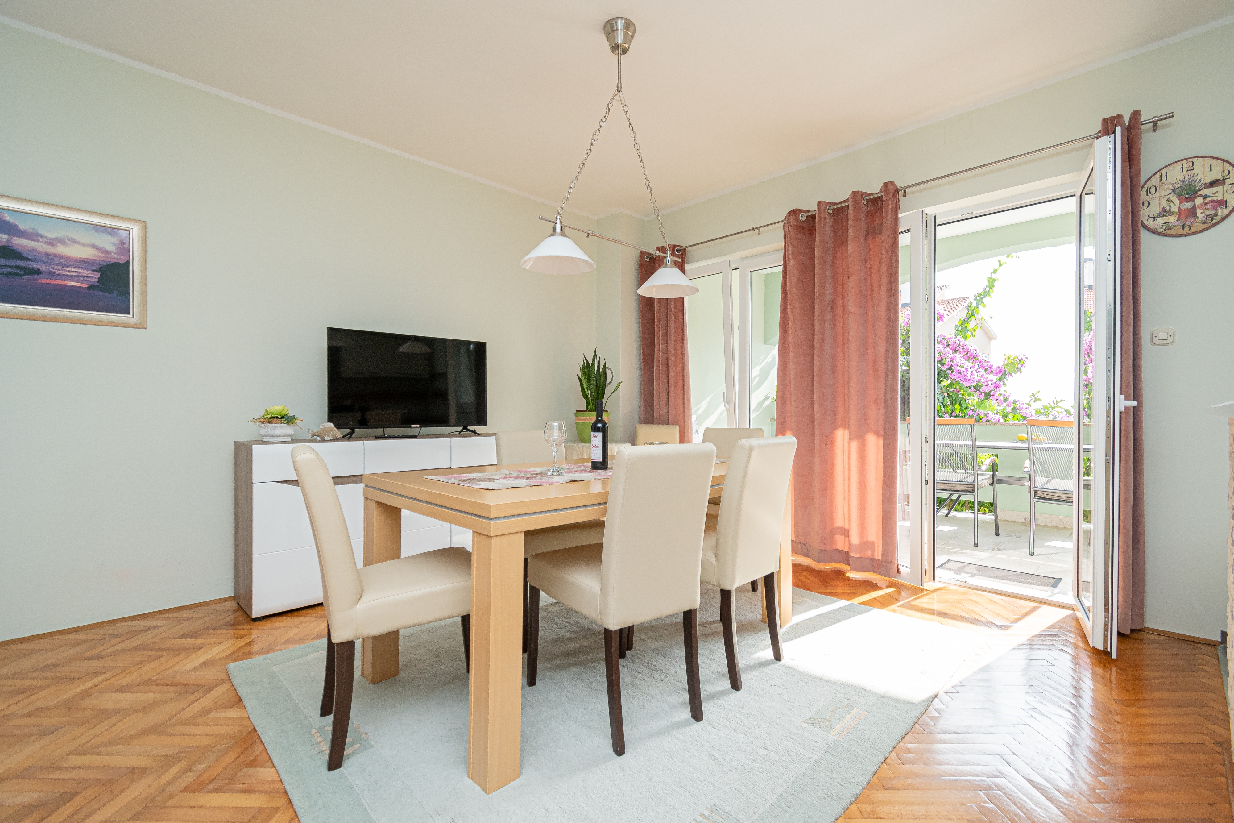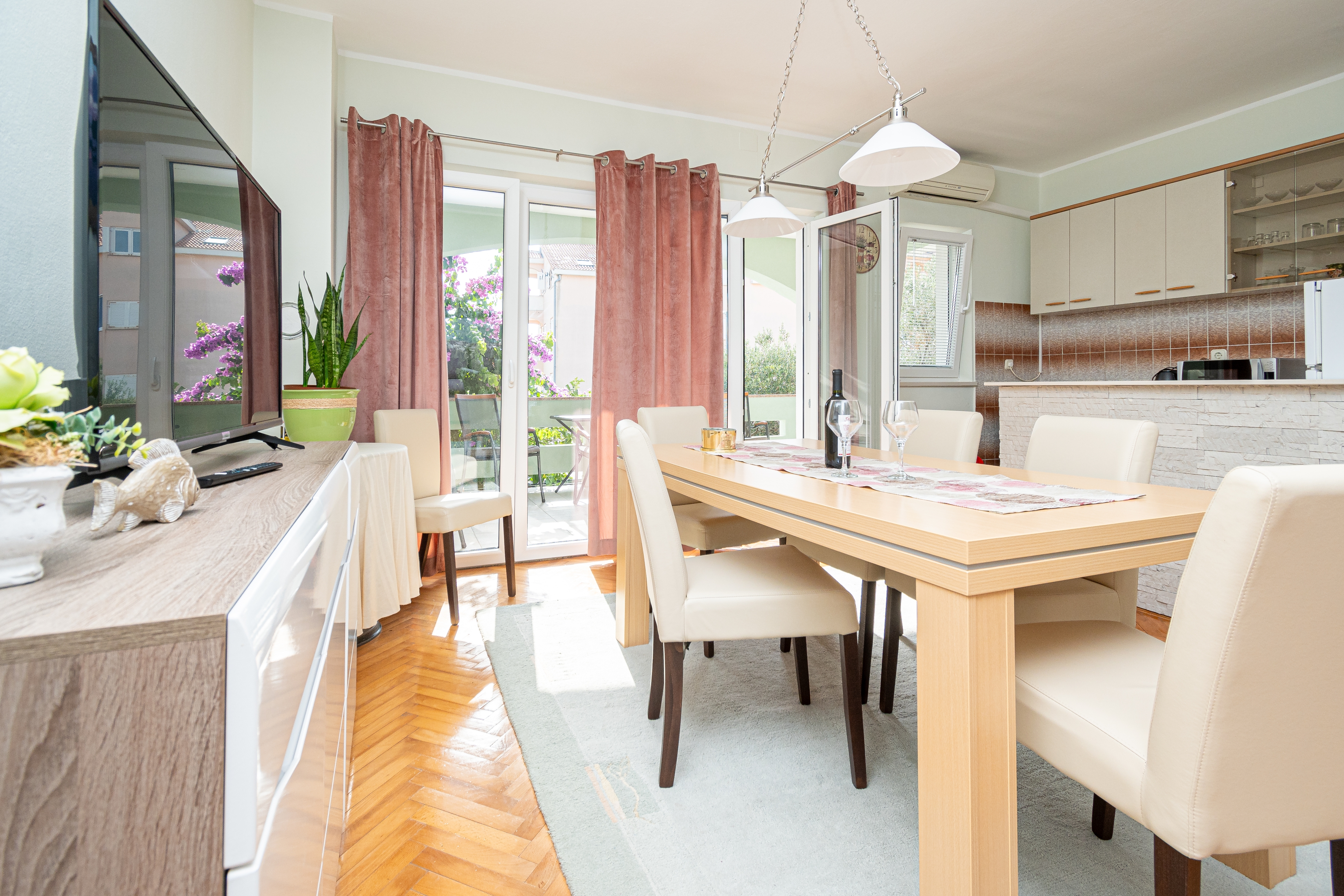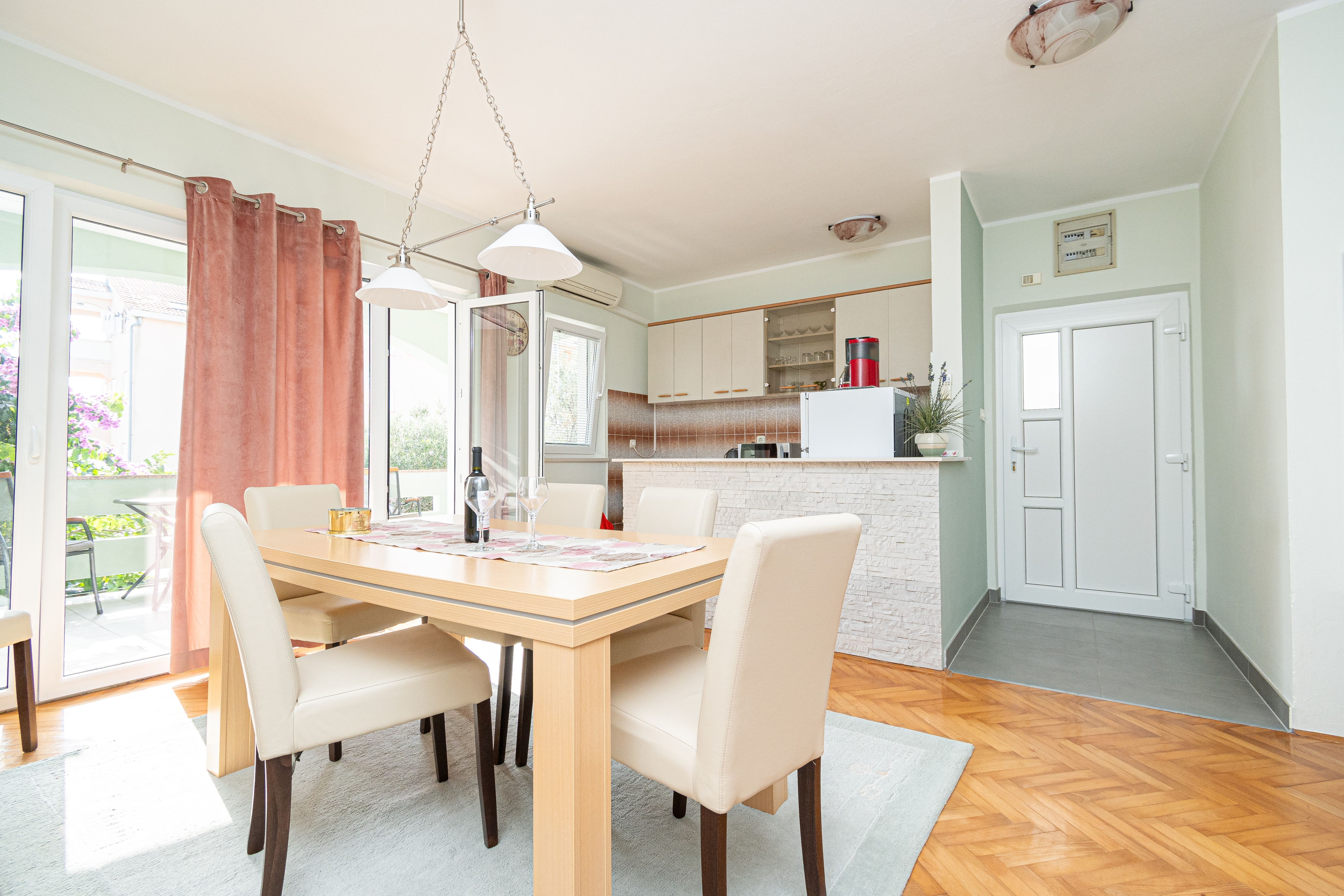 Apartment can accommodate 6 guests. Beds are situated in 2 sleeping rooms, but also in the living room, within 49m2. Guests can use a private terrace to enjoy the warm summer evenings. For full enjoyment and relaxation there is a private barbecue for this accommodation guests only. For the booked accommodation unit the deposit is paid directly to the owner upon check-in (deposit amount is displayed on the website) INCLUDED IN THE PRICE: tourist tax, final cleaning, air-conditioning, parking, internet, iron, ironing board, hairdryer. OBLIGATORY ADDITIONAL COSTS: deposit (€200.00 one-time payment). The availability of additional services for your chosen dates of stay, as well as their prices (if none are listed) must be checked ahead of time. Any additional services not shown in the price calculation are payable directly to the property owner and only if used by the visitor.