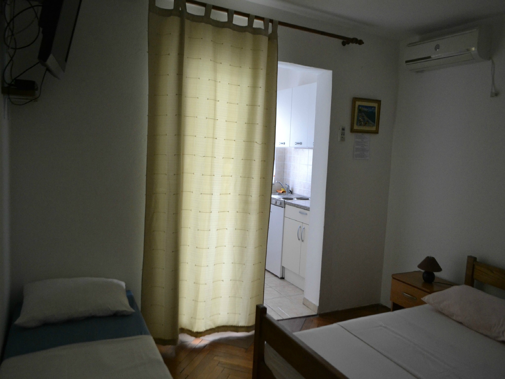 Studio flat can accommodate 3 guests. Beds are situated in 1 sleeping rooms, within 18m2. Guests can use a private terrace to enjoy the warm summer evenings. The studio offers the sea view. Food can be prepared using barbecue which is shared with other guests too. This accommodation unit welcomes pets at an additional charge. INCLUDED IN THE PRICE: tourist tax, final cleaning, air-conditioning, parking, internet, laundry, boat, baby cot, hairdryer. OBLIGATORY ADDITIONAL COSTS: short stay fee (surcharge depending on a number of booked nights: 30% - 1, 20% - 2, 10% - 3). OPTIONAL ADDITIONAL COSTS: boat mooring (€10.00 per night), pets (€5.00 per night). The availability of additional services for your chosen dates of stay, as well as their prices (if none are listed) must be checked ahead of time. Any additional services not shown in the price calculation are payable directly to the property owner and only if used by the visitor.