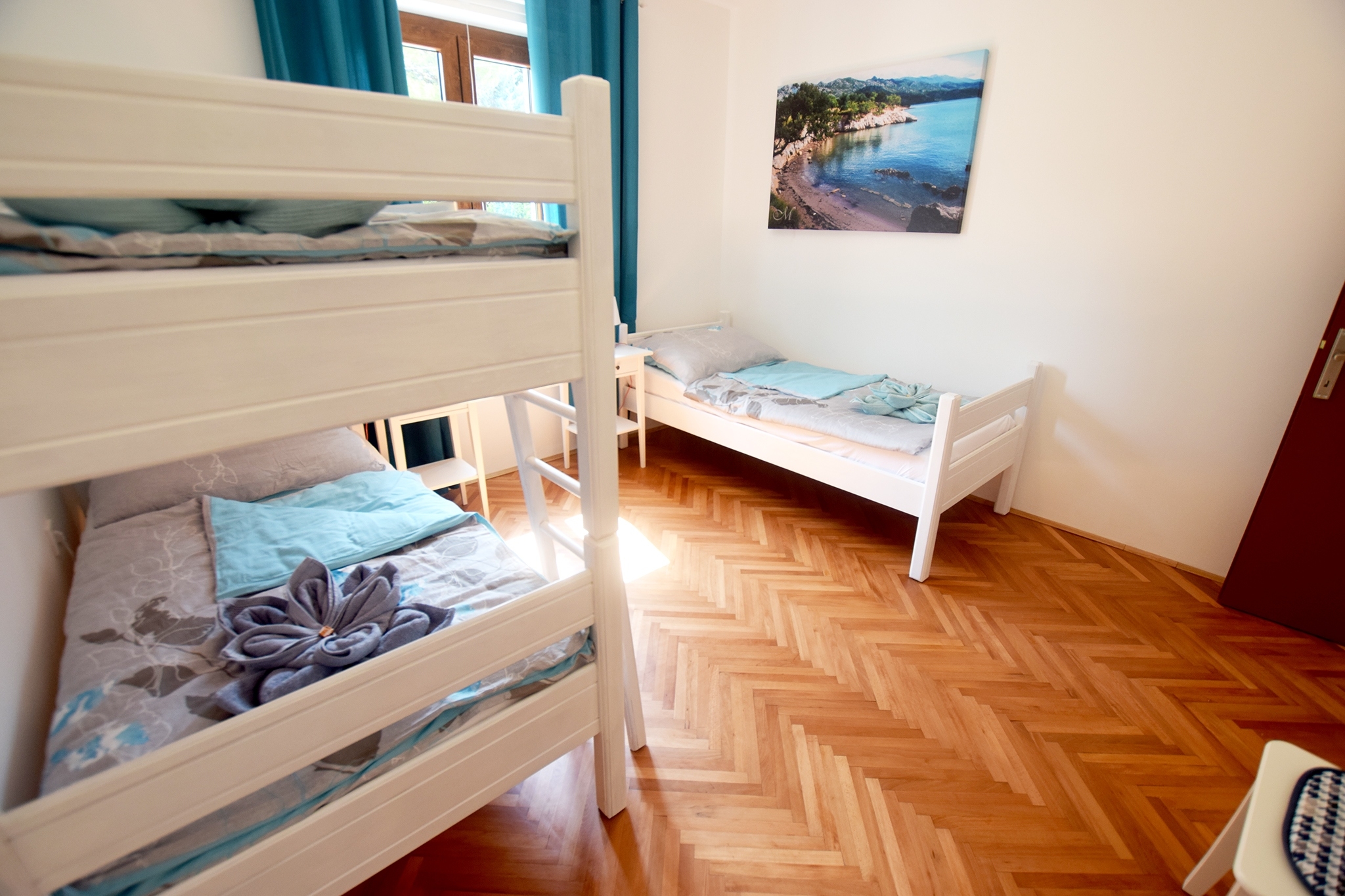 House can accommodate 7 guests. Beds are situated in 3 sleeping rooms, within 82m2. Guests can use a private terrace to enjoy the warm summer evenings. For full enjoyment and relaxation there is a private barbecue for this accommodation guests only. INCLUDED IN THE PRICE: tourist tax, final cleaning, air-conditioning, parking, internet, baby cot, iron, hairdryer. OBLIGATORY ADDITIONAL COSTS: short stay fee (surcharge depending on a number of booked nights: 30% - 1, 20% - 2, 10% - 3). OPTIONAL ADDITIONAL COSTS: laundry (€5.00 washing). The availability of additional services for your chosen dates of stay, as well as their prices (if none are listed) must be checked ahead of time. Any additional services not shown in the price calculation are payable directly to the property owner and only if used by the visitor. Discounts to the base price: free day 14=13 (for reservations of 14 or more days you get one free day for the stay until 31122026).