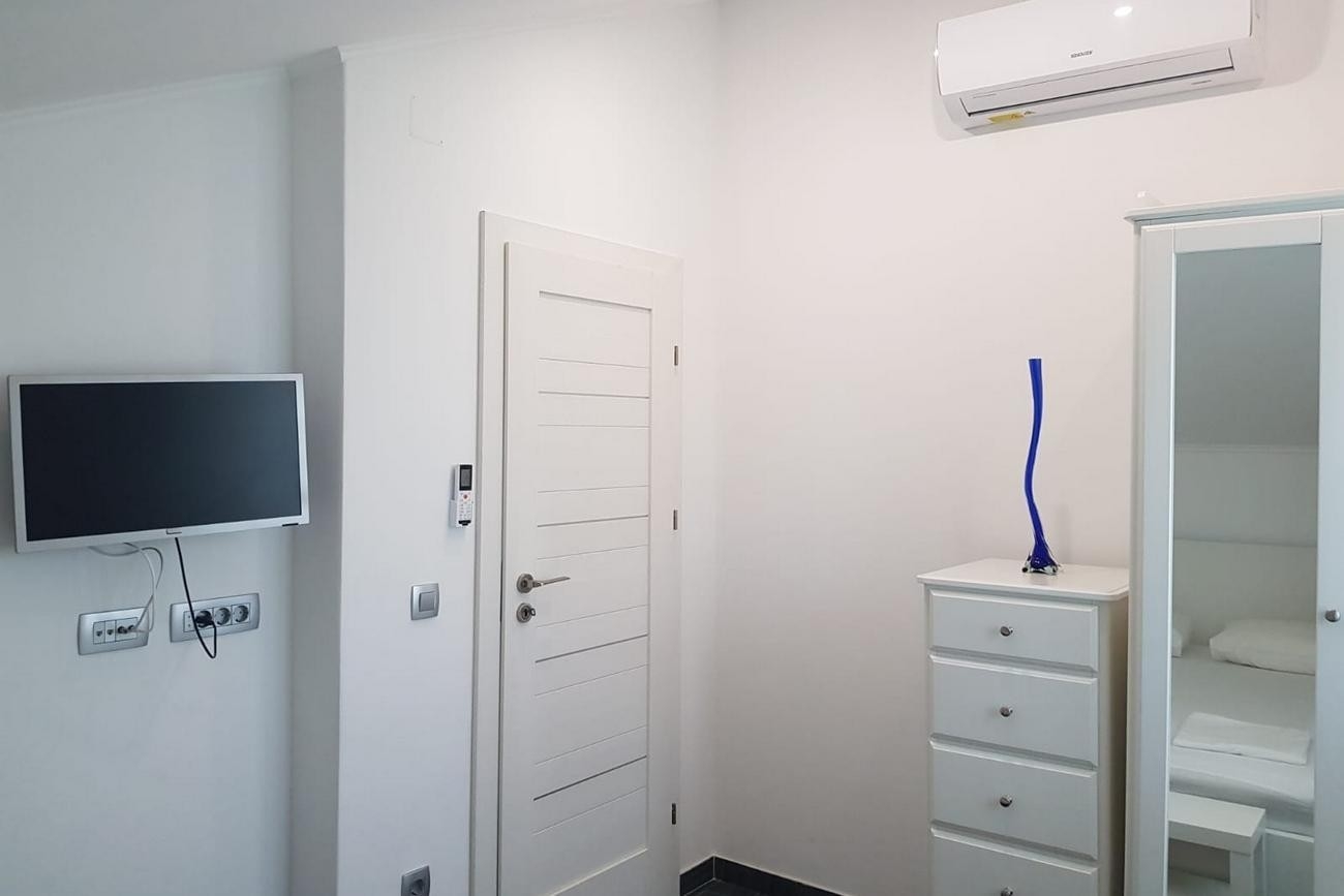 Apartment can accommodate 2 guests. Beds are situated in 1 sleeping rooms, within 30m2. Guests can use a private terrace to enjoy the warm summer evenings. INCLUDED IN THE PRICE: tourist tax, final cleaning, air-conditioning, parking, internet, baby cot, iron, ironing board, hairdryer, 2 beds for children (included in the price). The availability of additional services for your chosen dates of stay, as well as their prices (if none are listed) must be checked ahead of time. Any additional services not shown in the price calculation are payable directly to the property owner and only if used by the visitor.