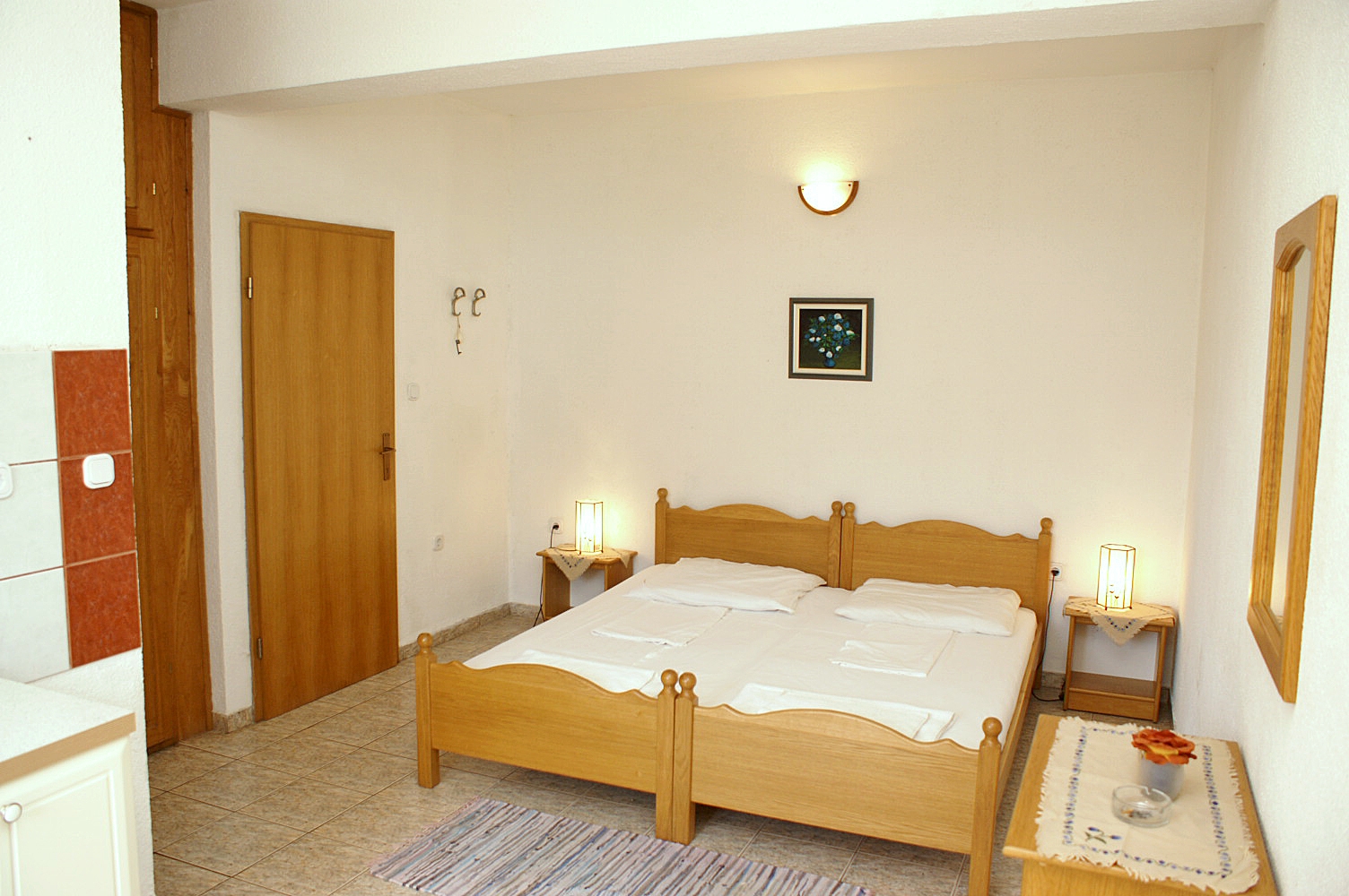 Studio flat can accommodate 2 guests. Beds are situated in 1 sleeping rooms, within 20m2. Guests can use a private balcony to enjoy the warm summer evenings. Food can be prepared using barbecue which is shared with other guests too. This accommodation unit welcomes pets at an additional charge. INCLUDED IN THE PRICE: tourist tax, final cleaning, air-conditioning, parking, internet, baby cot, iron, ironing board, hairdryer, portable barbecue. OBLIGATORY ADDITIONAL COSTS: short stay fee (surcharge depending on a number of booked nights: 30% - 1, 20% - 2, 10% - 3). OPTIONAL ADDITIONAL COSTS: laundry (€5.00 washing), boat mooring (€3.00 per night), pets (€10.00 per night), 1 bed for children (€6.00 personnight). The availability of additional services for your chosen dates of stay, as well as their prices (if none are listed) must be checked ahead of time. Any additional services not shown in the price calculation are payable directly to the property owner and only if used by the visitor.