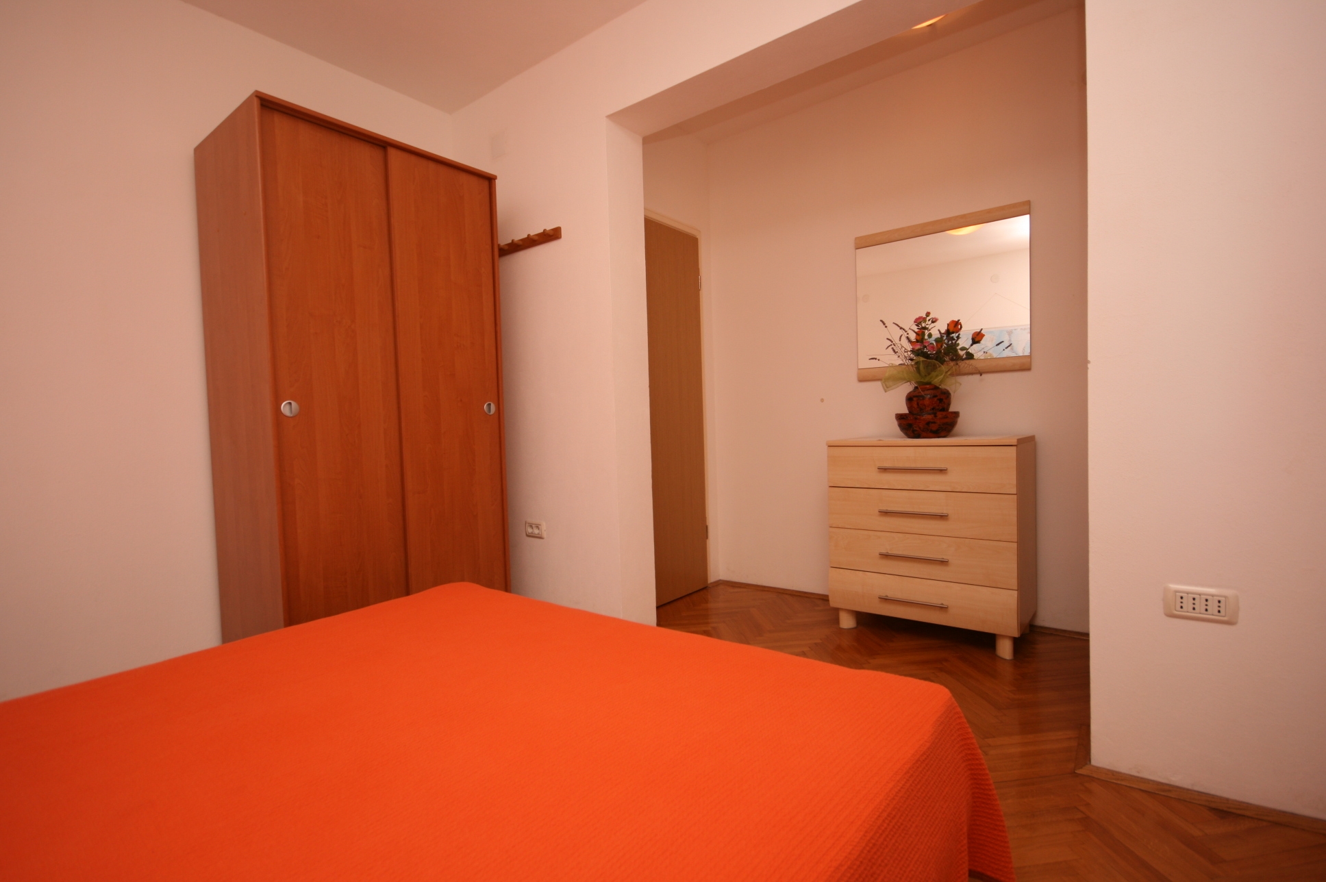 Apartment can accommodate 4 guests. Beds are situated in 1 sleeping rooms, but also in the living room, within 43m2. Guests can use a private terrace to enjoy the warm summer evenings. INCLUDED IN THE PRICE: tourist tax, final cleaning, air-conditioning, internet, iron, ironing board, hairdryer. OBLIGATORY ADDITIONAL COSTS: short stay fee (surcharge depending on a number of booked nights: 30% - 1, 20% - 2, 10% - 3). The availability of additional services for your chosen dates of stay, as well as their prices (if none are listed) must be checked ahead of time. Any additional services not shown in the price calculation are payable directly to the property owner and only if used by the visitor.