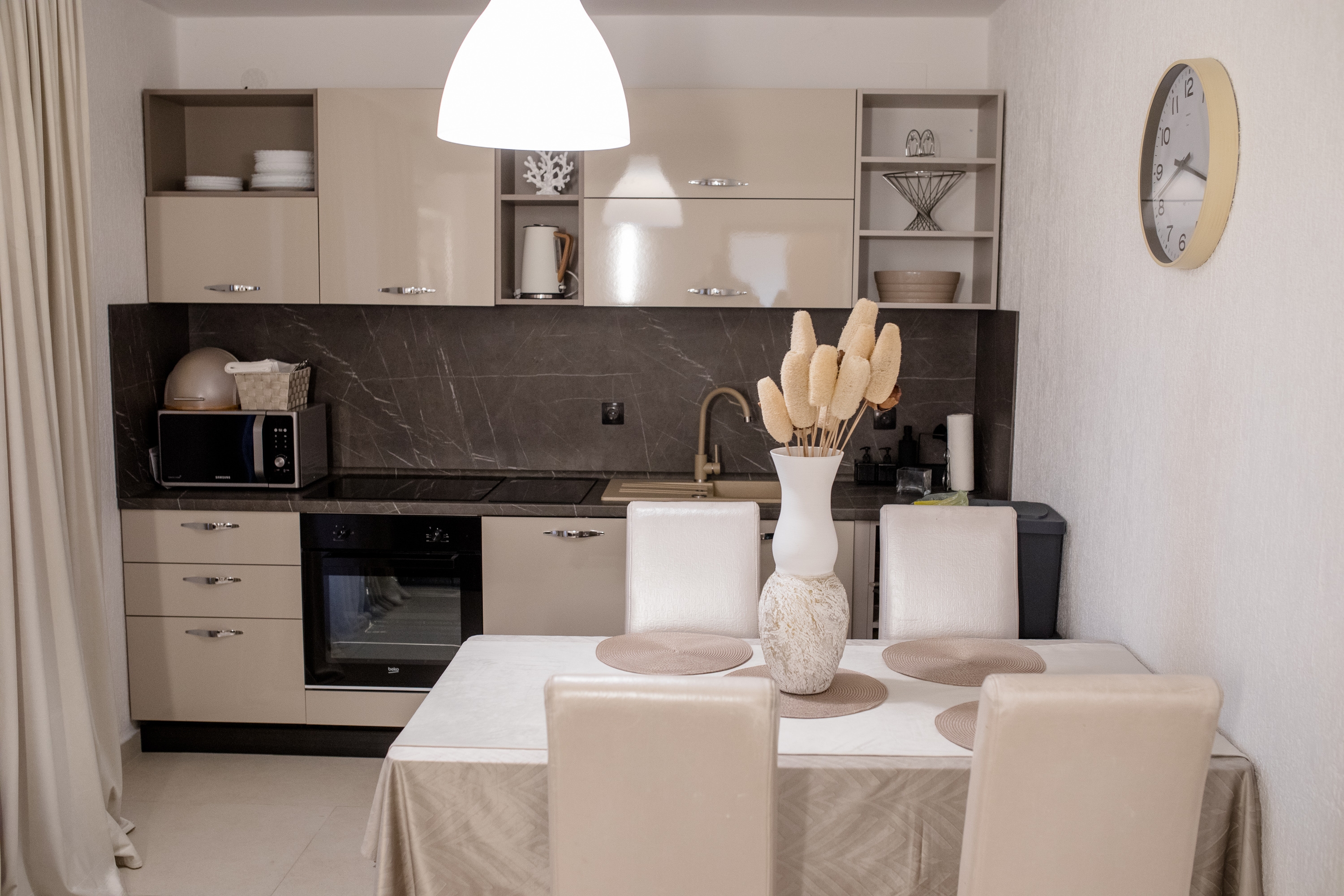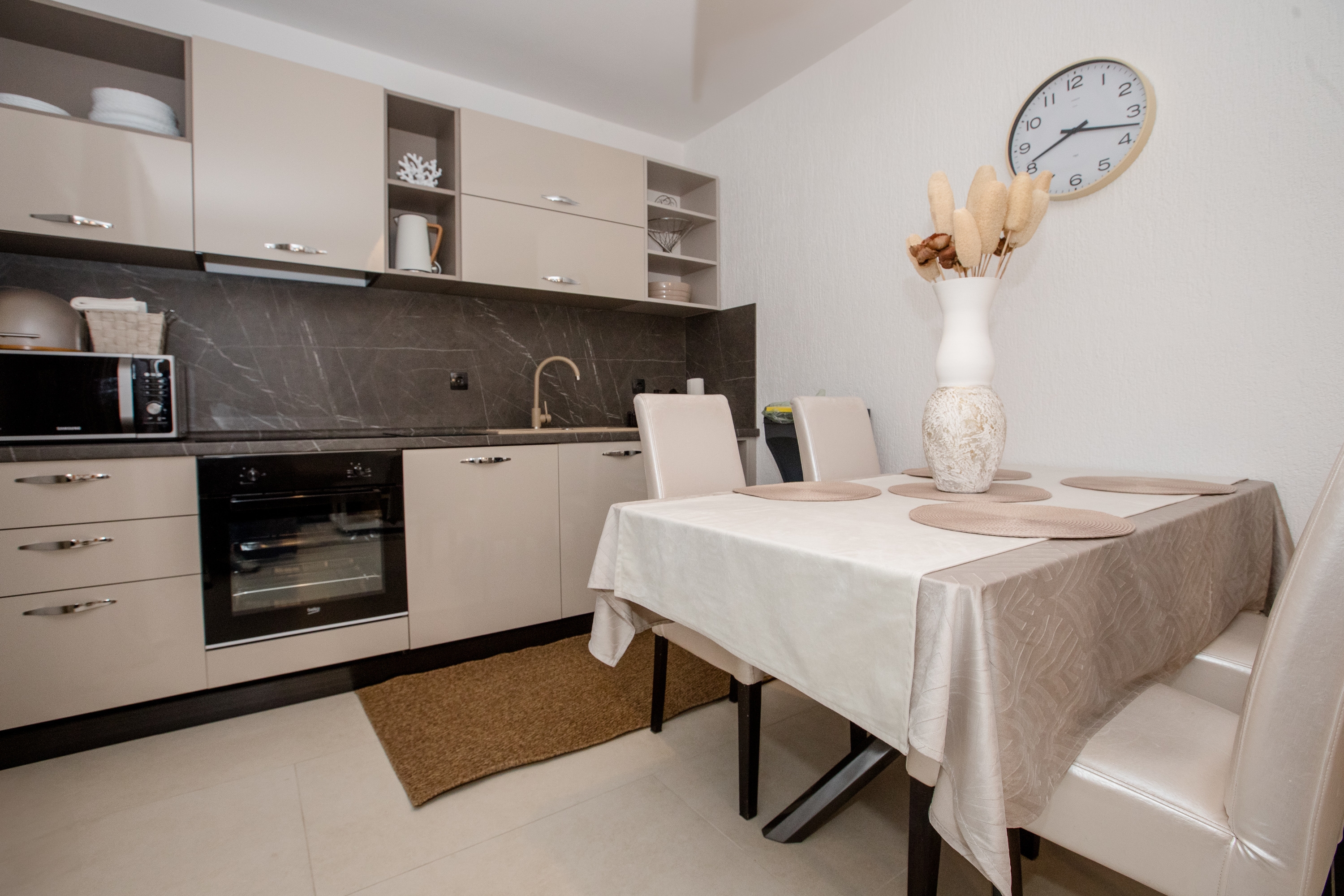 Apartment can accommodate 4 guests. Beds are situated in 2 sleeping rooms, within 51m2. Guests can use a private terrace to enjoy the warm summer evenings. Food can be prepared using barbecue which is shared with other guests too. INCLUDED IN THE PRICE: tourist tax, final cleaning, parking, internet, laundry, additional bed, iron, ironing board, hairdryer. OBLIGATORY ADDITIONAL COSTS: short stay fee (surcharge depending on a number of booked nights: 30% - 1, 20% - 2, 10% - 3). OPTIONAL ADDITIONAL COSTS: air-conditioning (€5.00 per night), boat mooring (€5.00 per night). The availability of additional services for your chosen dates of stay, as well as their prices (if none are listed) must be checked ahead of time. Any additional services not shown in the price calculation are payable directly to the property owner and only if used by the visitor.
