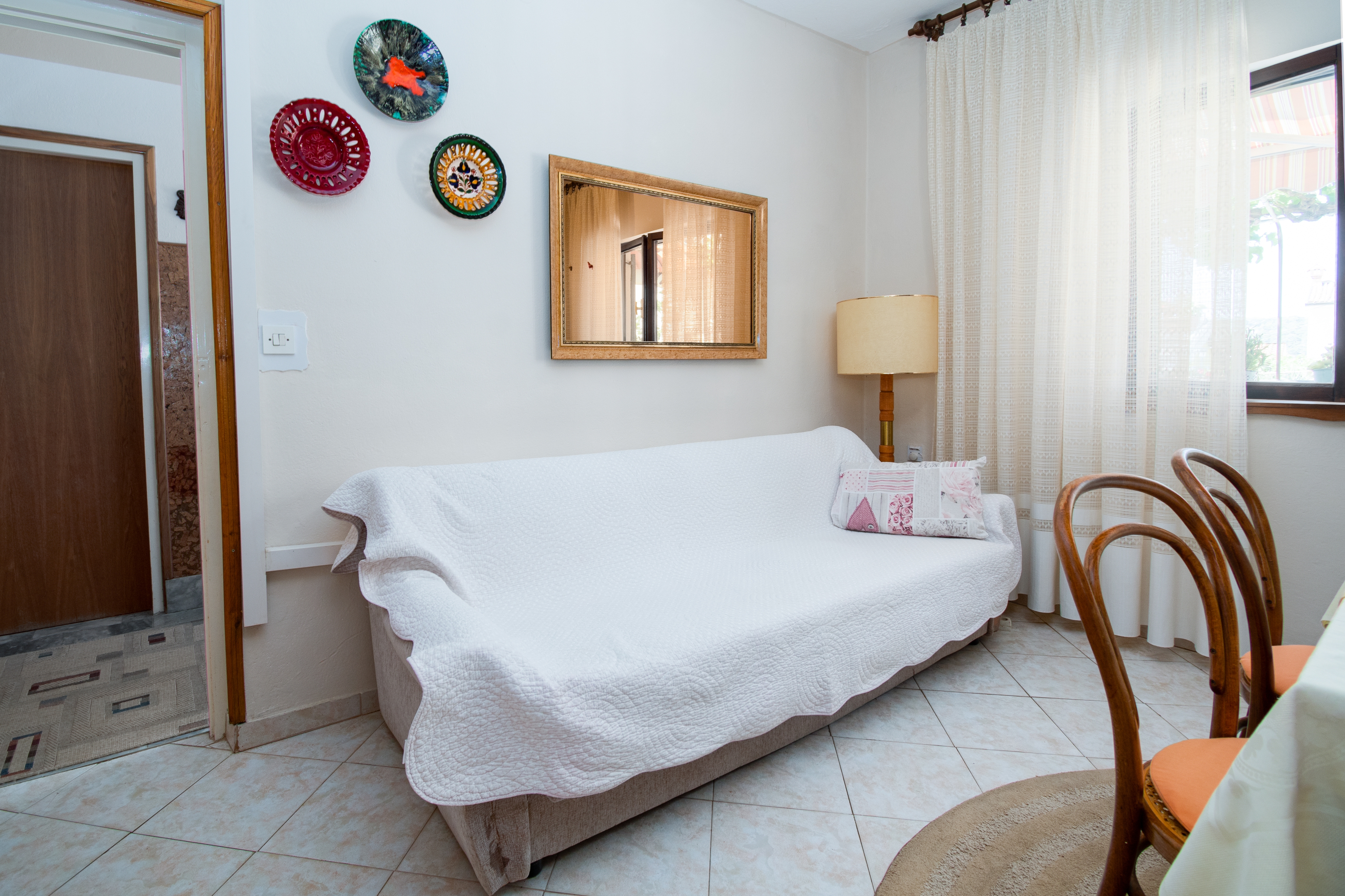 Apartment can accommodate 4 guests. Beds are situated in 2 sleeping rooms, within 46m2. Guests can use a private terrace to enjoy the warm summer evenings. Food can be prepared using barbecue which is shared with other guests too. INCLUDED IN THE PRICE: tourist tax, final cleaning, air-conditioning, parking, internet. OBLIGATORY ADDITIONAL COSTS: short stay fee (surcharge depending on a number of booked nights: 30% - 1, 20% - 2, 10% - 3). OPTIONAL ADDITIONAL COSTS: breakfast (€7.00, a 50% discount for children aged 4 to 12 years, Children up to age 4 free of charge), laundry (€3.00 washing), additional bed (€10.00 per night). The availability of additional services for your chosen dates of stay, as well as their prices (if none are listed) must be checked ahead of time. Any additional services not shown in the price calculation are payable directly to the property owner and only if used by the visitor.