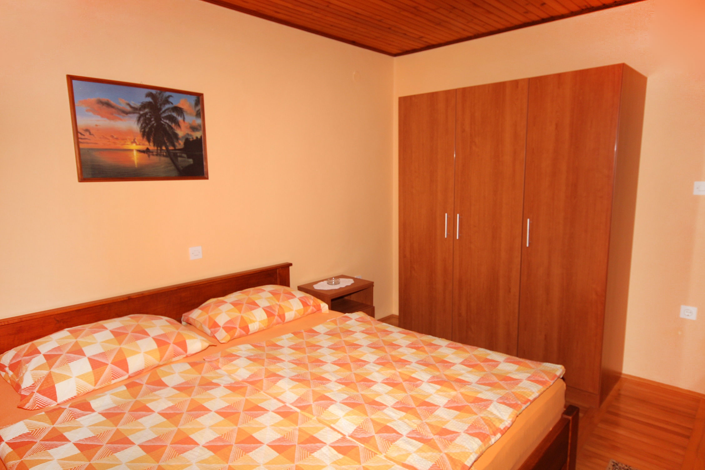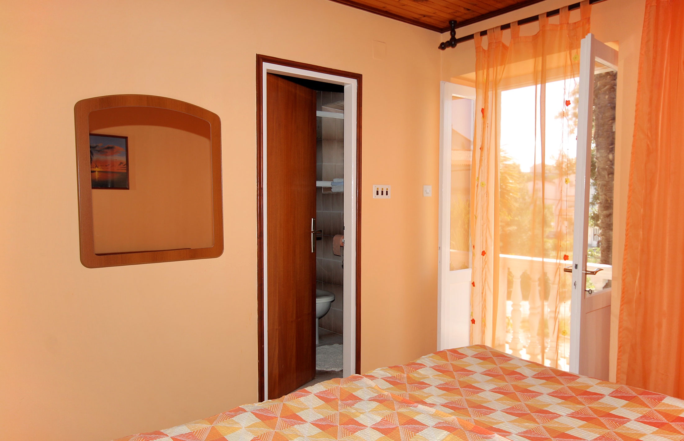 Room can accommodate 2 guests. Beds are situated in 1 sleeping rooms, within 14m2. Guests can use a private balcony to enjoy the warm summer evenings. Food can be prepared using barbecue which is shared with other guests too. Reserved accommodation unit is a room with its own bathroom and there is no usage of kitchen. INCLUDED IN THE PRICE: tourist tax, final cleaning, parking, internet, iron, ironing board, hairdryer. OBLIGATORY ADDITIONAL COSTS: short stay fee (surcharge depending on a number of booked nights: 30% - 1, 20% - 2, 10% - 3). OPTIONAL ADDITIONAL COSTS: breakfast (€15.00, a 50% discount for children aged 4 to 12 years, Children up to age 4 free of charge), air-conditioning (€5.00 per night), boat mooring (€10.00 per night). The availability of additional services for your chosen dates of stay, as well as their prices (if none are listed) must be checked ahead of time. Any additional services not shown in the price calculation are payable directly to the property owner and only if used by the visitor.