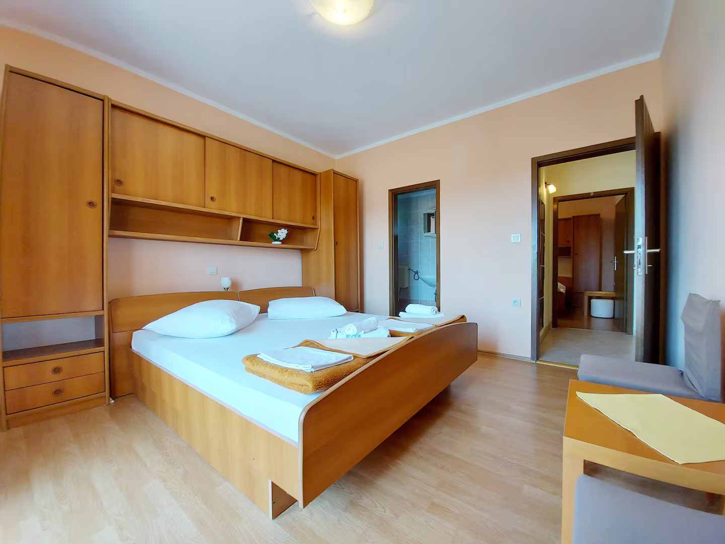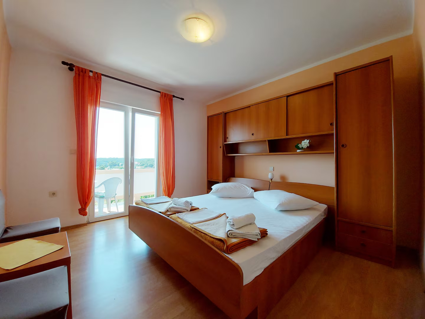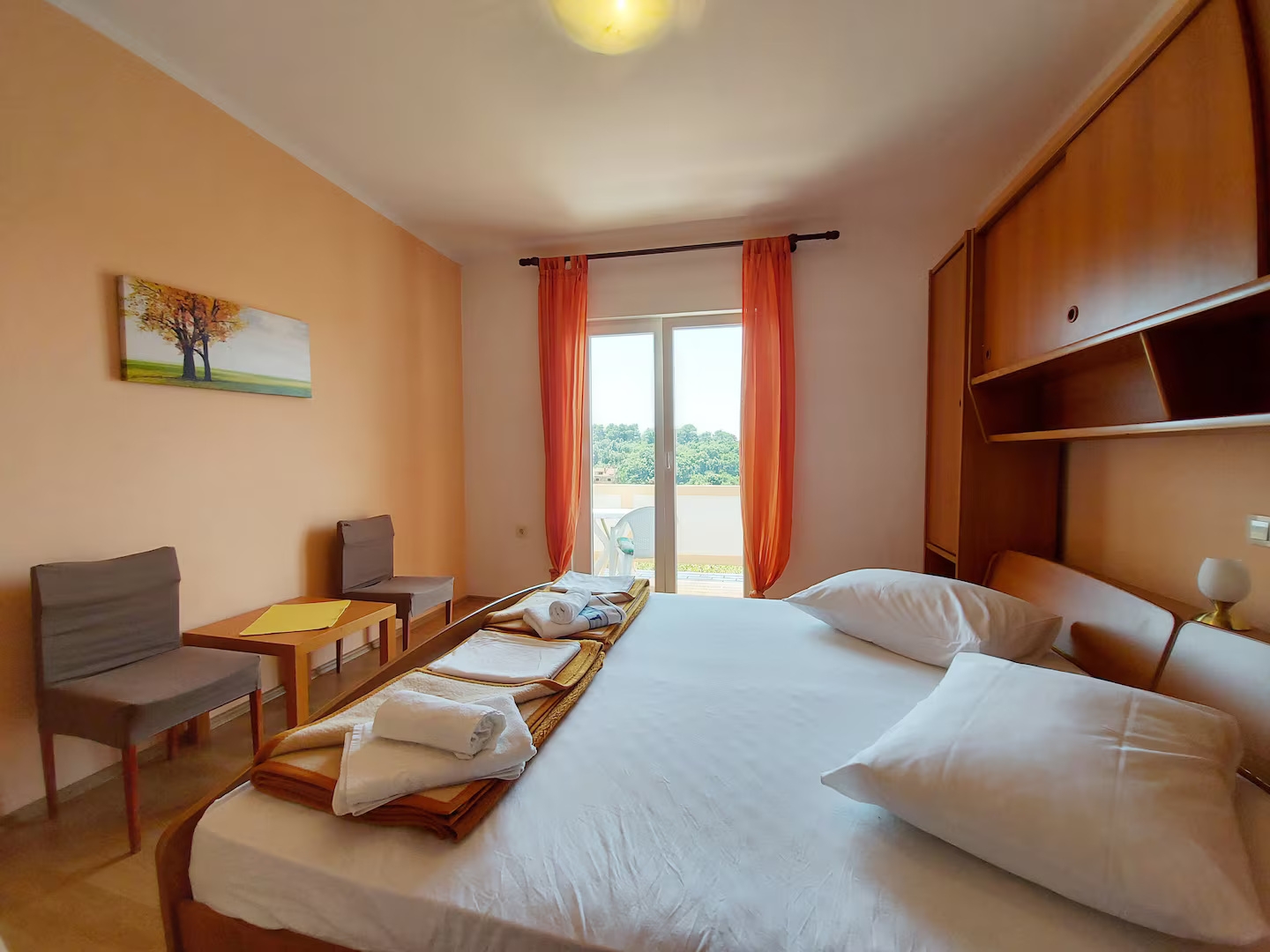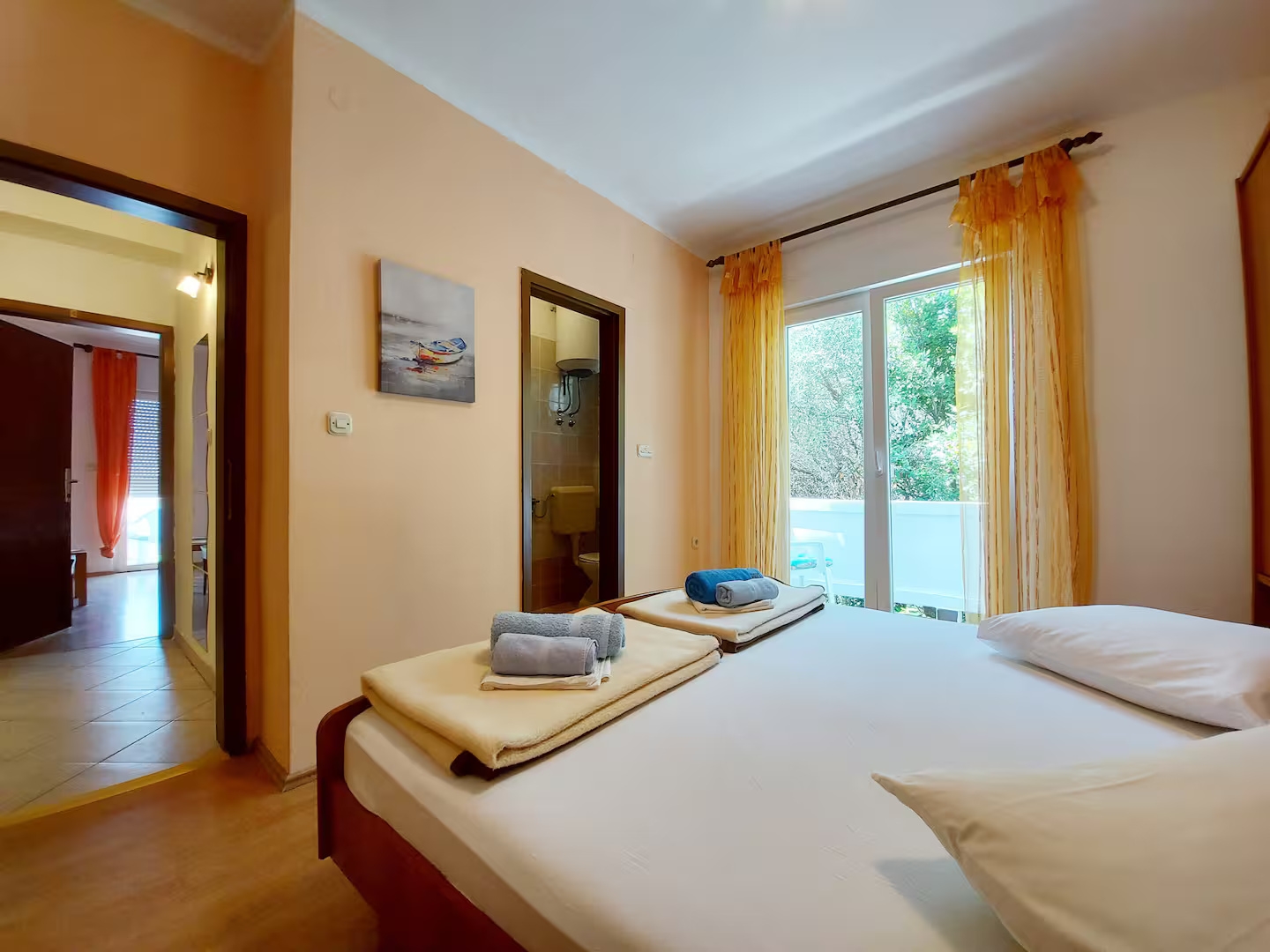 Apartment can accommodate 4 guests. Beds are situated in 2 sleeping rooms, within 60m2. Guests can use a private balcony to enjoy the warm summer evenings. Food can be prepared using barbecue which is shared with other guests too. Reserved accommodation unit has a shared terrace. INCLUDED IN THE PRICE: tourist tax, final cleaning, air-conditioning, parking, internet, laundry, baby cot, additional bed, iron, ironing board, hairdryer. OPTIONAL ADDITIONAL COSTS: boat mooring (€10.00 per night). The availability of additional services for your chosen dates of stay, as well as their prices (if none are listed) must be checked ahead of time. Any additional services not shown in the price calculation are payable directly to the property owner and only if used by the visitor. Discounts to the base price: free day 14=13 (for reservations of 14 or more days you get one free day for the stay until 31122026).