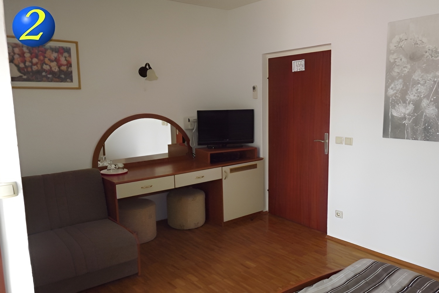 Room can accommodate 2 guests. Beds are situated in 1 sleeping rooms, within 16m2. Guests can use a private balcony to enjoy the warm summer evenings. The room offers the sea view. Reserved accommodation unit is a room with its own bathroom and there is no usage of kitchen. INCLUDED IN THE PRICE: tourist tax, breakfast, final cleaning, air-conditioning, parking, internet, boat mooring, hairdryer. OPTIONAL ADDITIONAL COSTS: laundry (€5.00 washing), additional bed (€18.90 per night). The availability of additional services for your chosen dates of stay, as well as their prices (if none are listed) must be checked ahead of time. Any additional services not shown in the price calculation are payable directly to the property owner and only if used by the visitor.