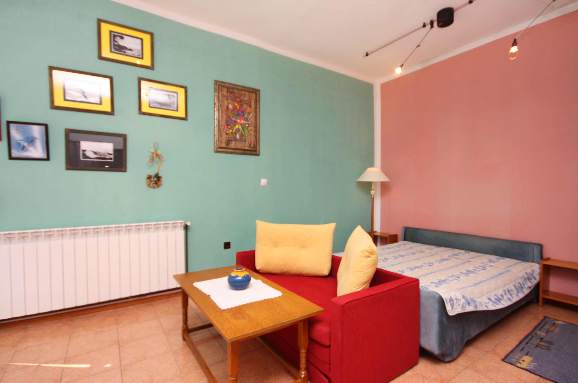 Studio flat can accommodate 2 guests. Beds are situated in 1 sleeping rooms, within 25m2. Guests can use a private terrace to enjoy the warm summer evenings. The studio offers the sea view. Food can be prepared using barbecue which is shared with other guests too. This accommodation unit welcomes pets at an additional charge. INCLUDED IN THE PRICE: tourist tax, final cleaning, central heating, parking, internet. OBLIGATORY ADDITIONAL COSTS: short stay fee (surcharge depending on a number of booked nights: 30% - 1, 20% - 2, 10% - 3). OPTIONAL ADDITIONAL COSTS: air-conditioning (€5.00 per night), laundry (€3.00 washing), boat mooring (€3.00 per night), pets (€5.00 per night). The availability of additional services for your chosen dates of stay, as well as their prices (if none are listed) must be checked ahead of time. Any additional services not shown in the price calculation are payable directly to the property owner and only if used by the visitor.
