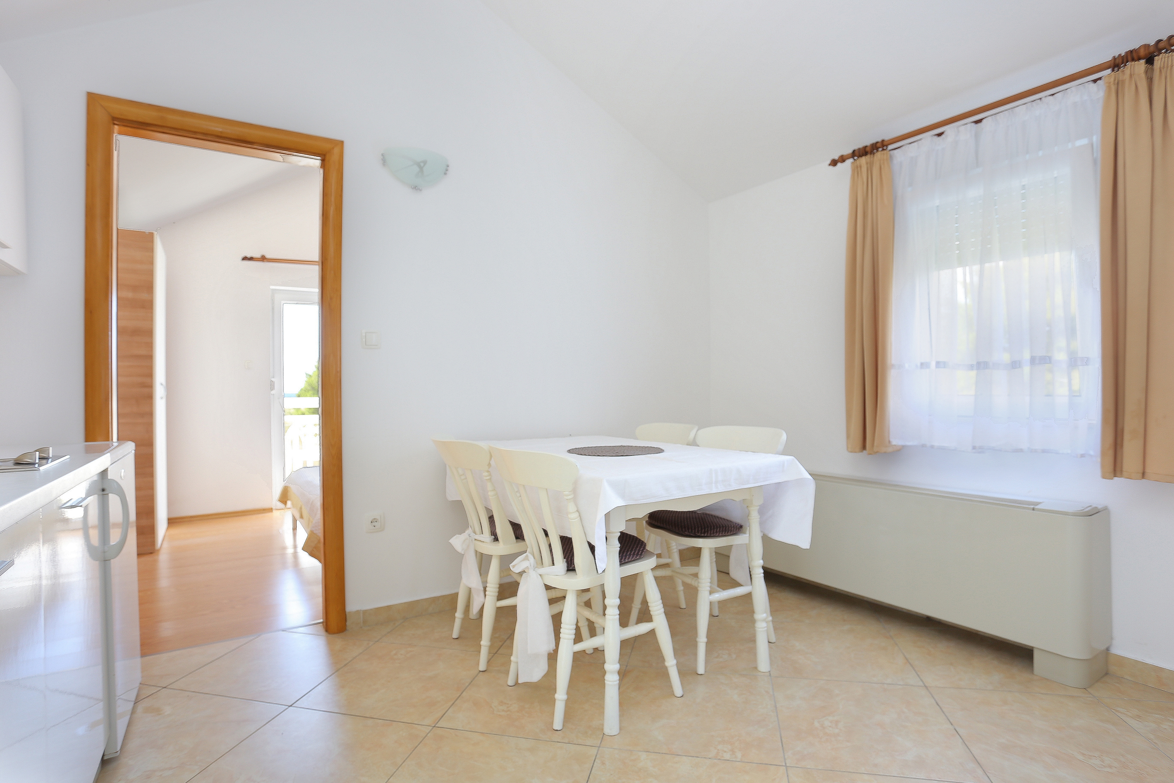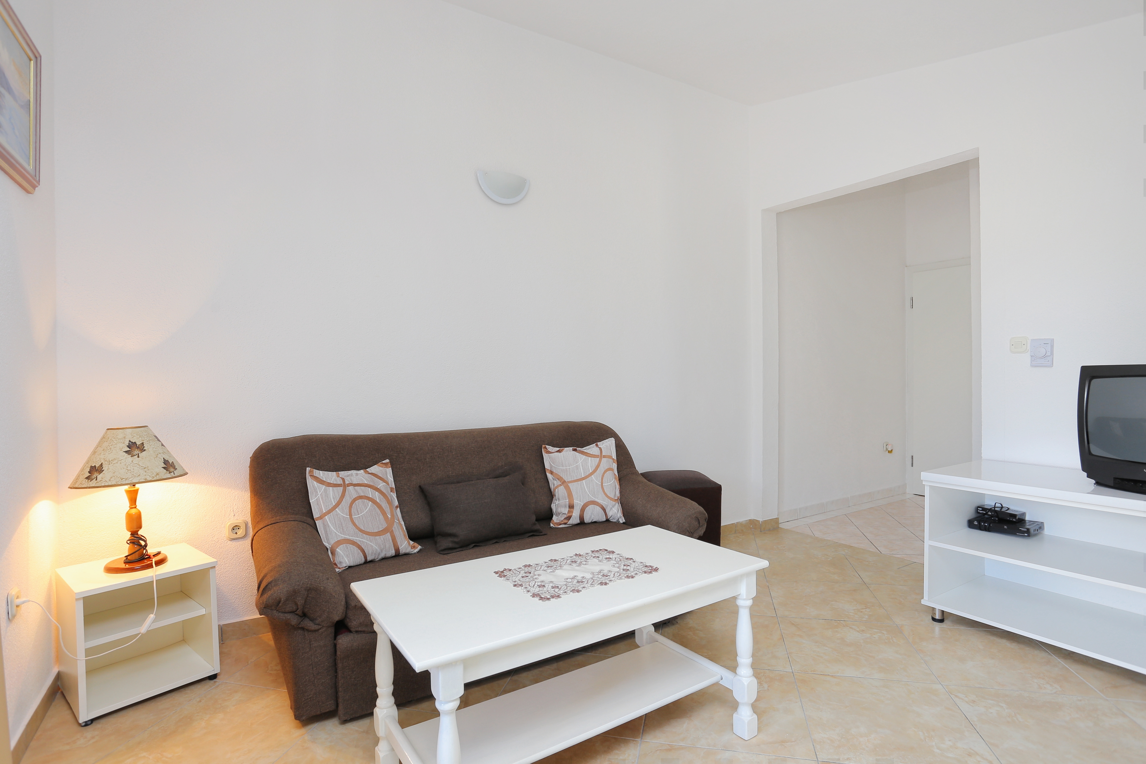Apartment can accommodate 4 guests. Beds are situated in 1 sleeping rooms, but also in the living room, within 38m2. Guests can use a private terrace to enjoy the warm summer evenings. The apartment offers the sea view. Food can be prepared using barbecue which is shared with other guests too. INCLUDED IN THE PRICE: tourist tax, final cleaning, air-conditioning, parking, internet, baby cot, iron, ironing board. OBLIGATORY ADDITIONAL COSTS: short stay fee (surcharge depending on a number of booked nights: 30% - 1, 20% - 2, 10% - 3). OPTIONAL ADDITIONAL COSTS: laundry (€1.00 washing). The availability of additional services for your chosen dates of stay, as well as their prices (if none are listed) must be checked ahead of time. Any additional services not shown in the price calculation are payable directly to the property owner and only if used by the visitor.