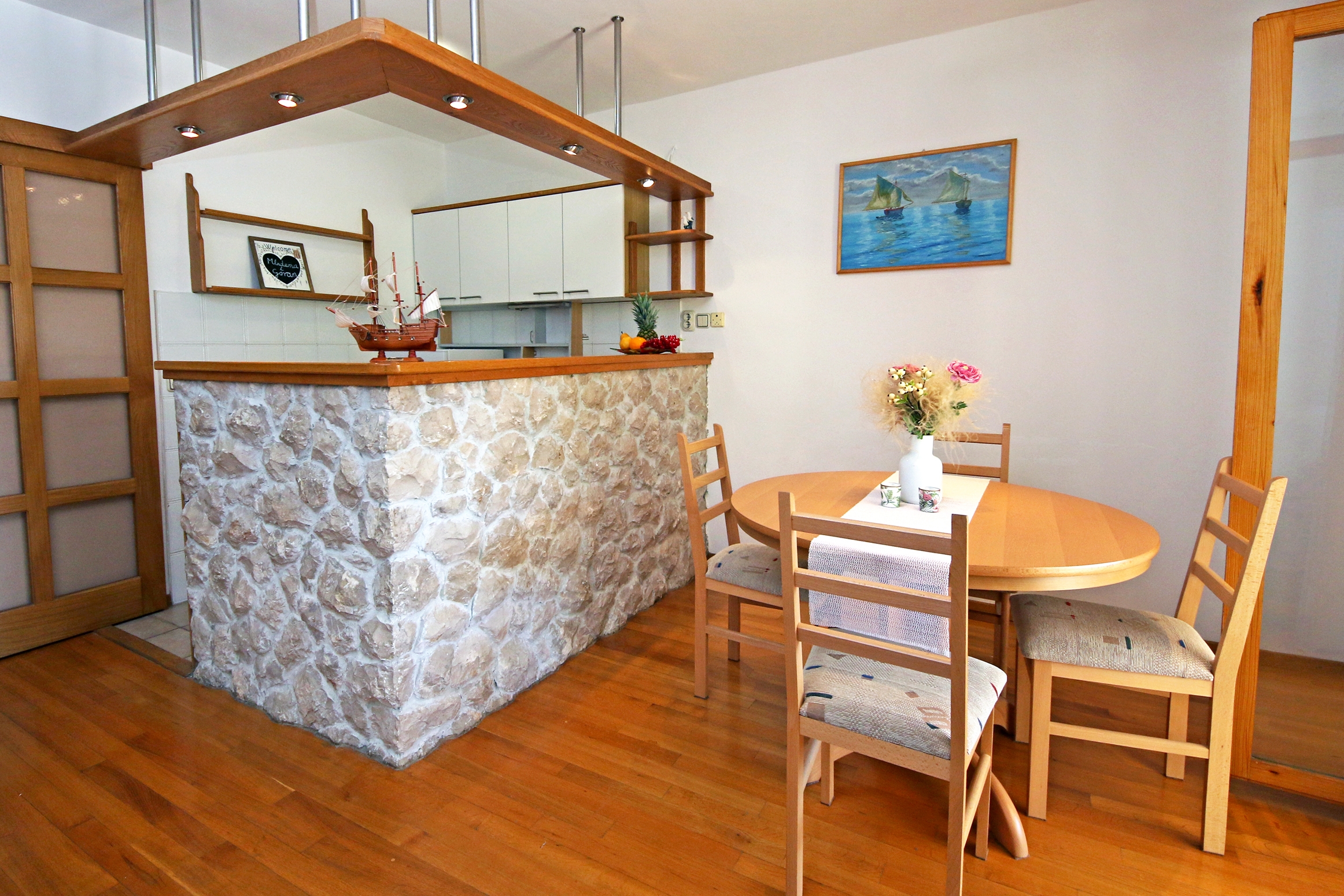 Apartment can accommodate 4 guests. Beds are situated in 2 sleeping rooms, within 52m2. Guests can use a private terrace to enjoy the warm summer evenings. Food can be prepared using barbecue which is shared with other guests too. INCLUDED IN THE PRICE: tourist tax, final cleaning, air-conditioning, parking, internet, laundry, baby cot, iron, ironing board, hairdryer. OBLIGATORY ADDITIONAL COSTS: short stay fee (surcharge depending on a number of booked nights: 30% - 1, 20% - 2, 10% - 3). OPTIONAL ADDITIONAL COSTS: boat mooring (€10.00 per night). The availability of additional services for your chosen dates of stay, as well as their prices (if none are listed) must be checked ahead of time. Any additional services not shown in the price calculation are payable directly to the property owner and only if used by the visitor. Discounts to the base price: free day 14=13 (for reservations of 14 or more days you get one free day for the stay until 31122026).