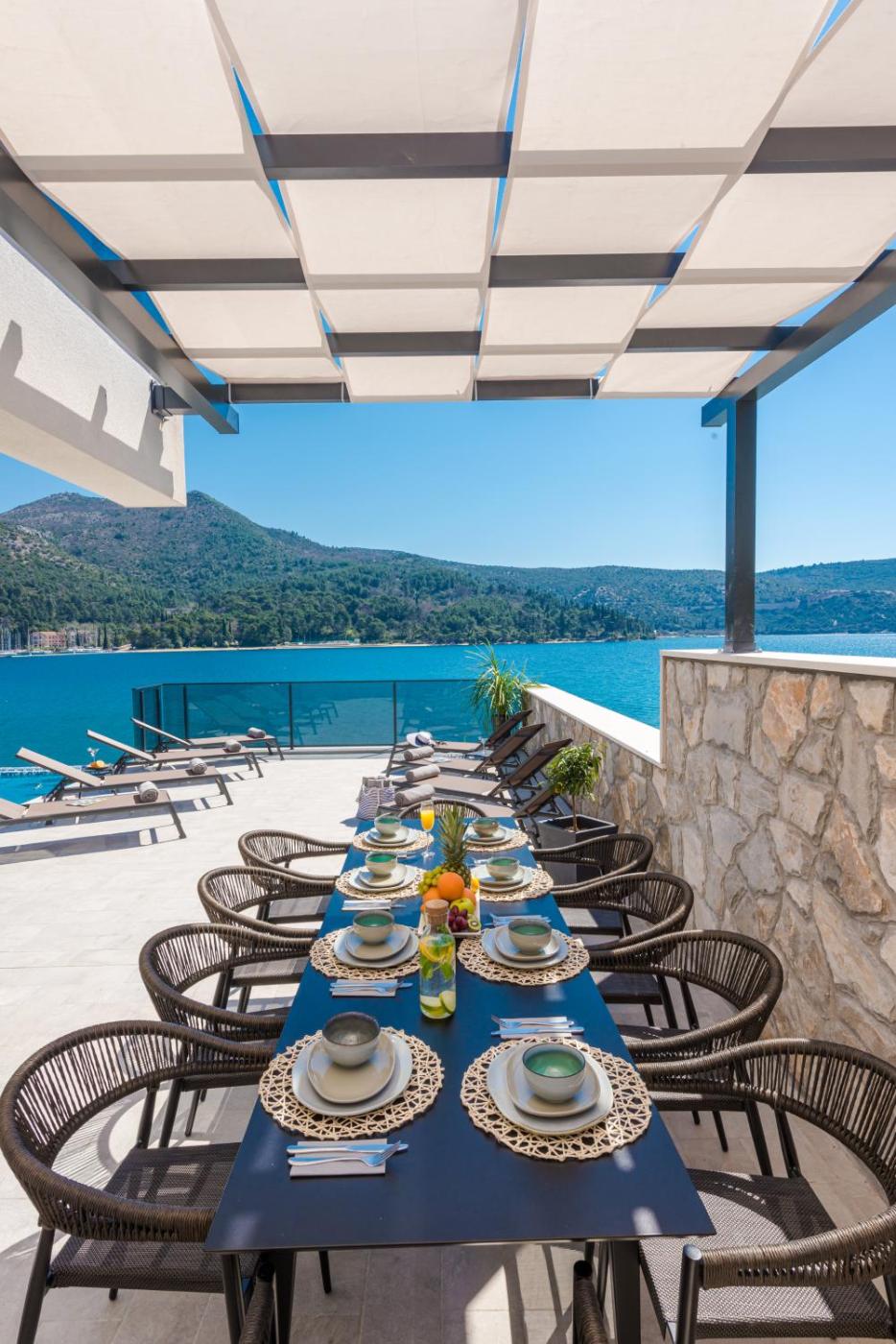 Located within 400 metres of Grgurići Beach and 20 km of Walls of Ston, Ville Sol Del Mar provides rooms with air conditioning and a private bathroom in Slano. This beachfront property offers access to a balcony, free private parking and free WiFi. Guests can make use of the outdoor pool or the barbecue, or enjoy views of the mountain and pool.