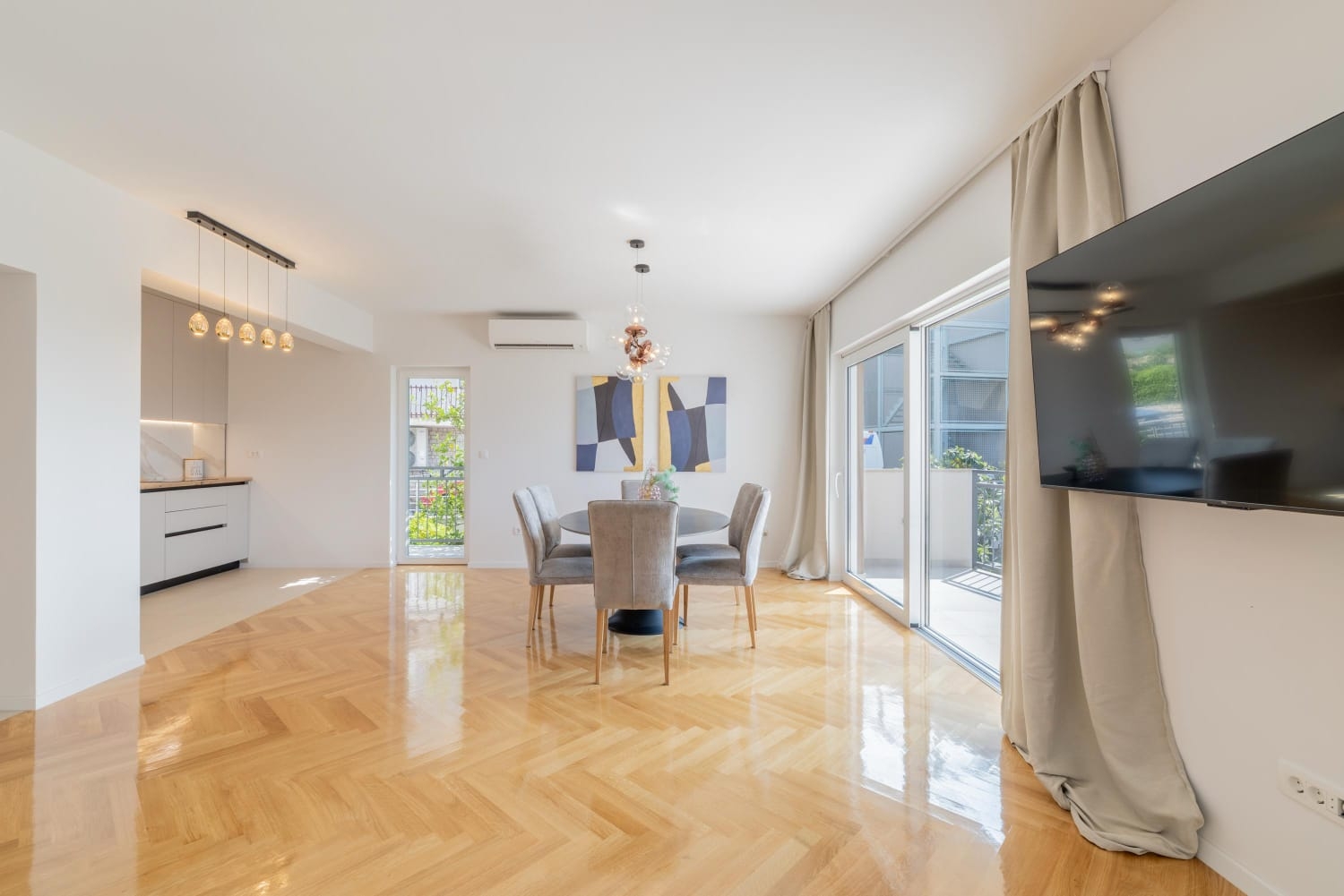 Apartment can accommodate 6 guests. Beds are situated in 3 sleeping rooms, within 105m2. Guests can use a private balcony to enjoy the warm summer evenings. This accommodation unit welcomes pets at no additional costs. INCLUDED IN THE PRICE: tourist tax, final cleaning, air-conditioning, parking, internet, pets, baby cot, iron, ironing board, hairdryer. The availability of additional services for your chosen dates of stay, as well as their prices (if none are listed) must be checked ahead of time. Any additional services not shown in the price calculation are payable directly to the property owner and only if used by the visitor.